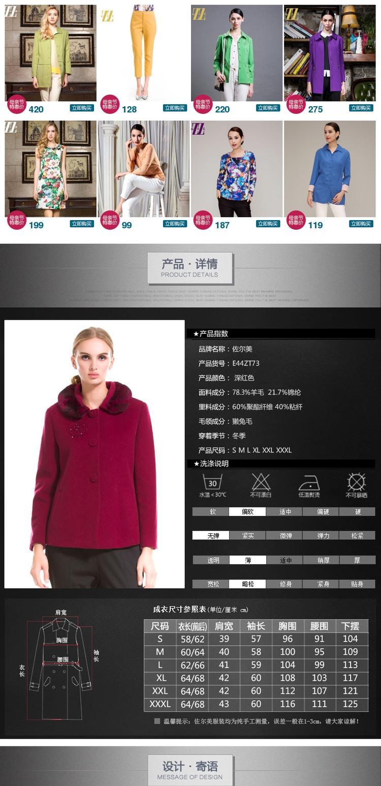 佐尔美羊毛呢子外套短款毛领羊毛大衣 毛呢外套女E44ZT73