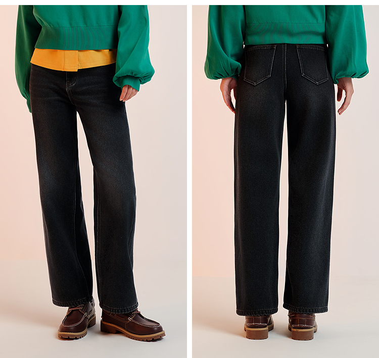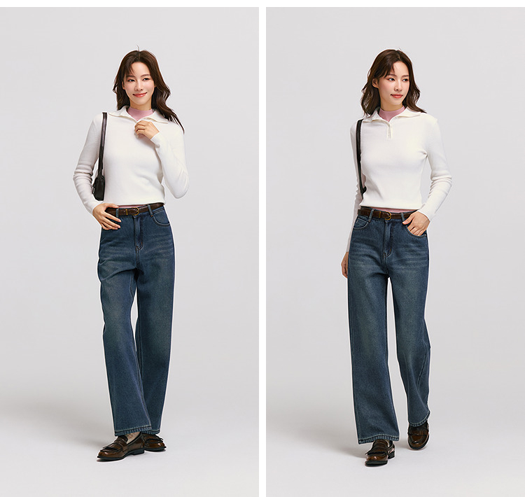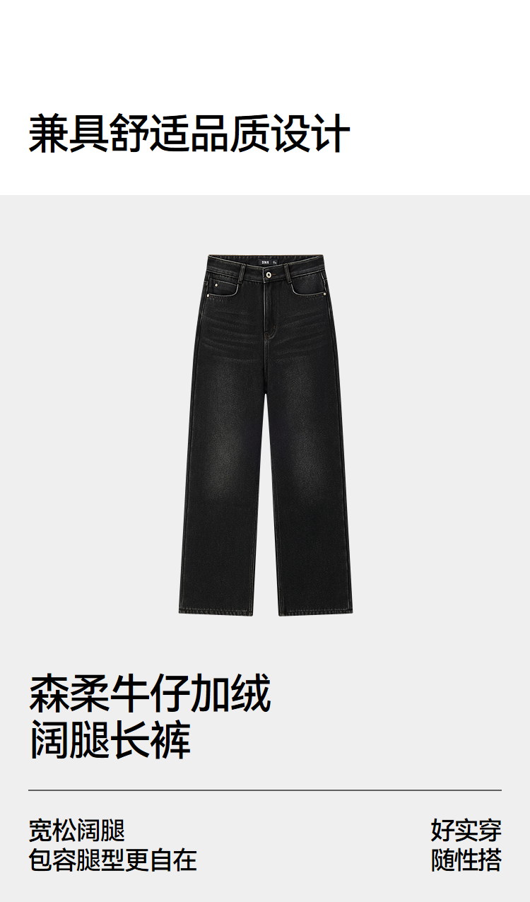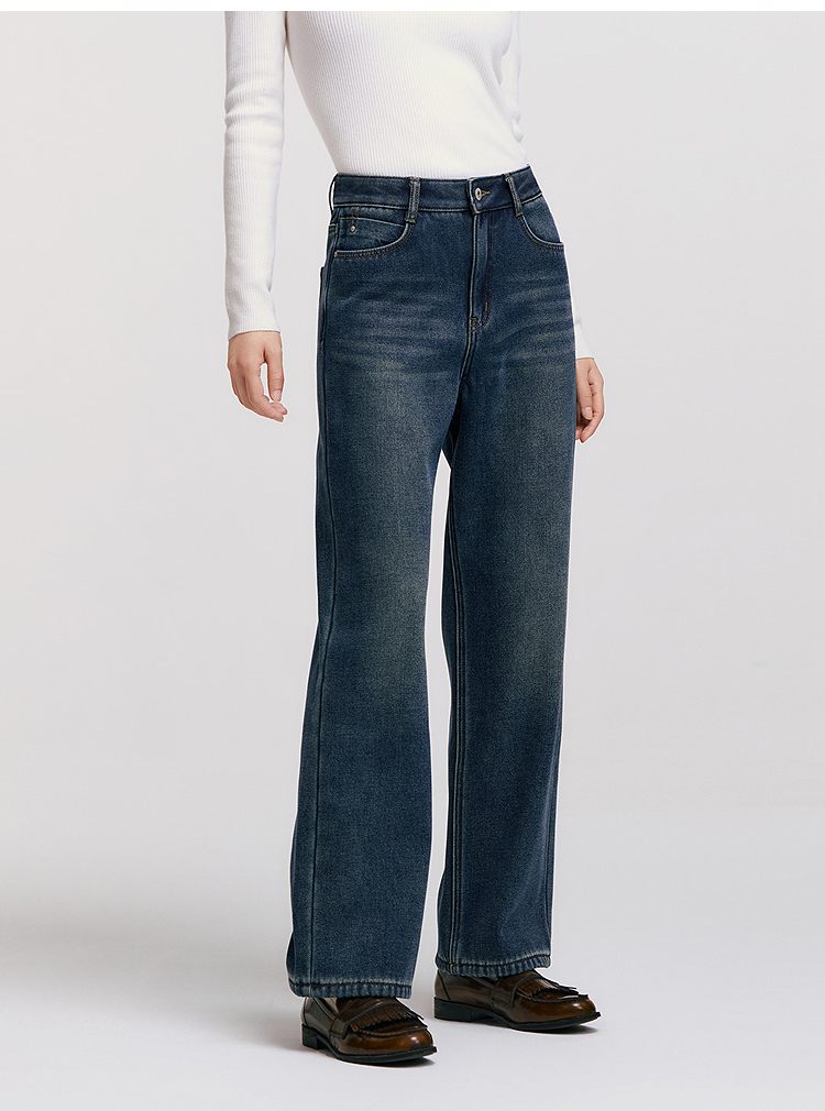 森柔牛仔|森马牛仔裤女百搭长裤冬季新款加绒阔腿裤
