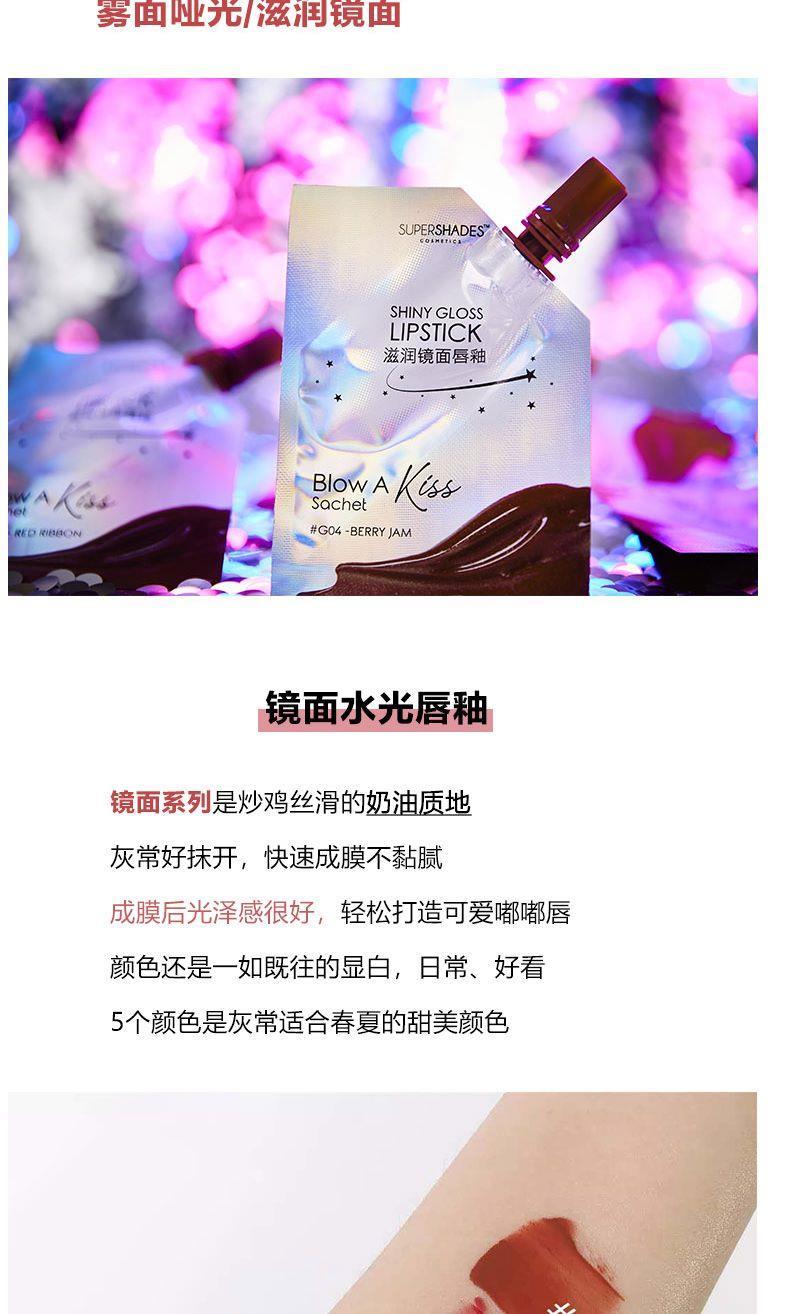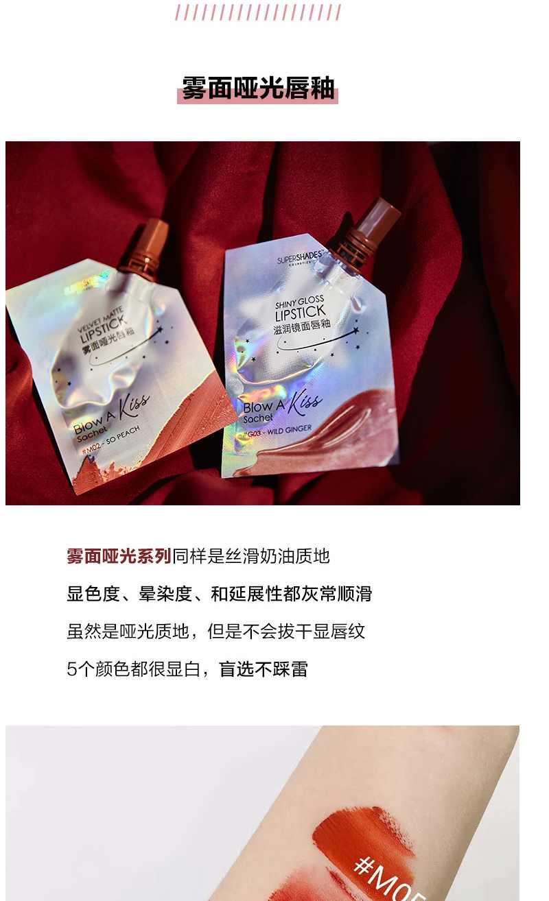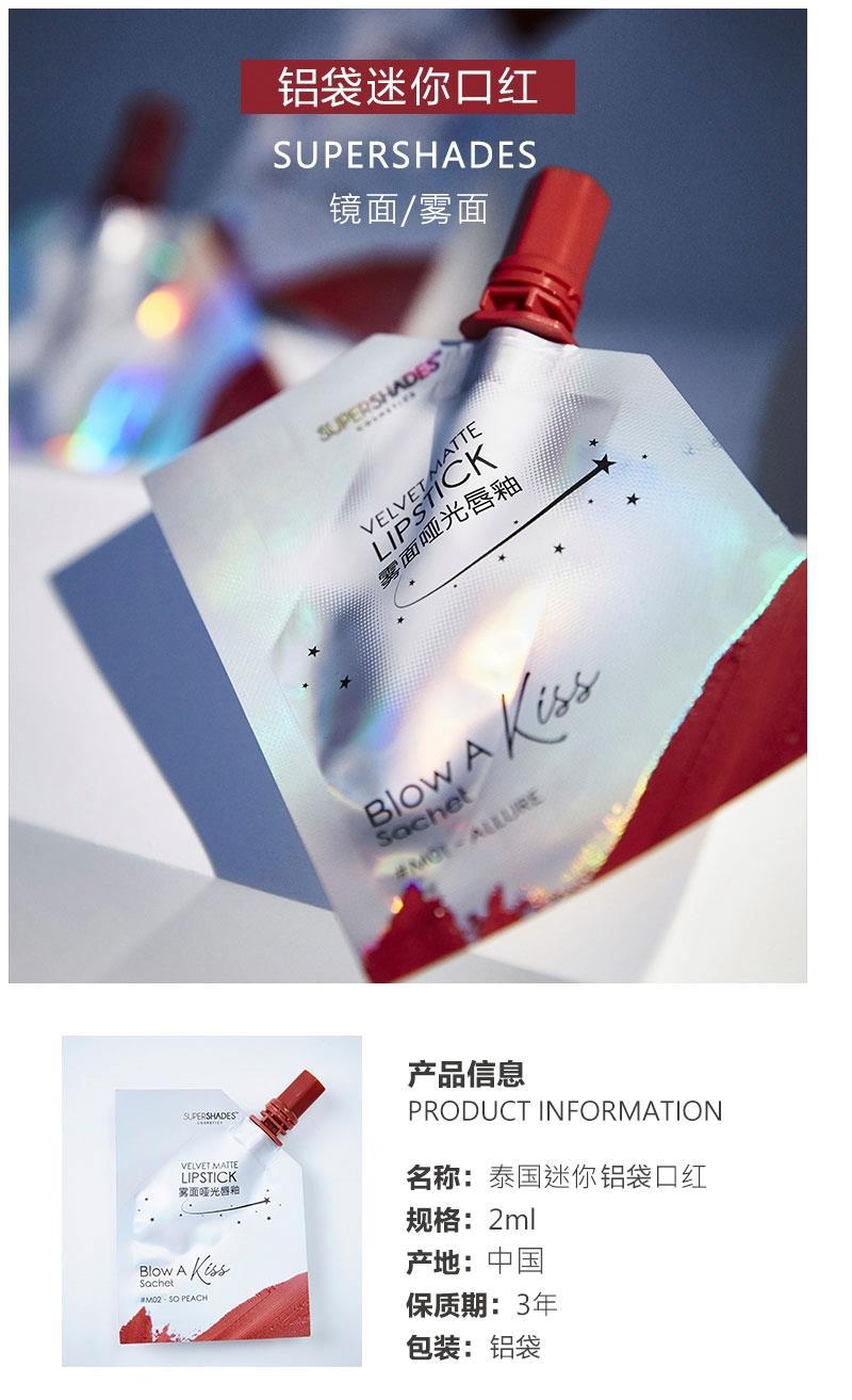 【9.9限时秒杀】清仓特价supershades迷你唇釉便携铝袋装哑光雾面镜面唇釉口红2ml