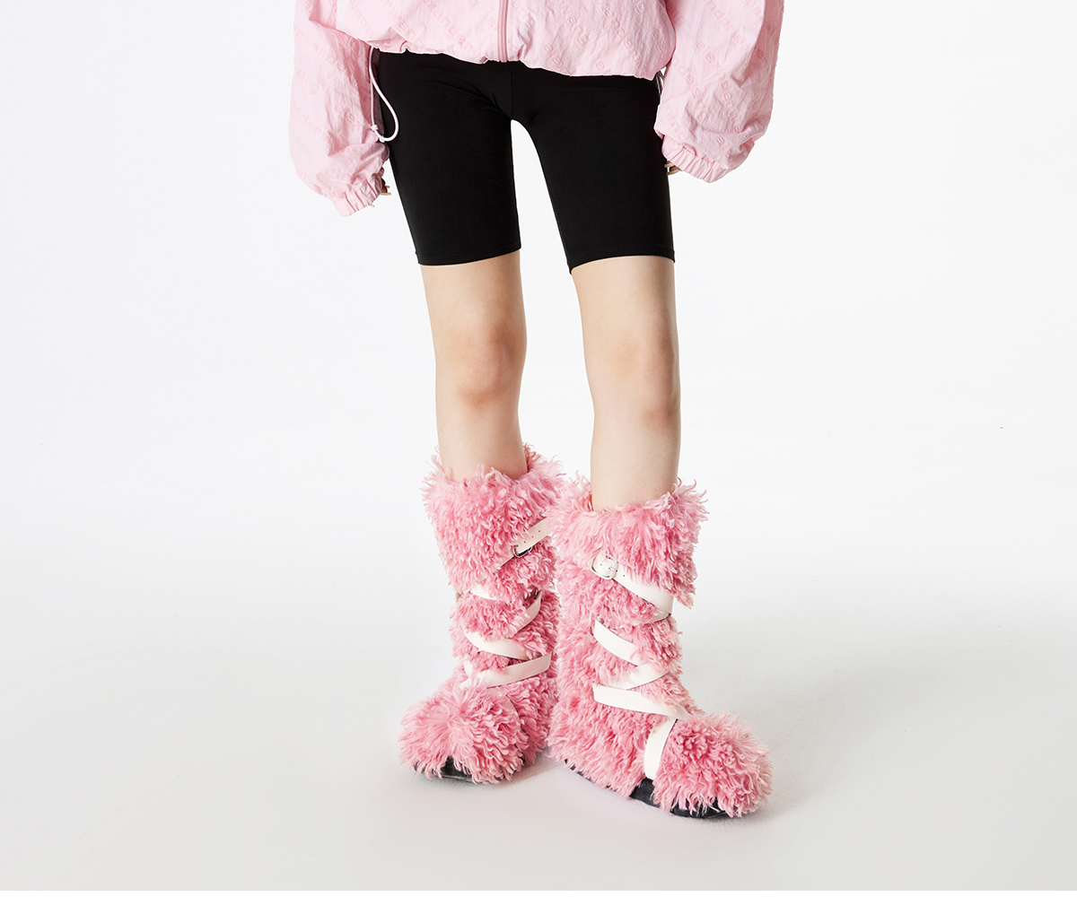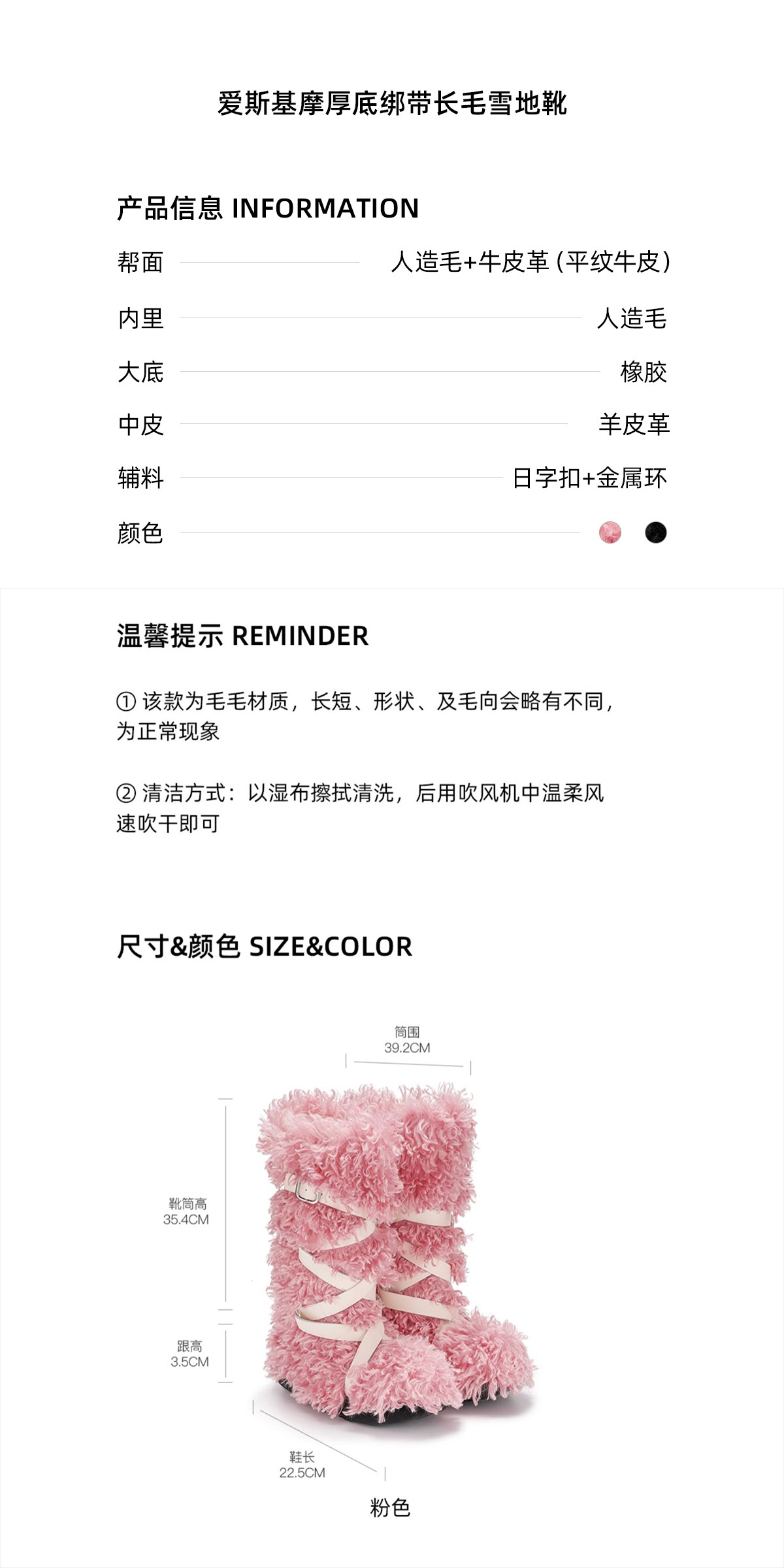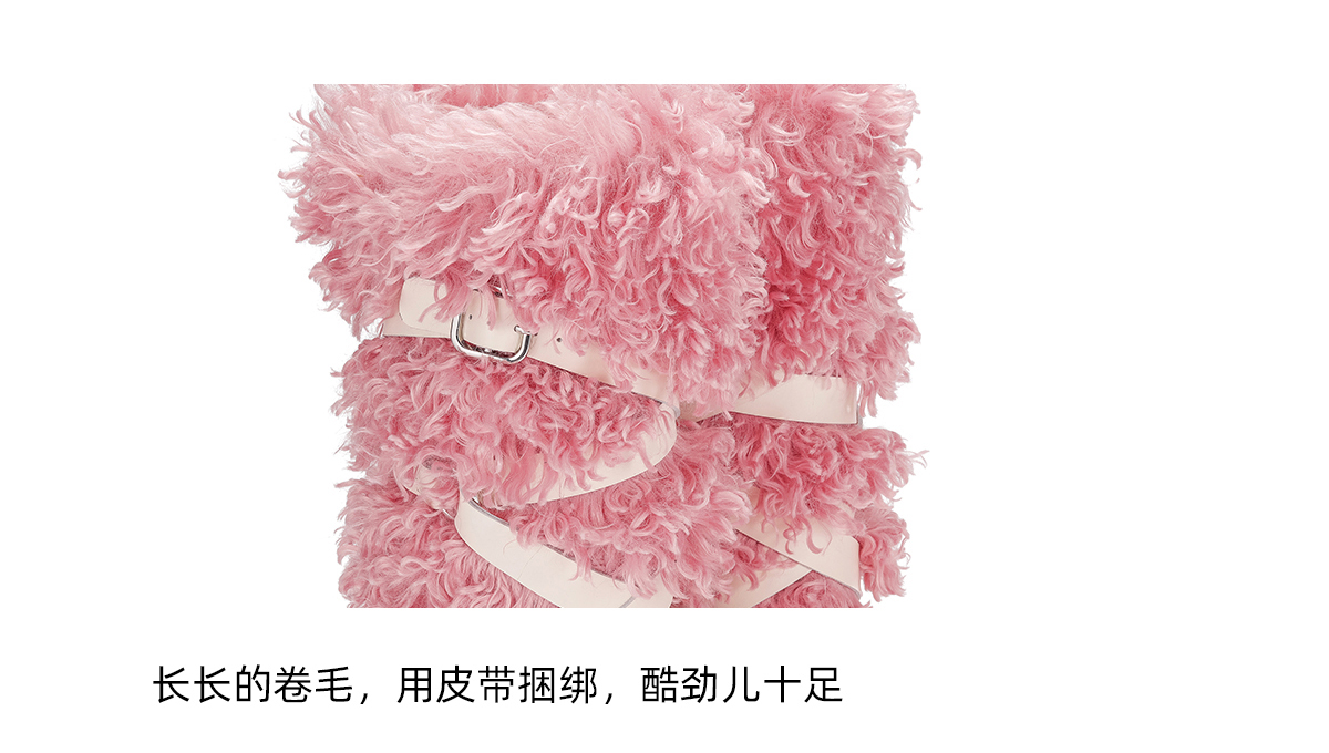 [断码]lost in echo 隆冬系列 爱斯基摩厚底绑带长毛高筒雪地靴毛毛靴