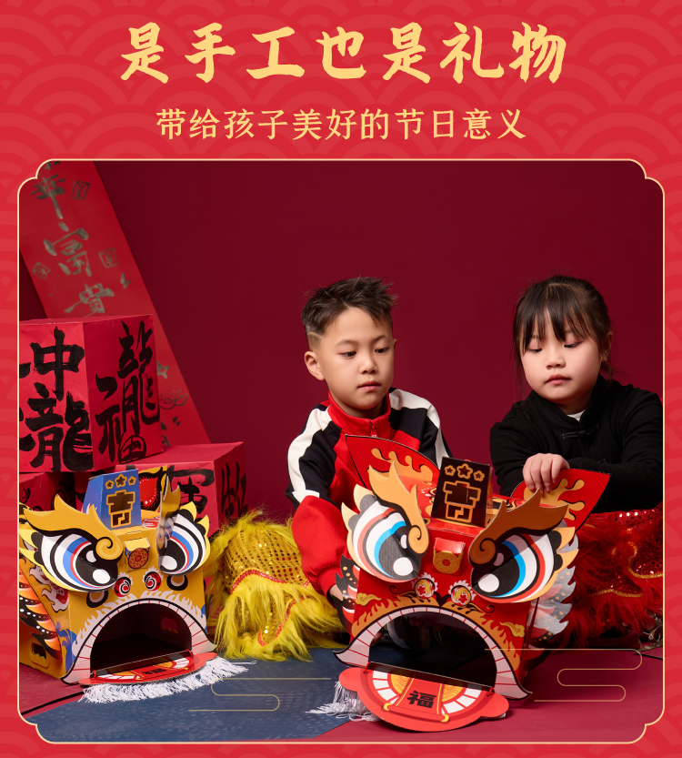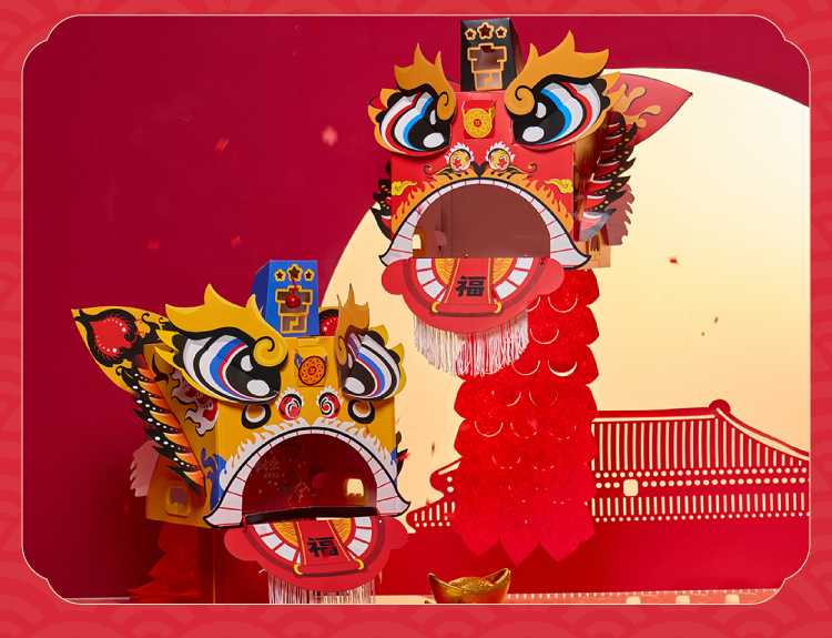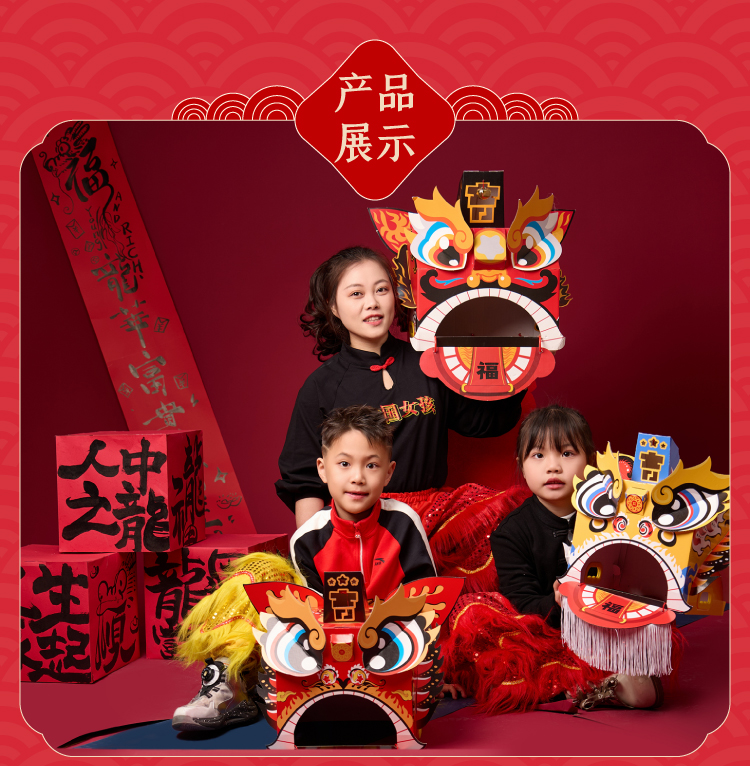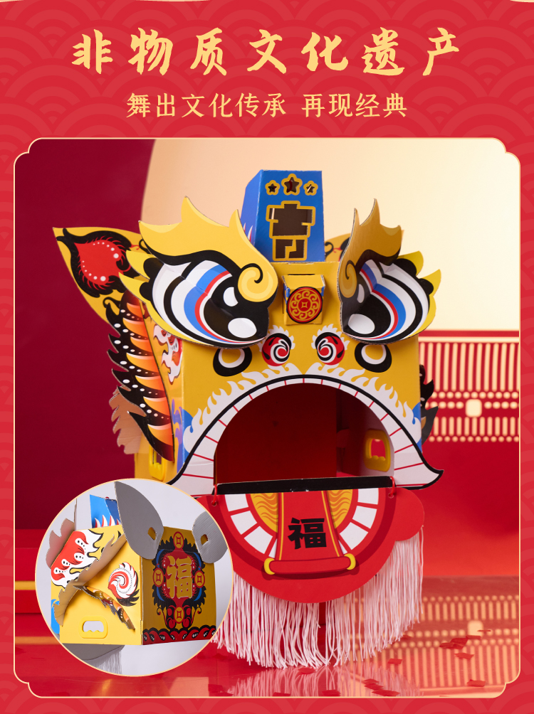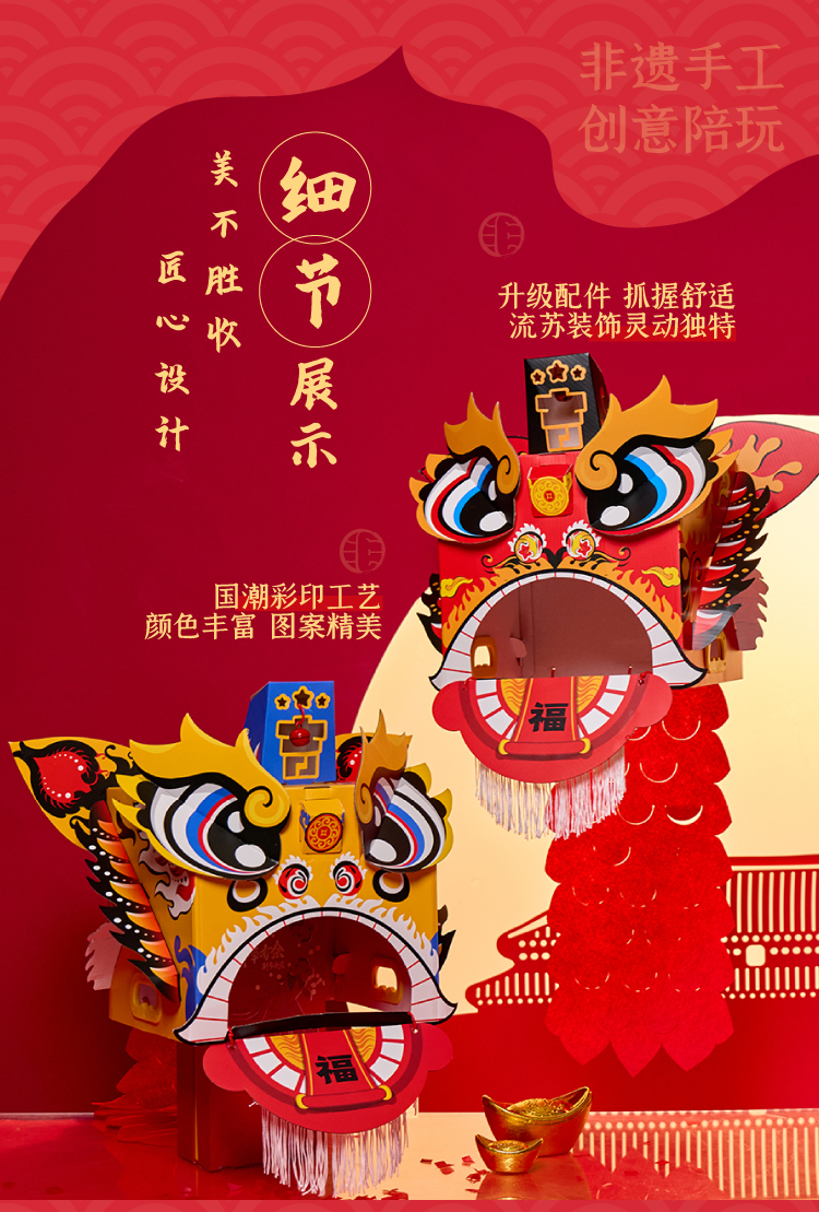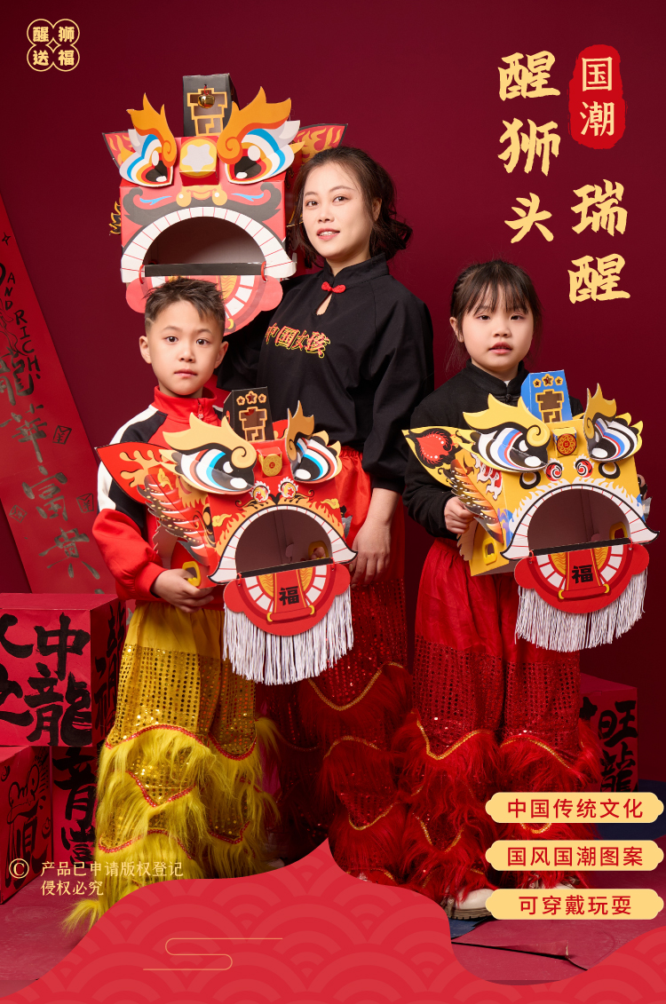 马年新年春节元旦马年瑞醒狮,中国传统文化,国风国潮图案,可穿戴玩耍,国潮彩印工艺,颜色丰富,图案精美,手工diy材料包,儿童狮子头,幼儿园龙头