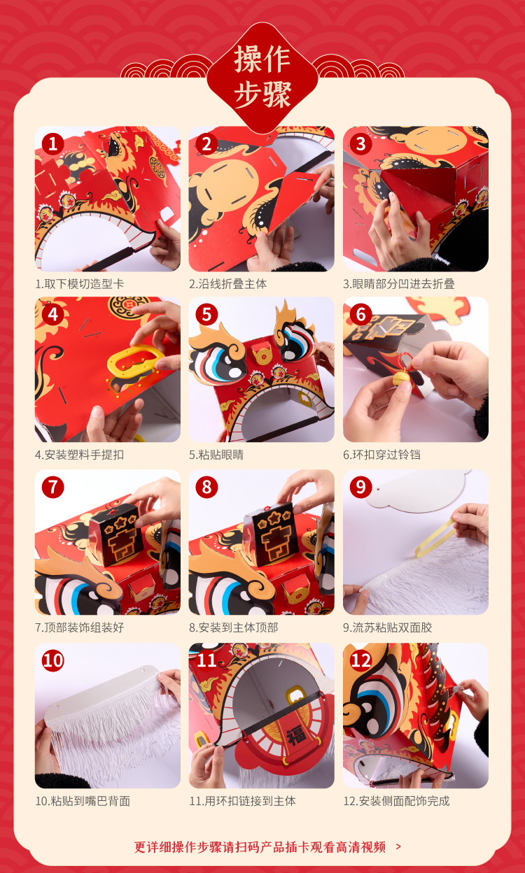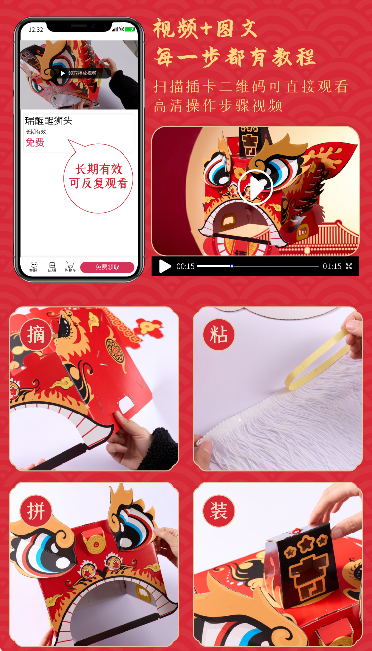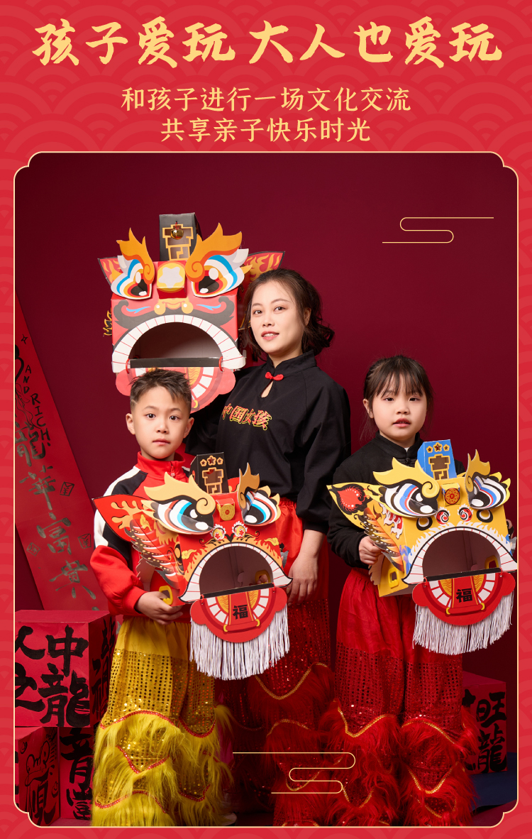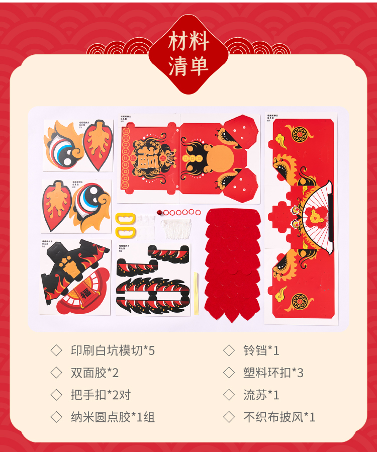 马年新年春节元旦马年瑞醒狮,中国传统文化,国风国潮图案,可穿戴玩耍,国潮彩印工艺,颜色丰富,图案精美,手工diy材料包,儿童狮子头,幼儿园龙头