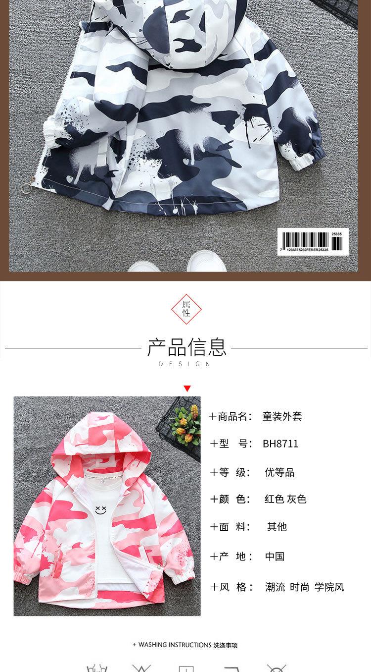女童冲锋衣2024春装新款男童外套春秋款女宝宝迷彩连帽洋气外衣