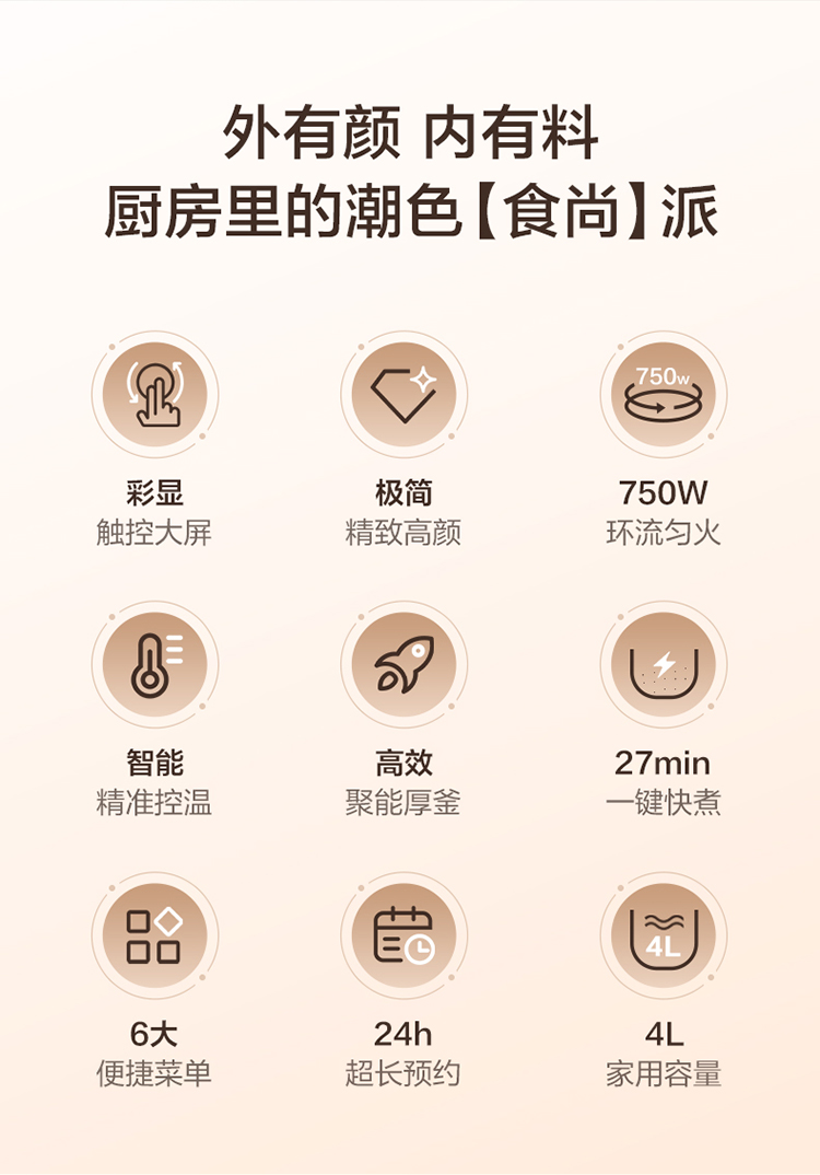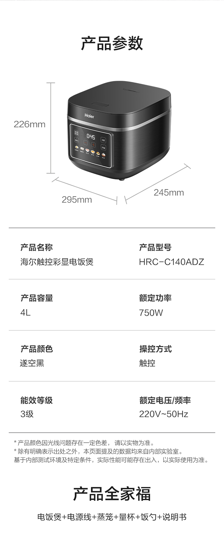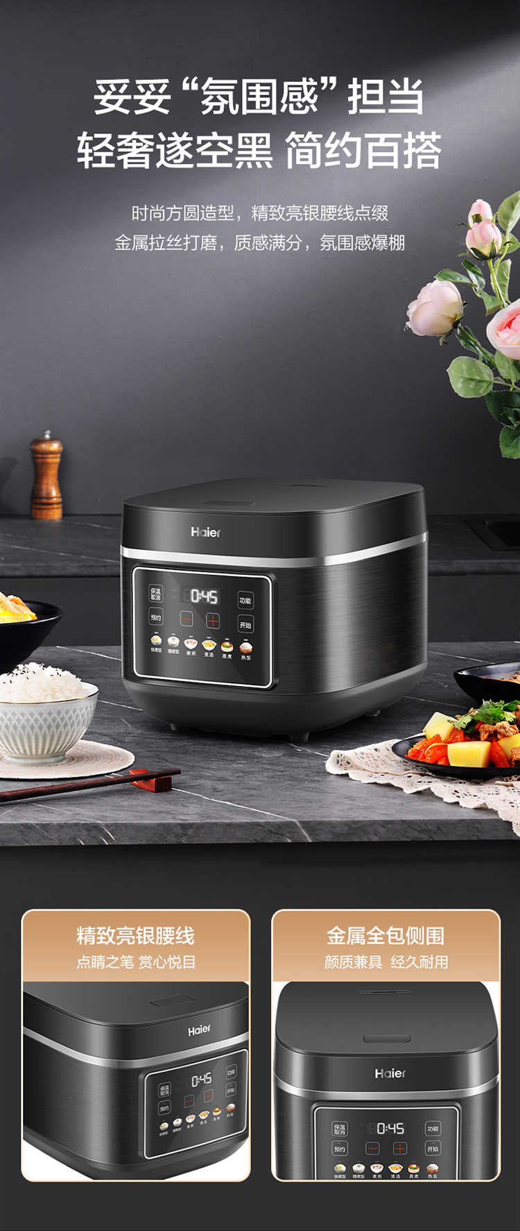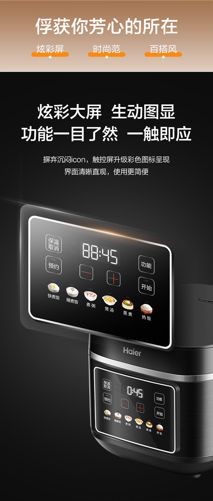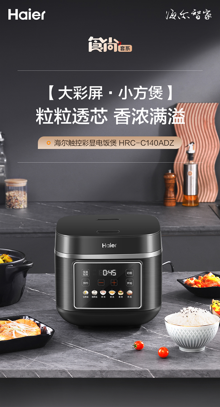 食尚系列-海尔触控彩屏电饭煲4L 炫彩大触屏 精致小方煲 HRC-C140ADZ