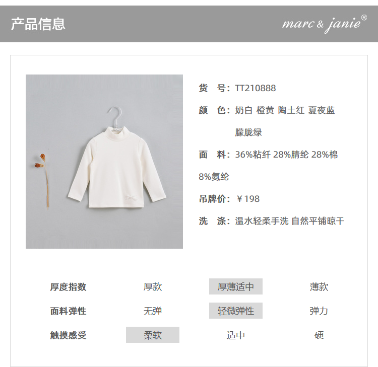 【马克珍妮 法式系列】新款秋装 女童德绒发热打底衫210888
