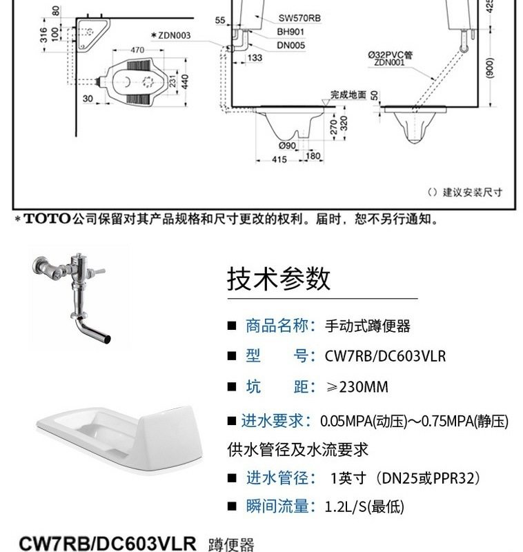 防臭蹲便池蹲蹲坑整套便器/CW8RB卫生间家用水箱冲陶瓷装式
