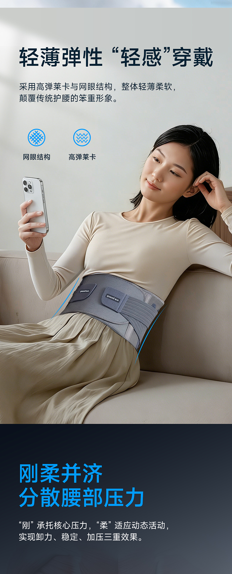 鱼跃护腰久坐神器腰肌劳损男女通用腰间盘突出医用支撑护腰神器WY02B