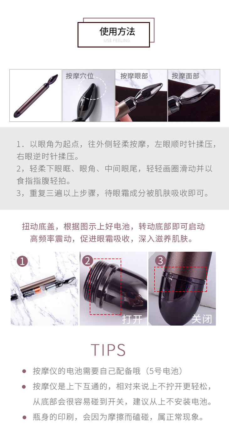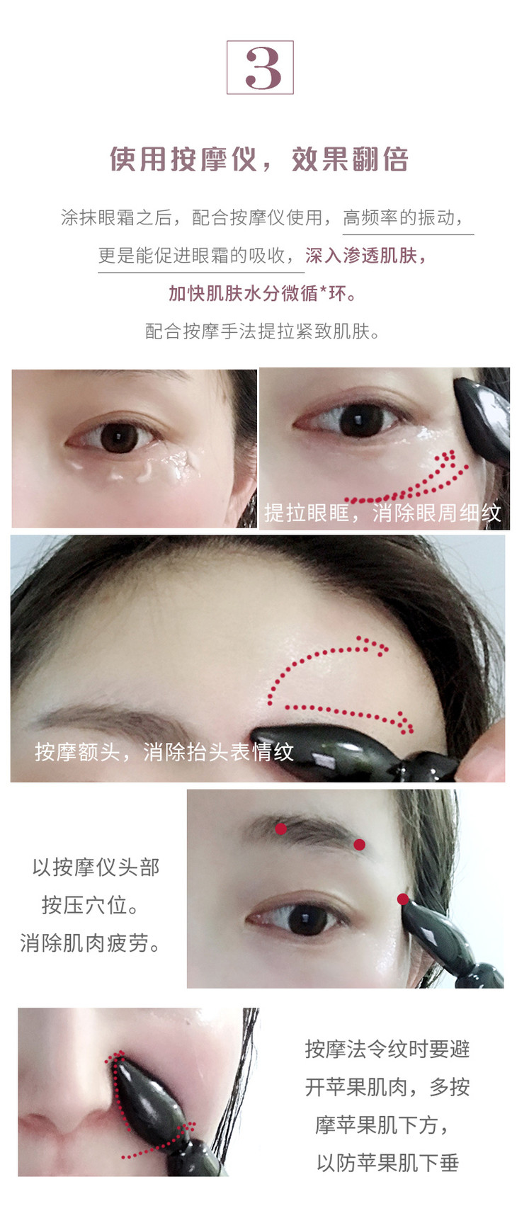 限量送价值198¥按摩仪,高频率的震动促进眼霜的吸收,深入渗透肌肤加快肌肤水分微循环
