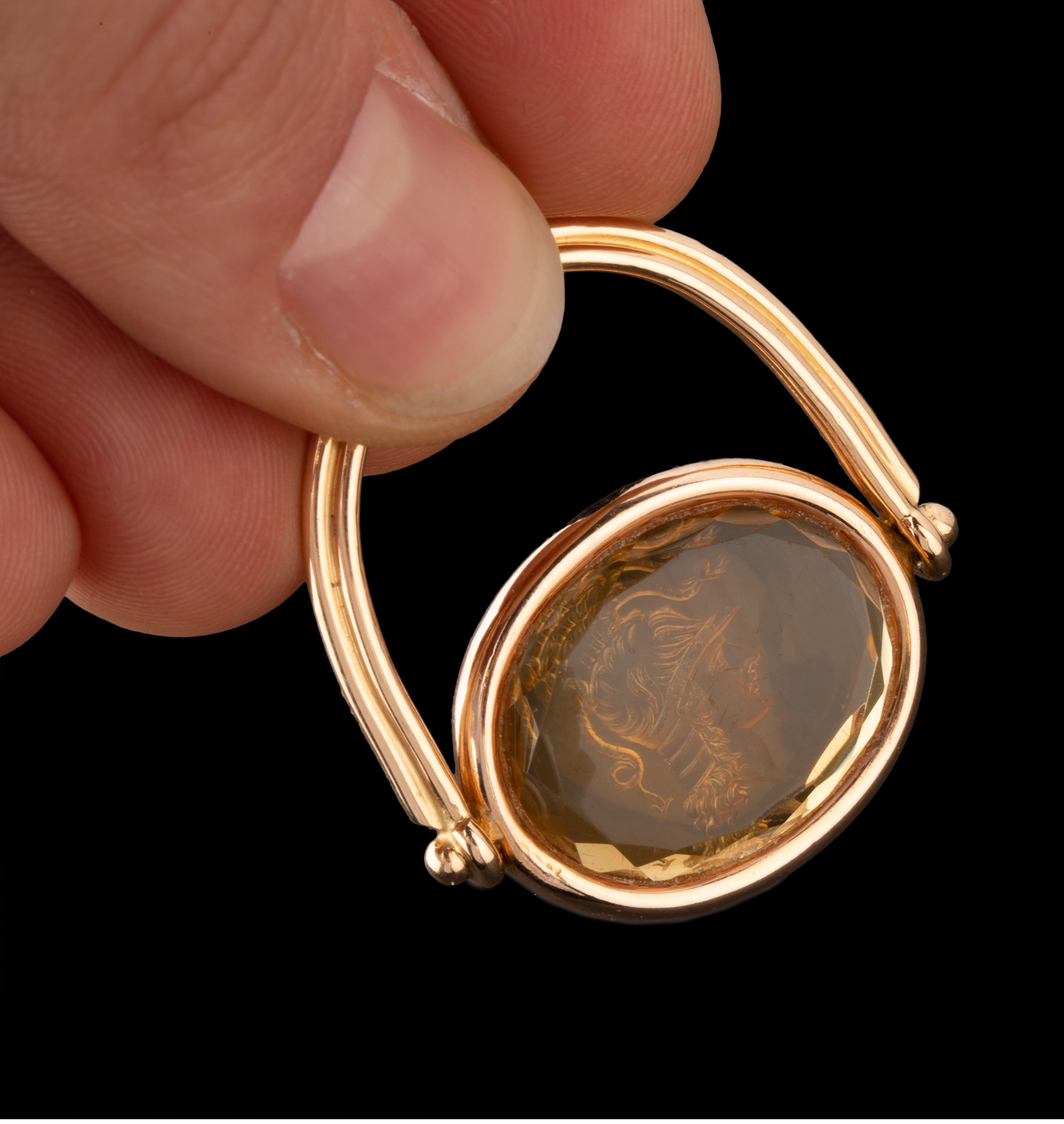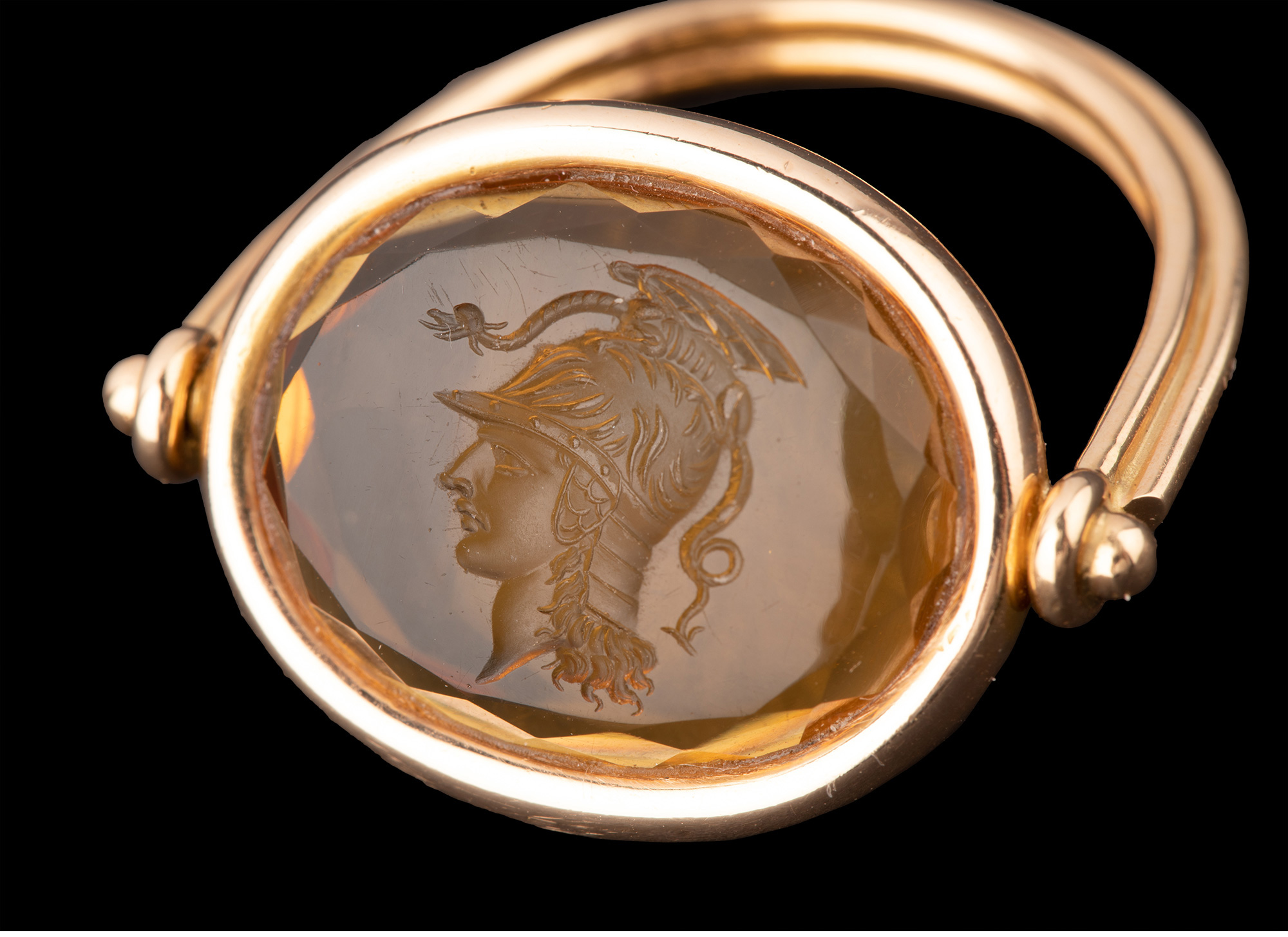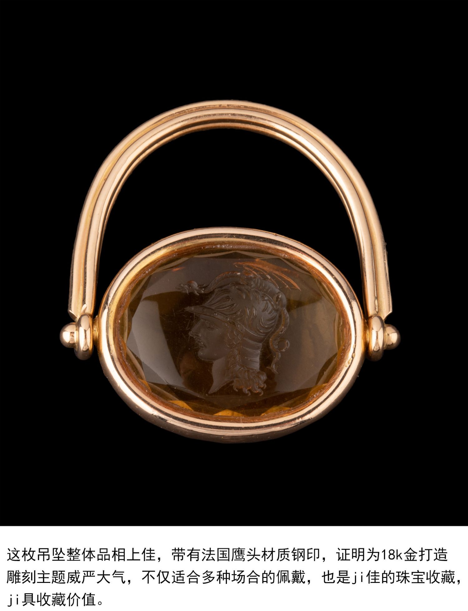 独角鹿西洋古董珠宝首饰18K金镶嵌黄水晶战神玛尔斯印章吊坠戒指