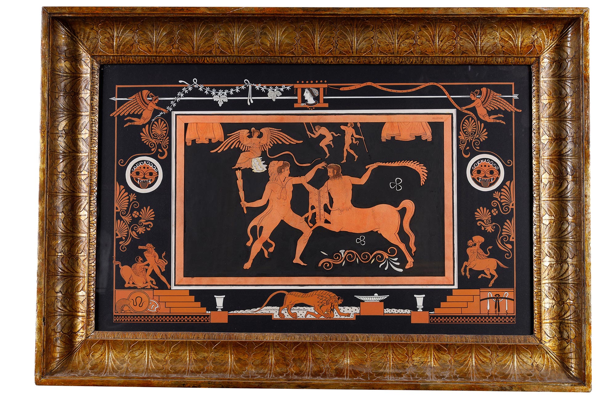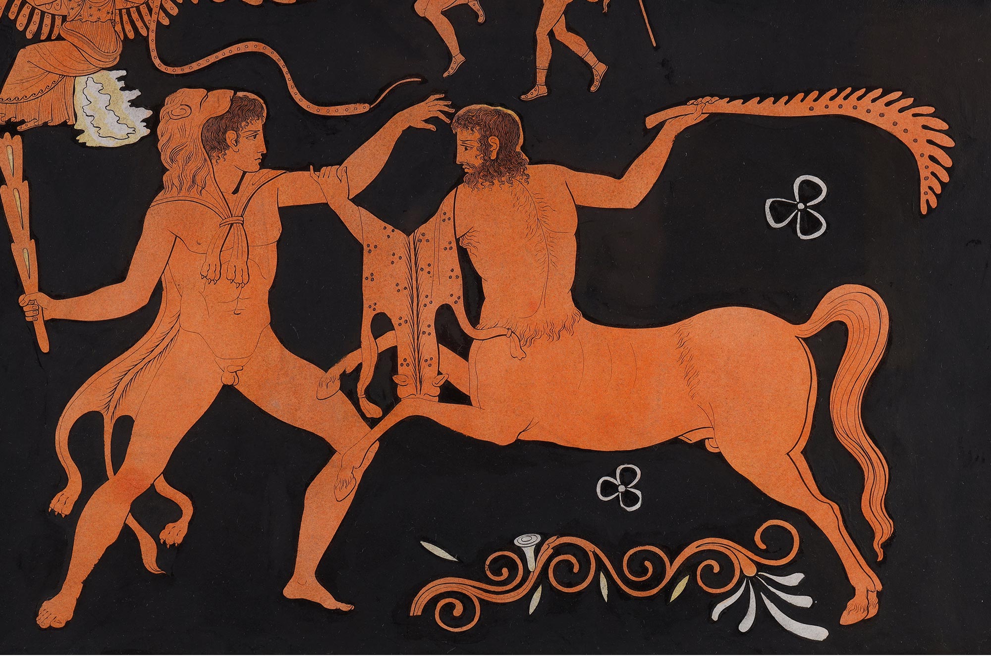 19世纪法国艺术史学家皮埃尔·弗朗索瓦·休格斯创作古典神话主题水彩蚀刻版画《赫丘利大战半人马喀戎》