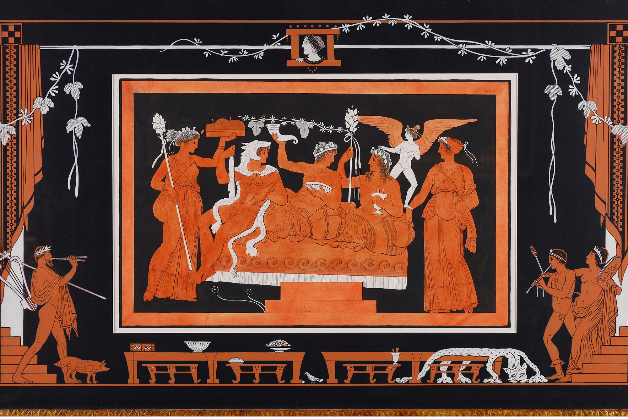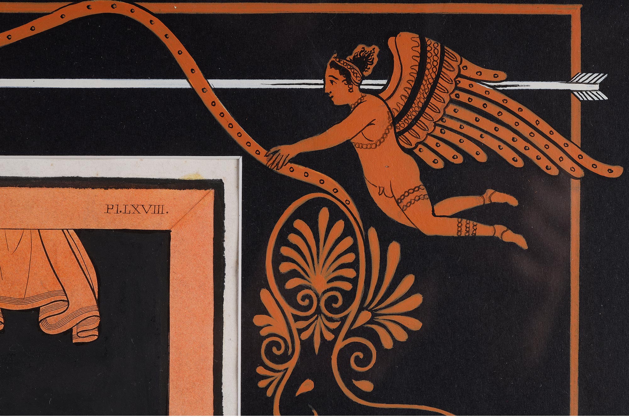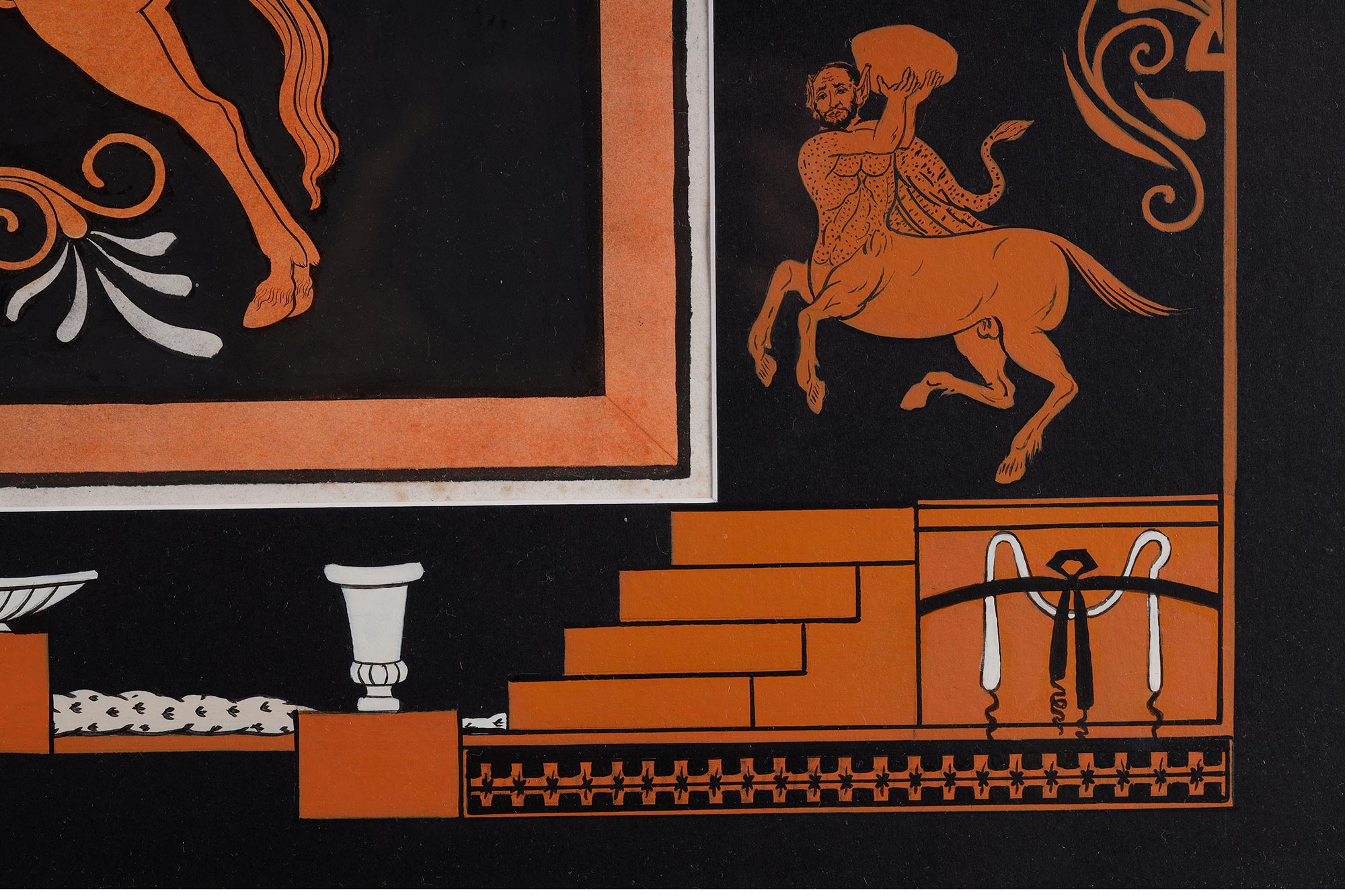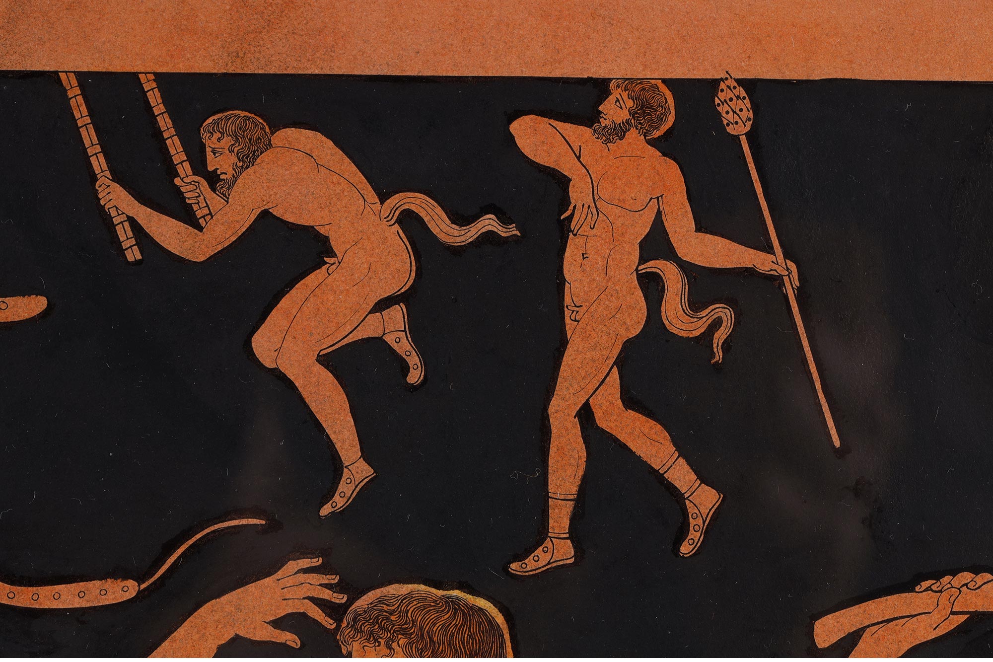 独角鹿西洋古董 19世纪法国艺术史学家皮埃尔·弗朗索瓦·休格斯创作古典神话主题水彩蚀刻版画《赫丘利大战半人马喀戎》