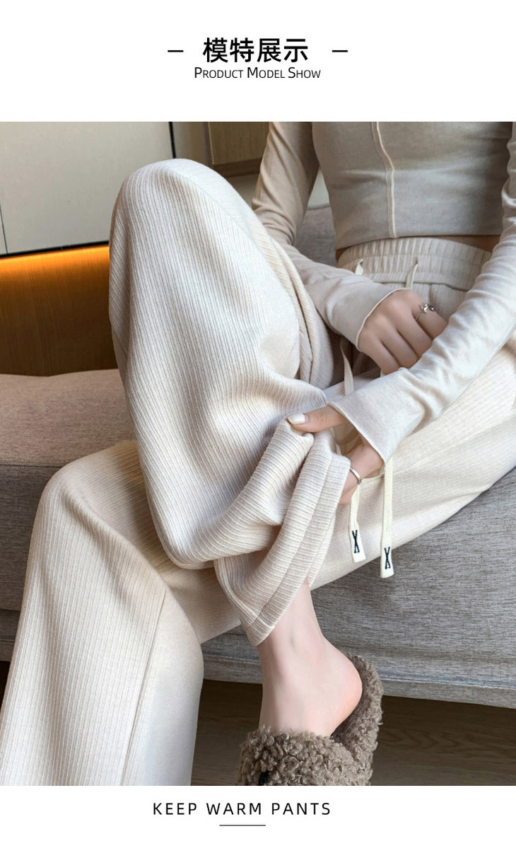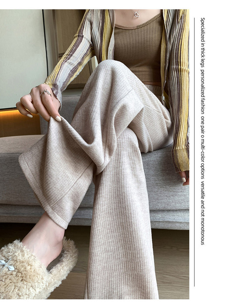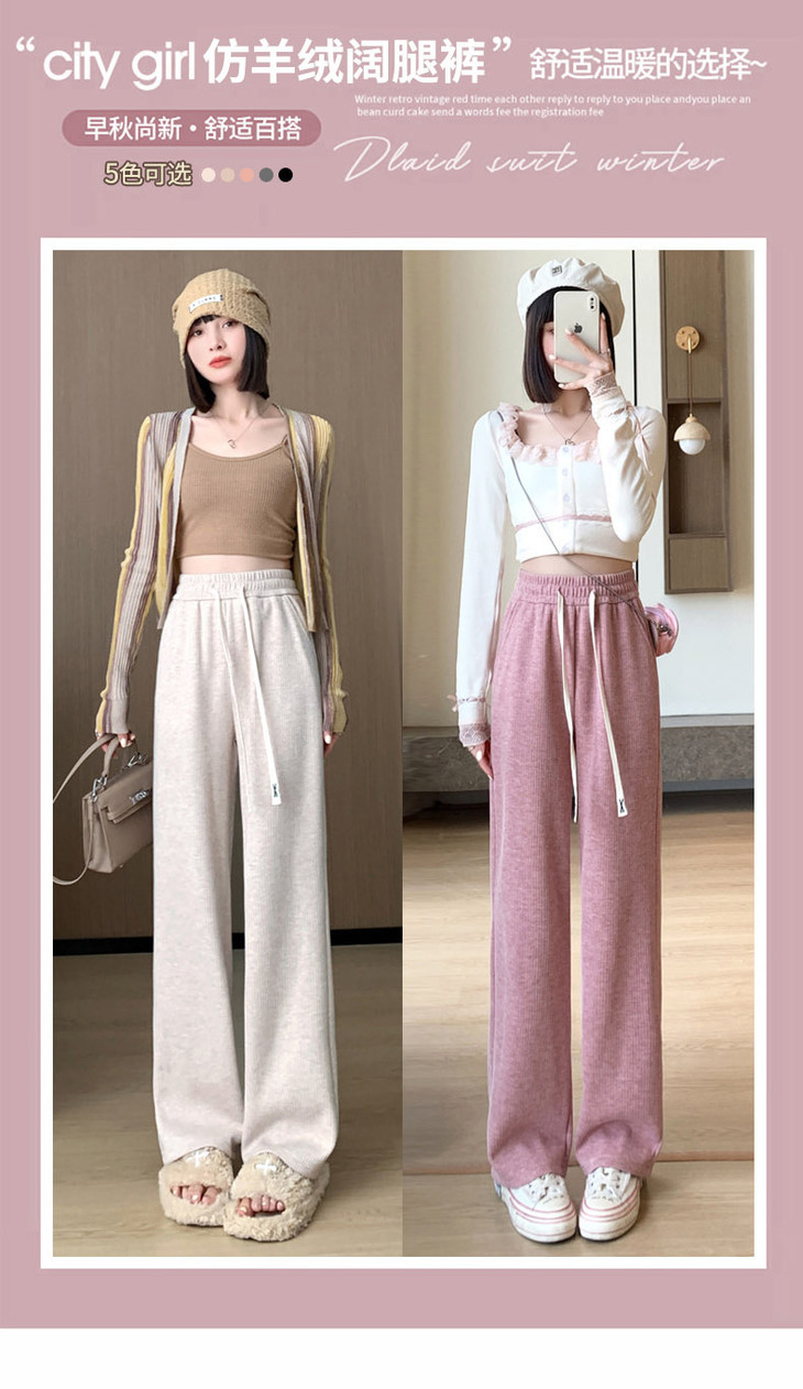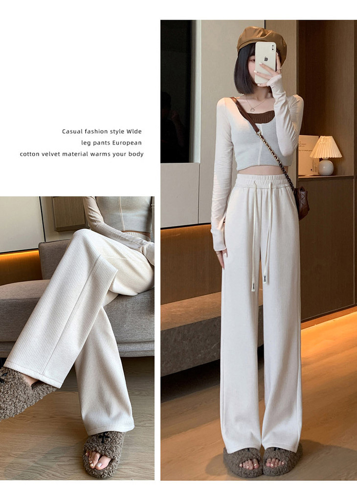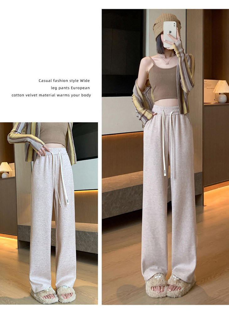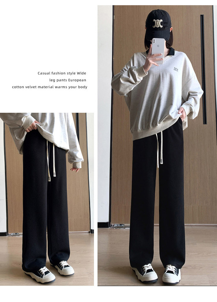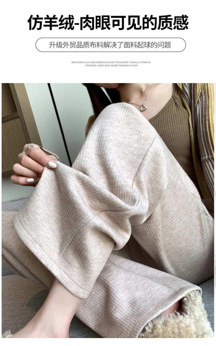 女秋冬高腰直筒拖地裤垂感 糯米裤加绒休闲裤 仿羊绒阔腿裤