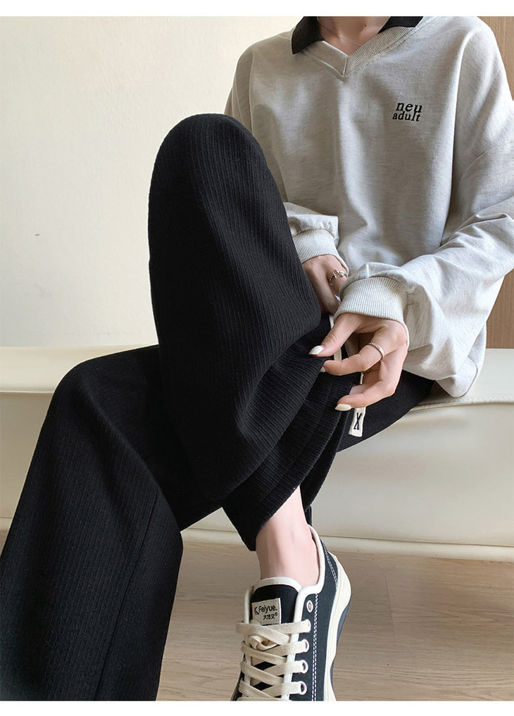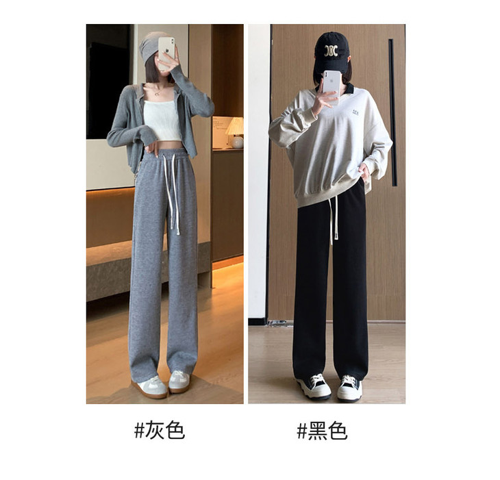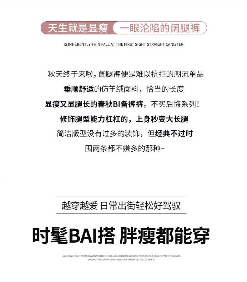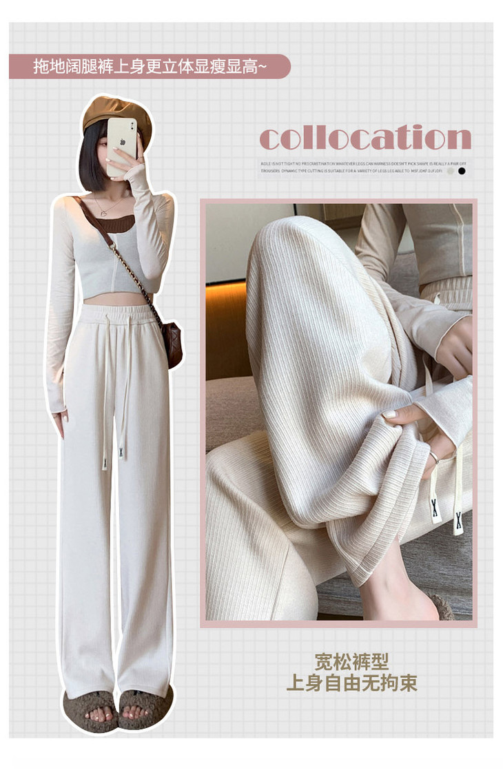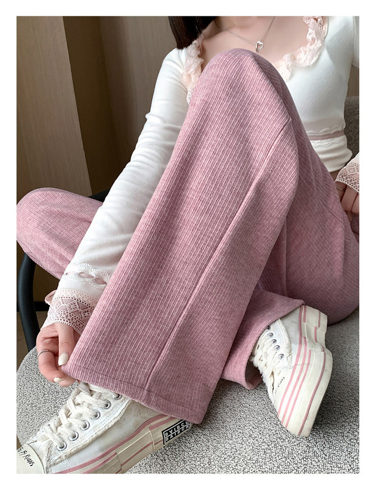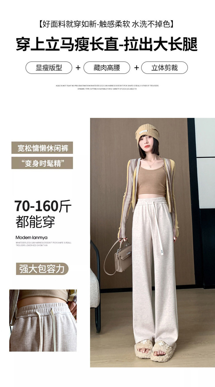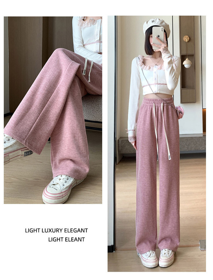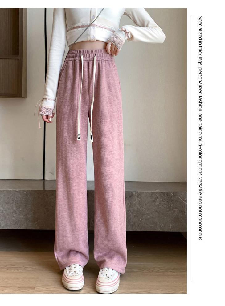 女秋冬高腰直筒拖地裤垂感 糯米裤加绒休闲裤 仿羊绒阔腿裤