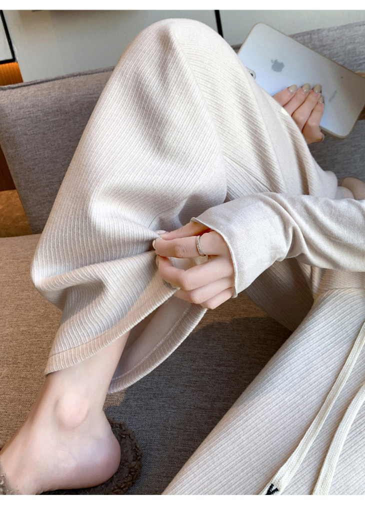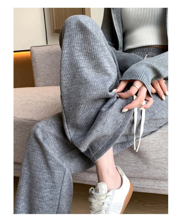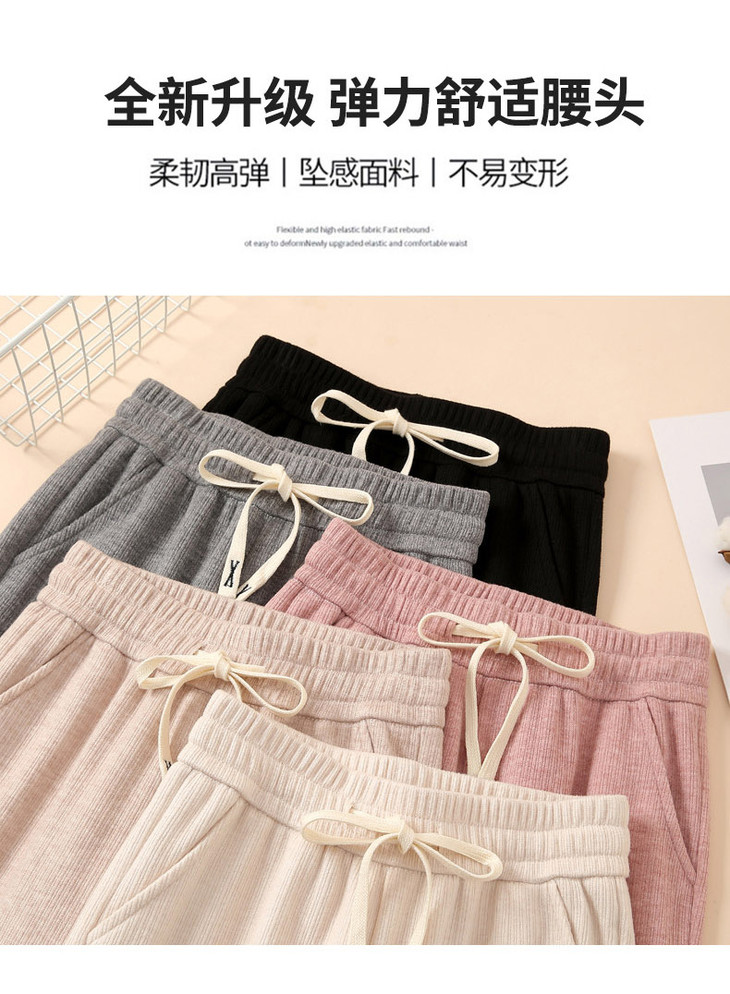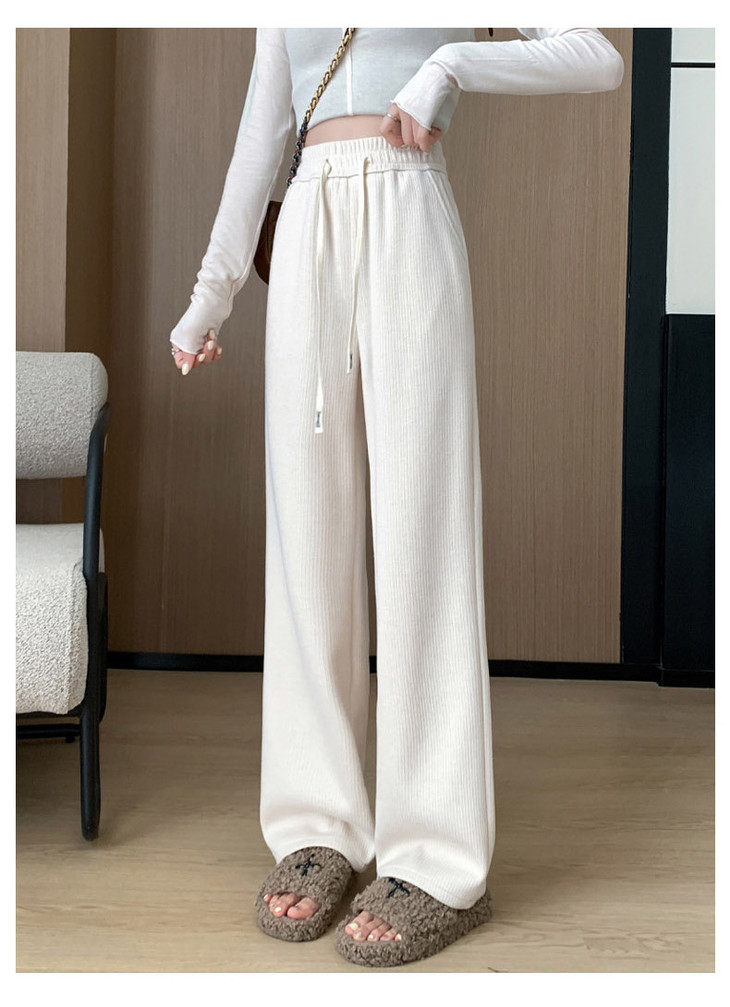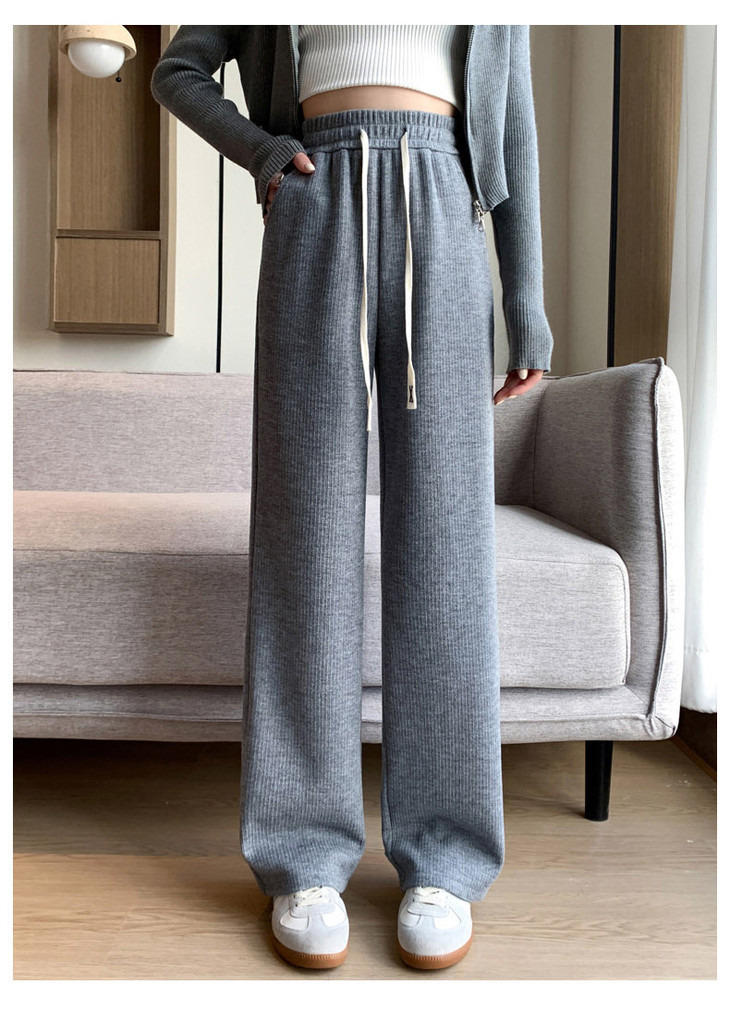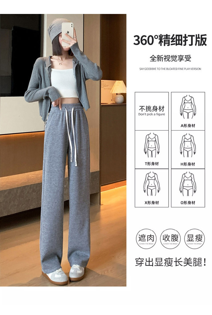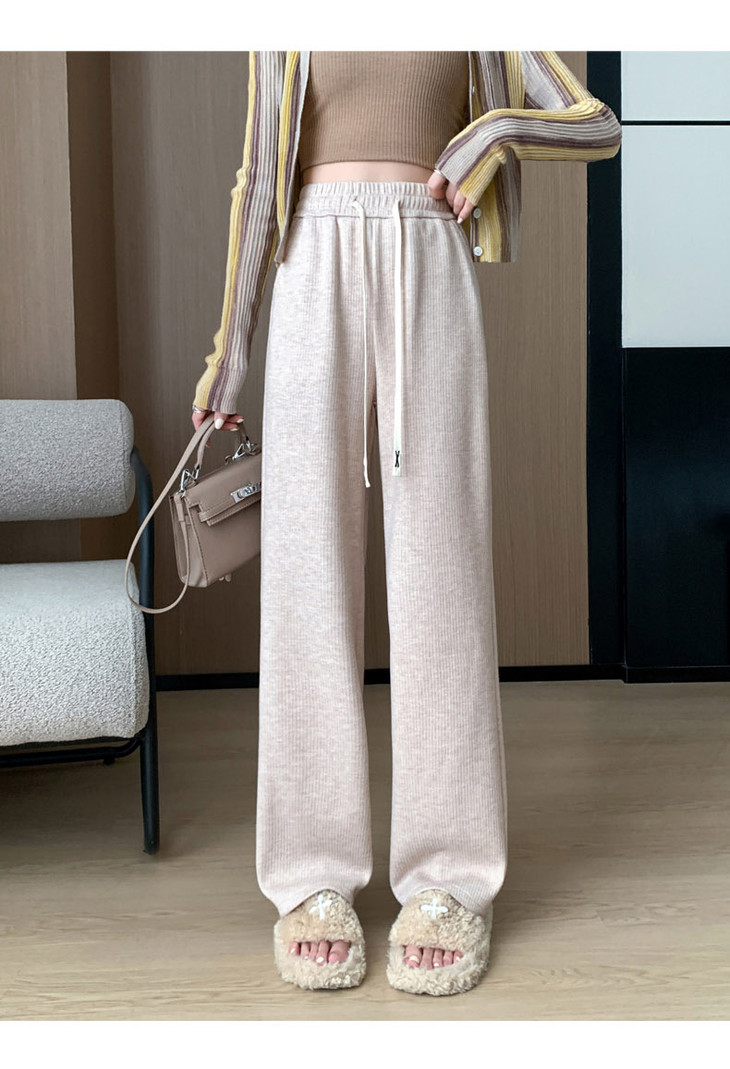 女秋冬高腰直筒拖地裤垂感 糯米裤加绒休闲裤 仿羊绒阔腿裤