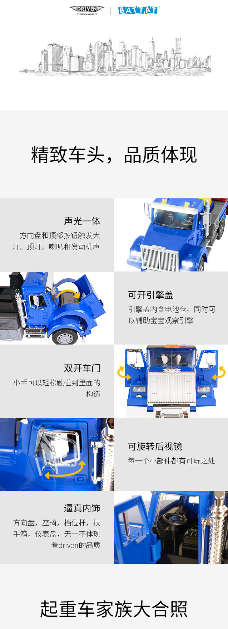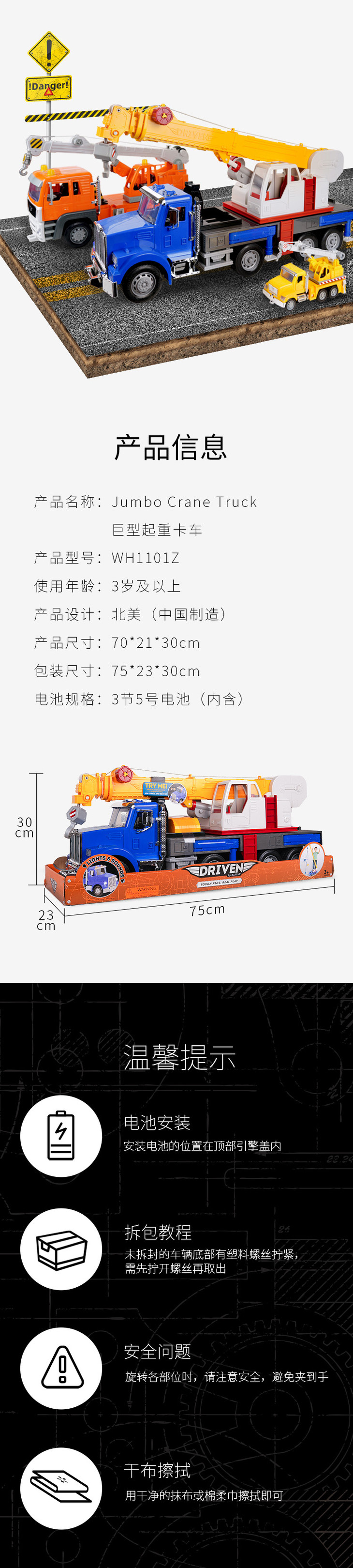 北美Driven巨型起重卡车机吊车工程车吊臂玩具模型超大号礼物-【玩具】