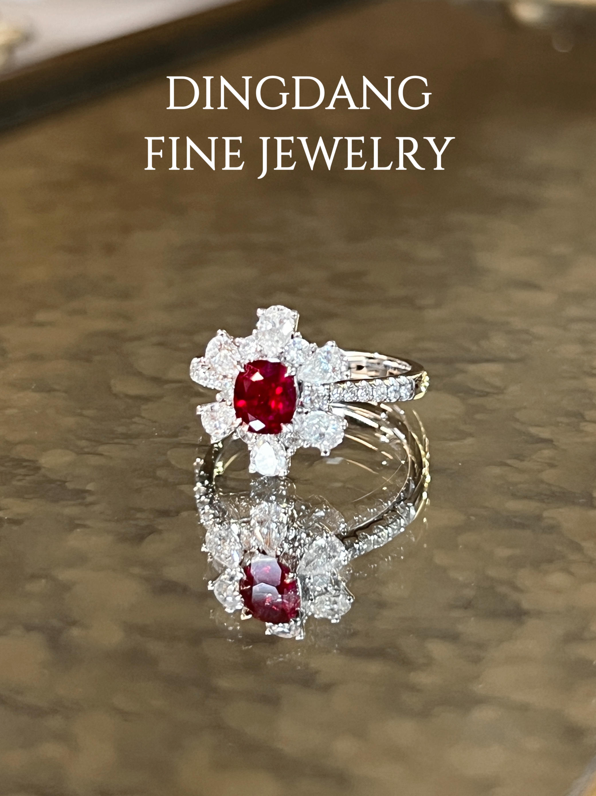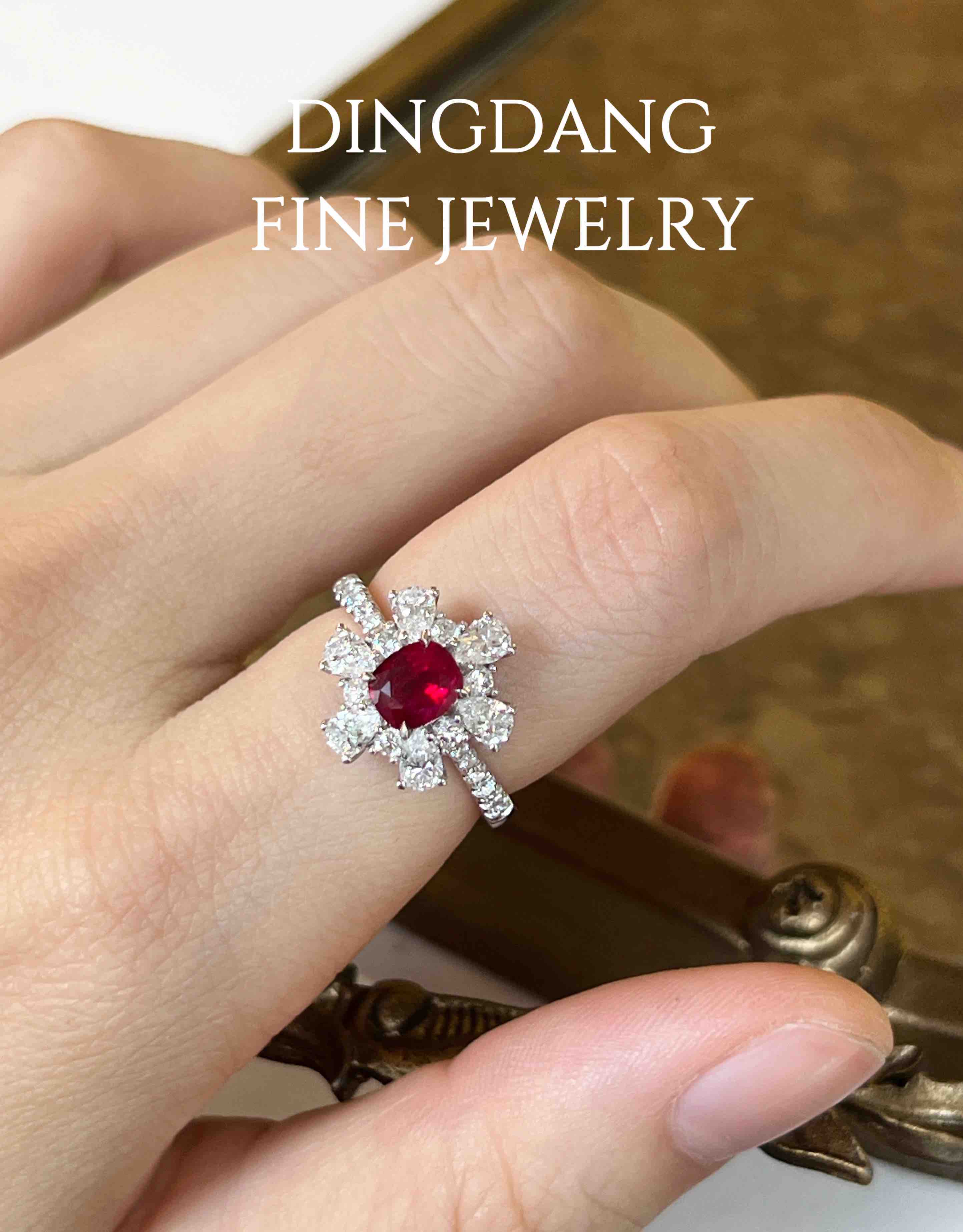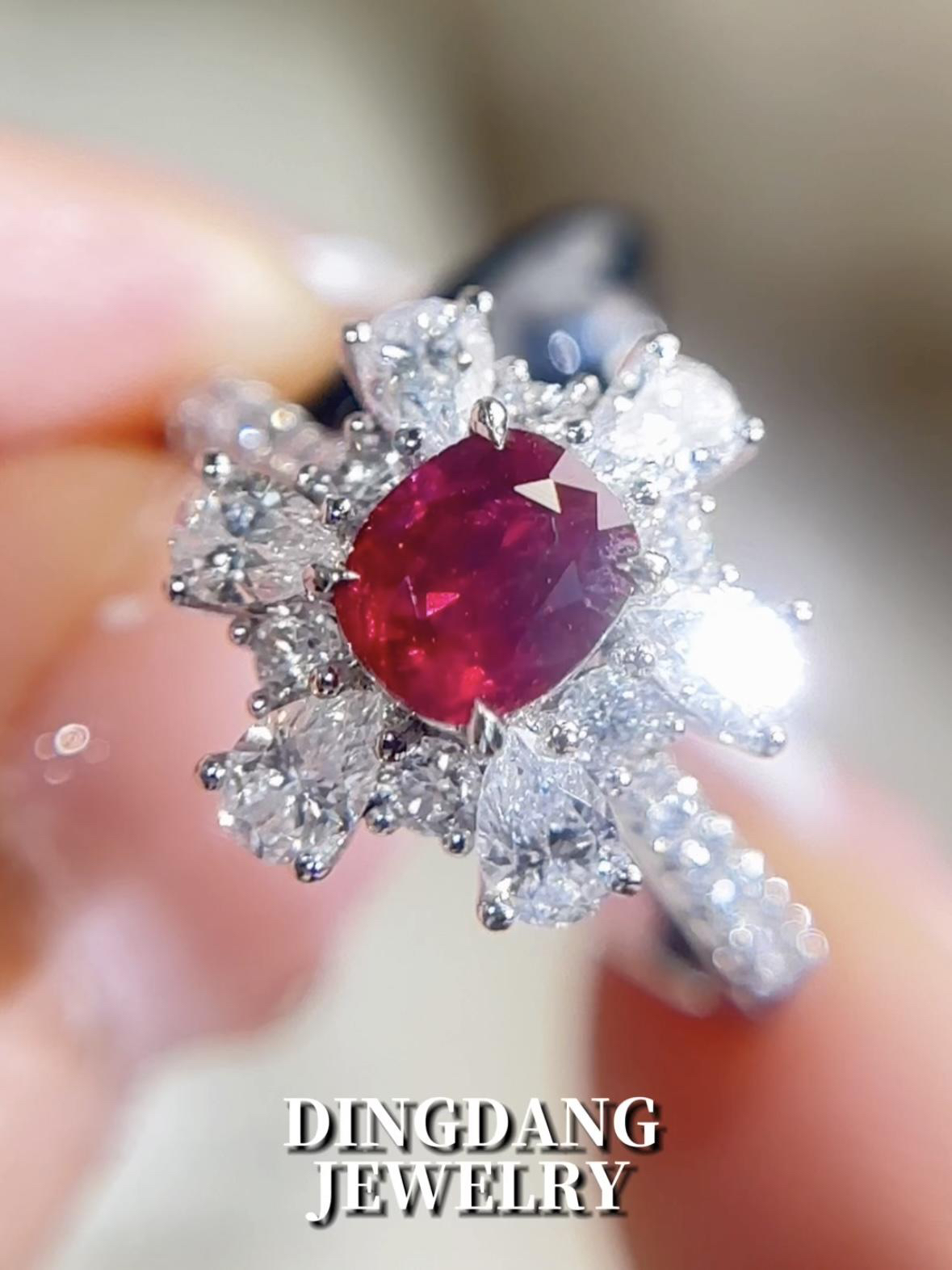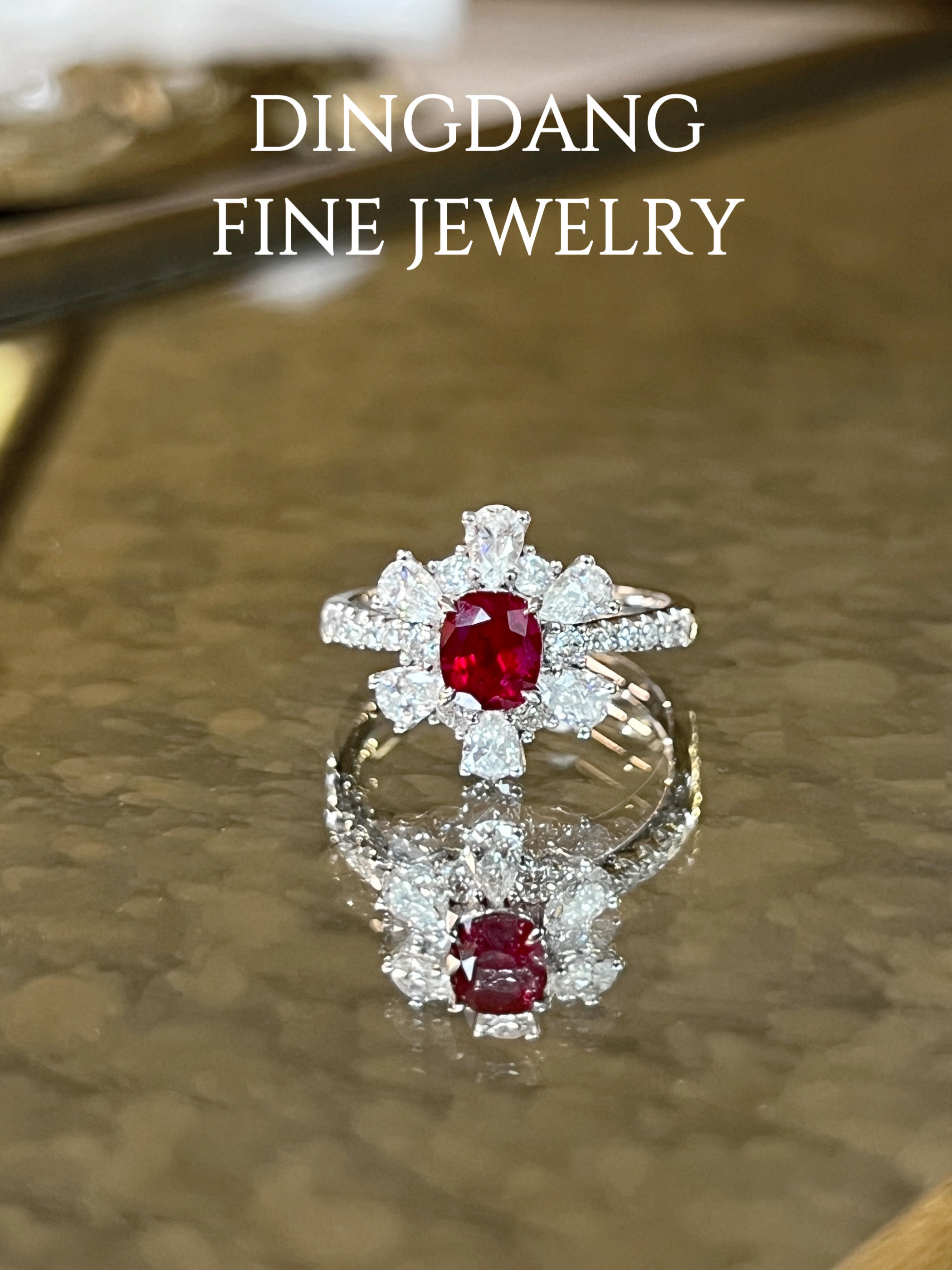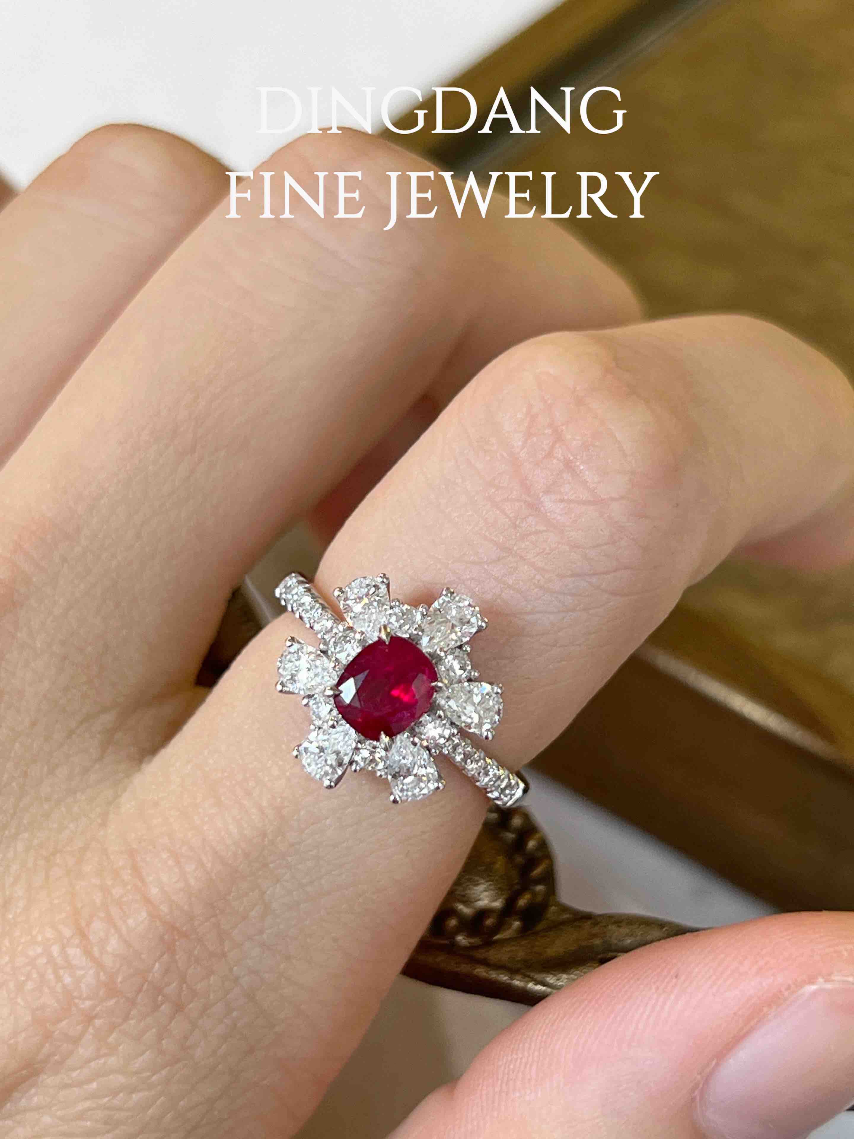 缅甸红宝石鸽血红 0.82ct 镶钻1.9ct 钻戒