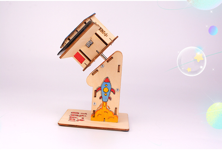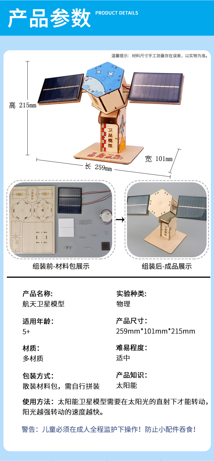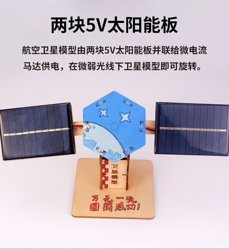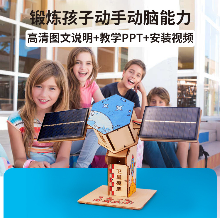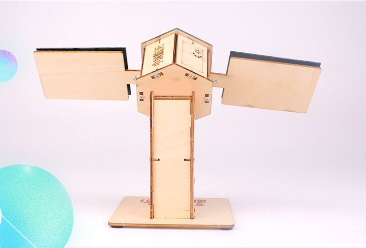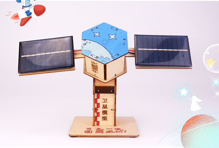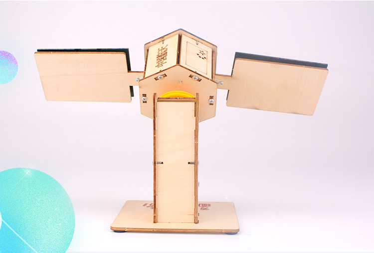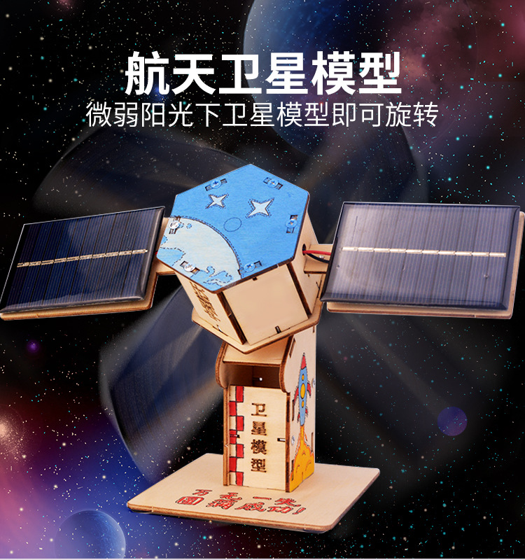 【赠课程】航天卫星模型 科学实验宇宙航空 人造卫星太阳能 木质玩具 物理科技小制作玩具