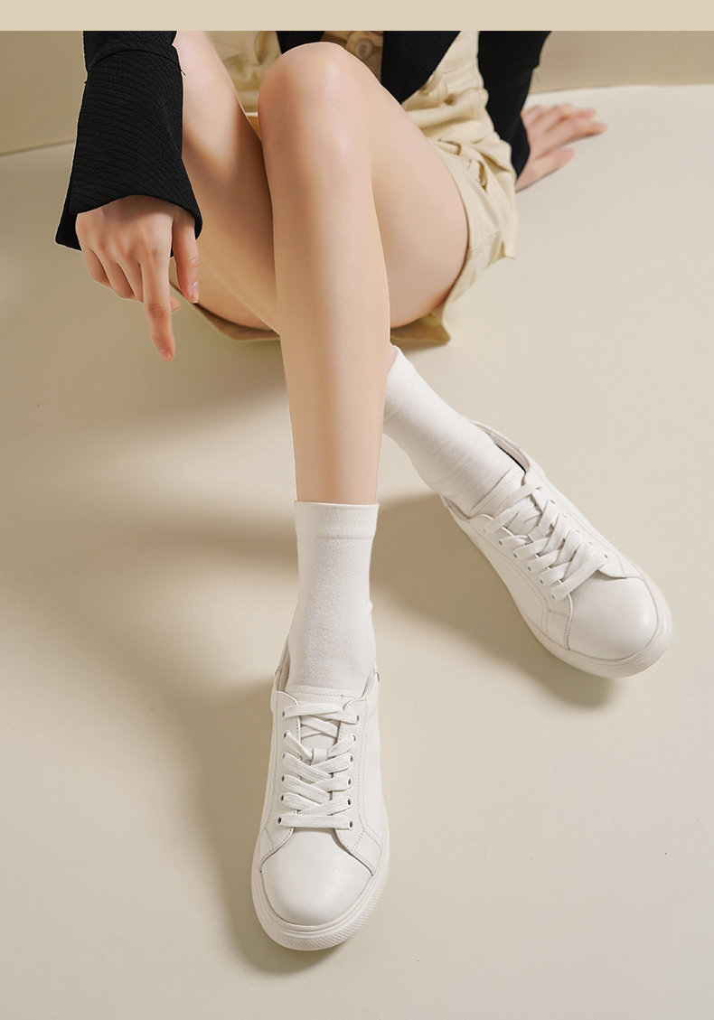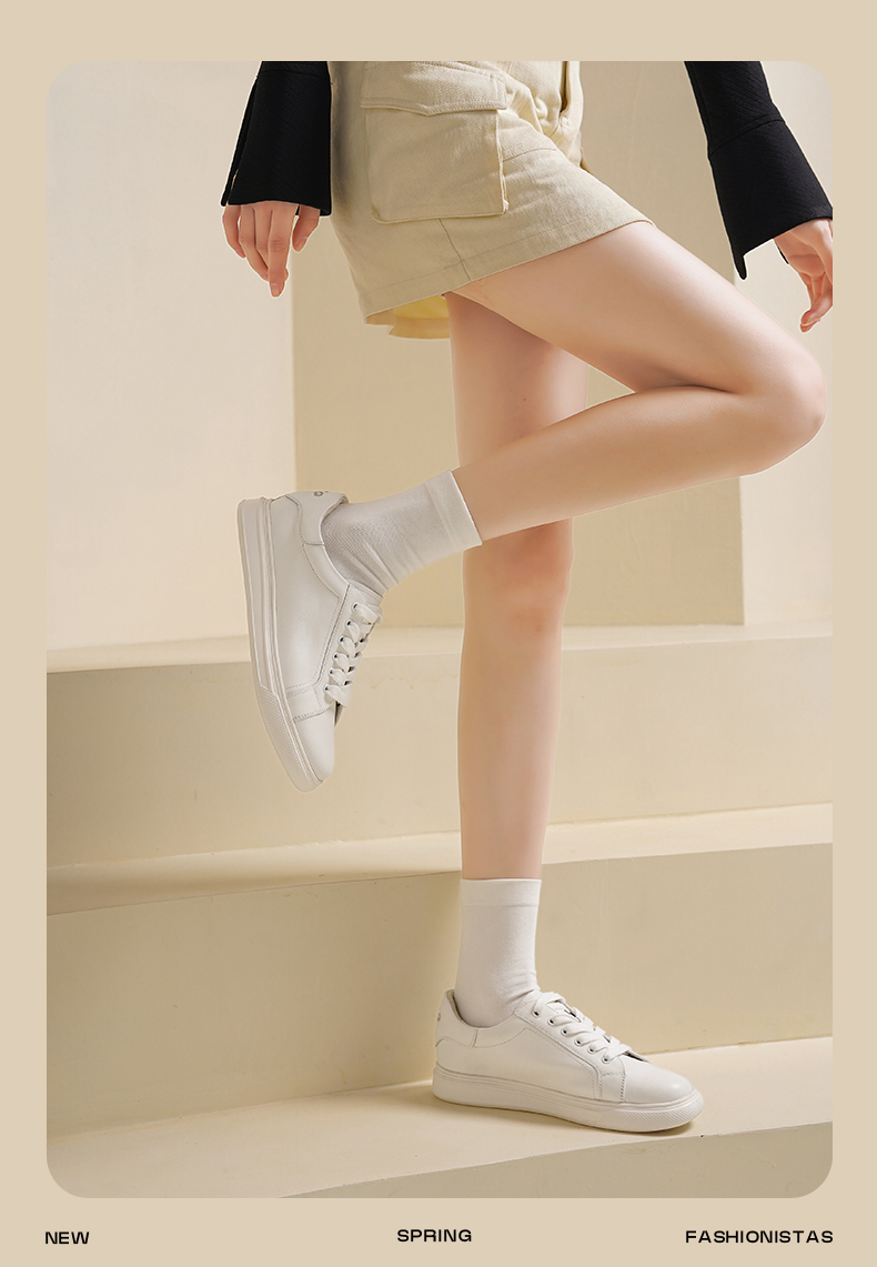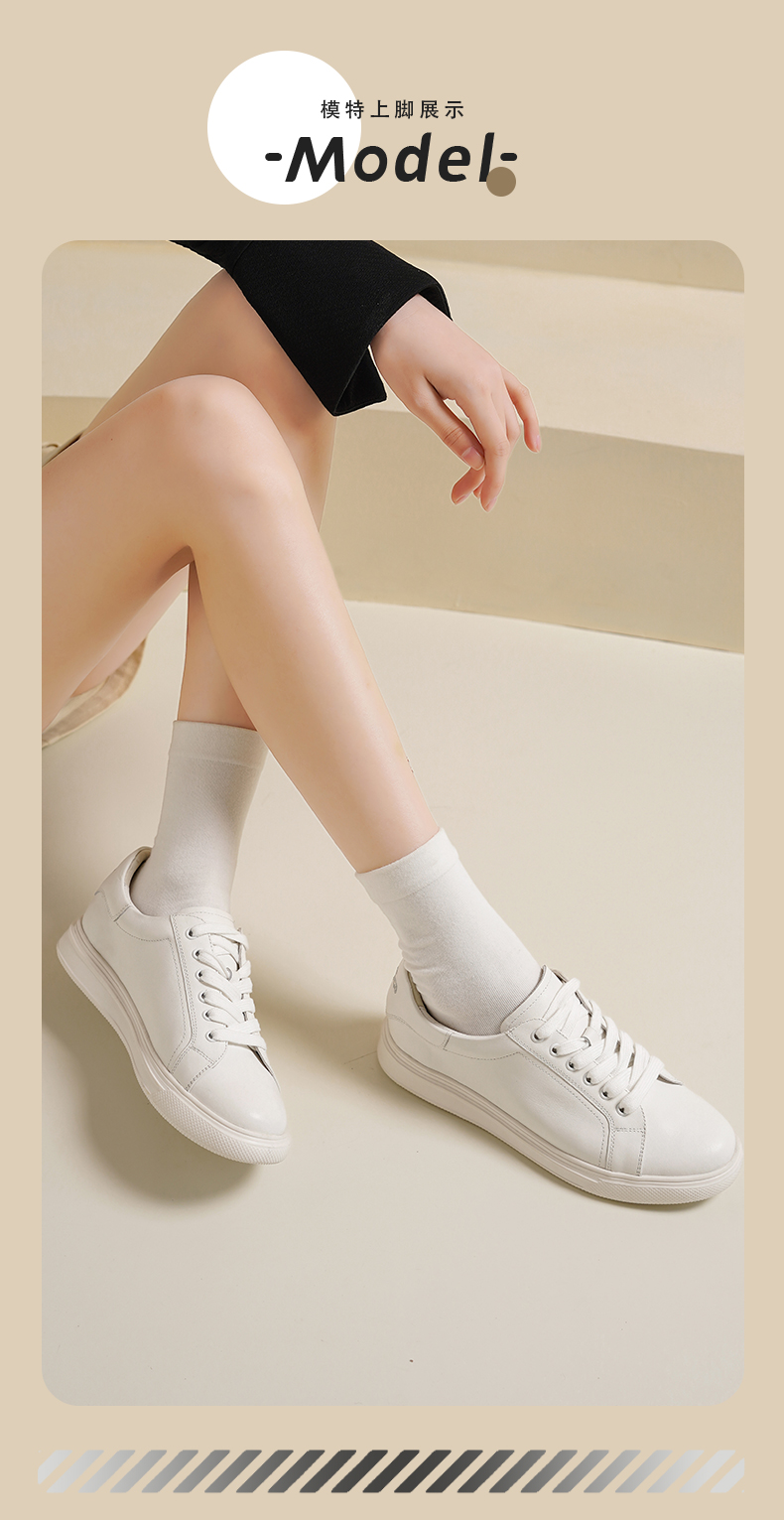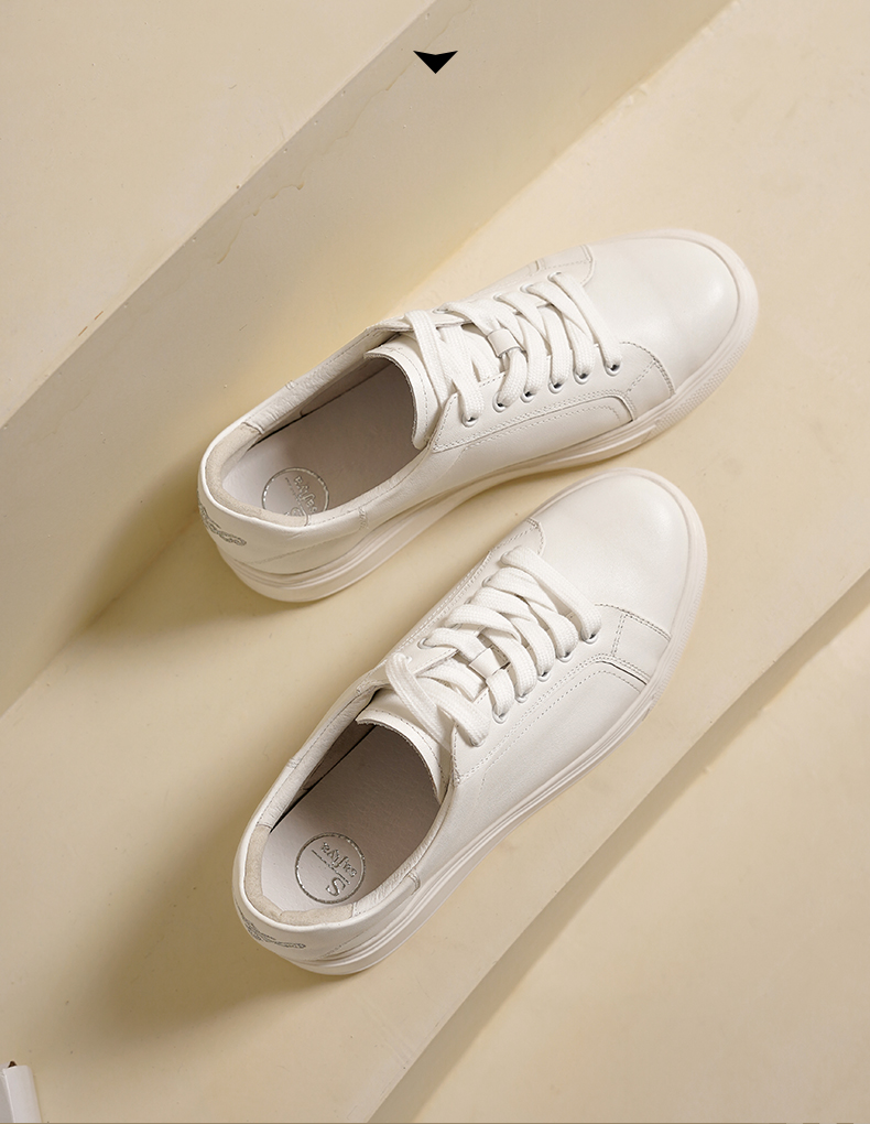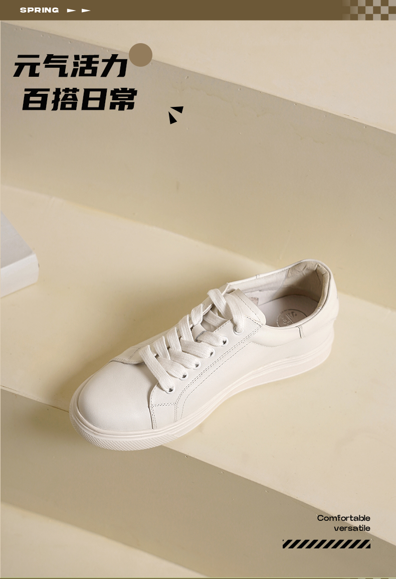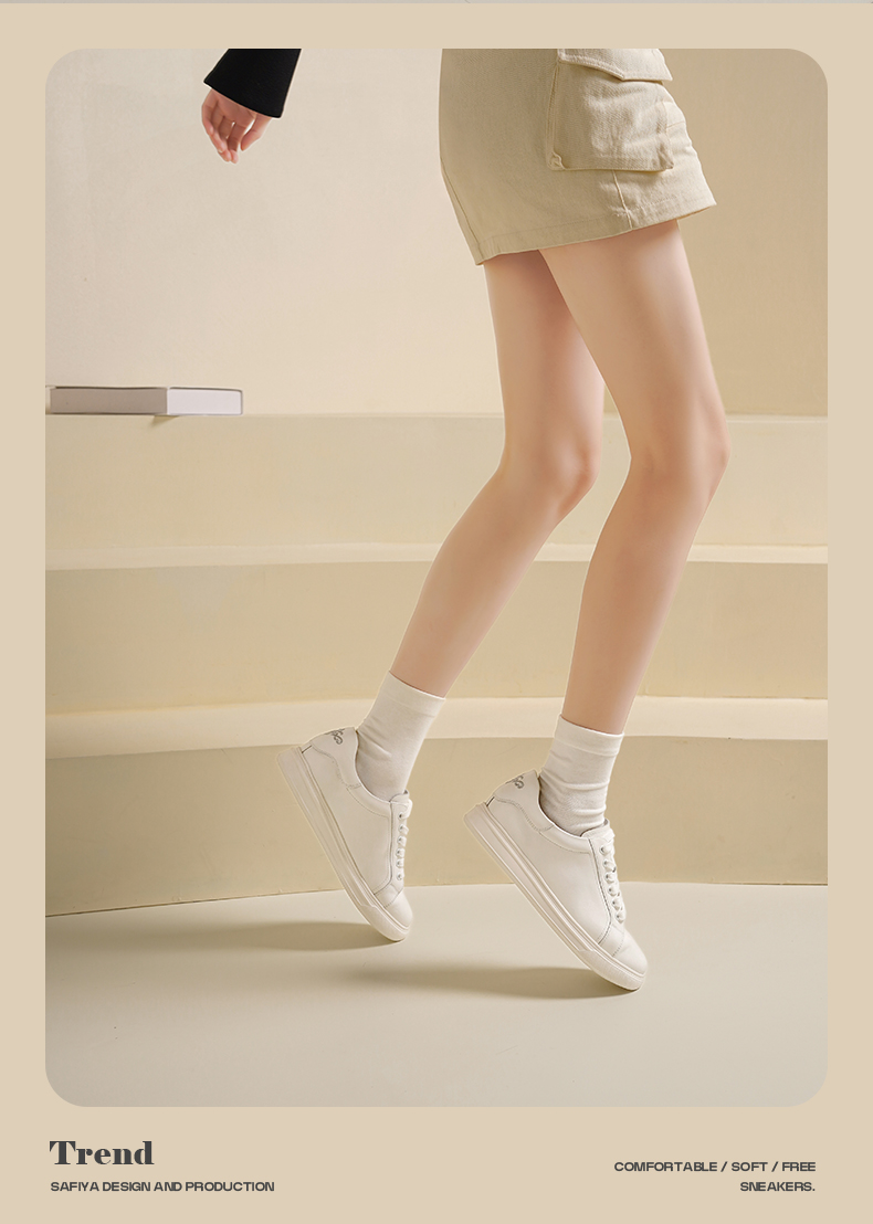 Safiya/索菲娅2025春夏轻便真皮圆头百搭休闲学院平底小白鞋 SFD1112166
