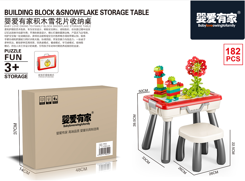婴爱有家 儿童拼装益智积木雪花片收纳桌椅子套装组装