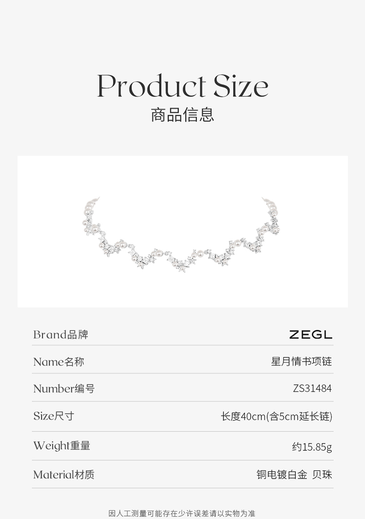 ZEGL设计师秋夜甜梦系列星月人造珍珠项链女轻奢小众锁骨颈链配饰