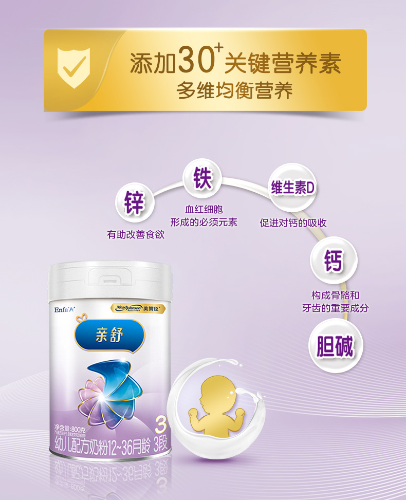 美赞臣亲舒3段幼儿配方奶粉800克罐装(12-36月龄) 乳蛋白部分水解/MZC-004734