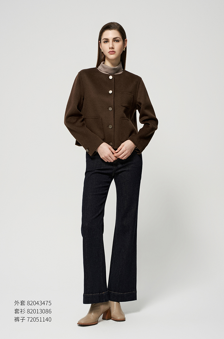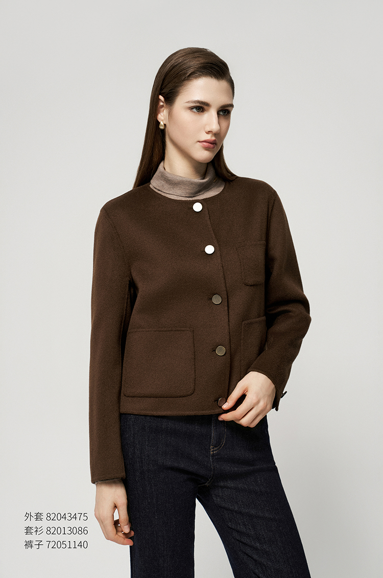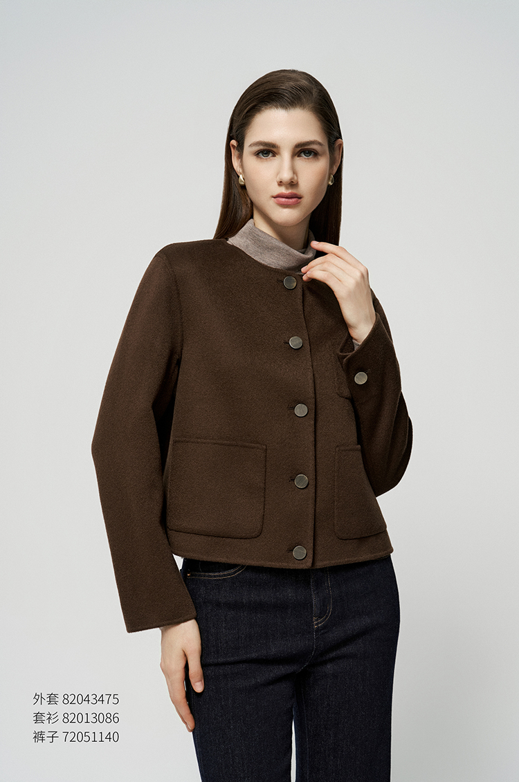 【短款羊绒外套】羊绒世家秋冬新品女士100%山羊绒纯色毛呢小外套