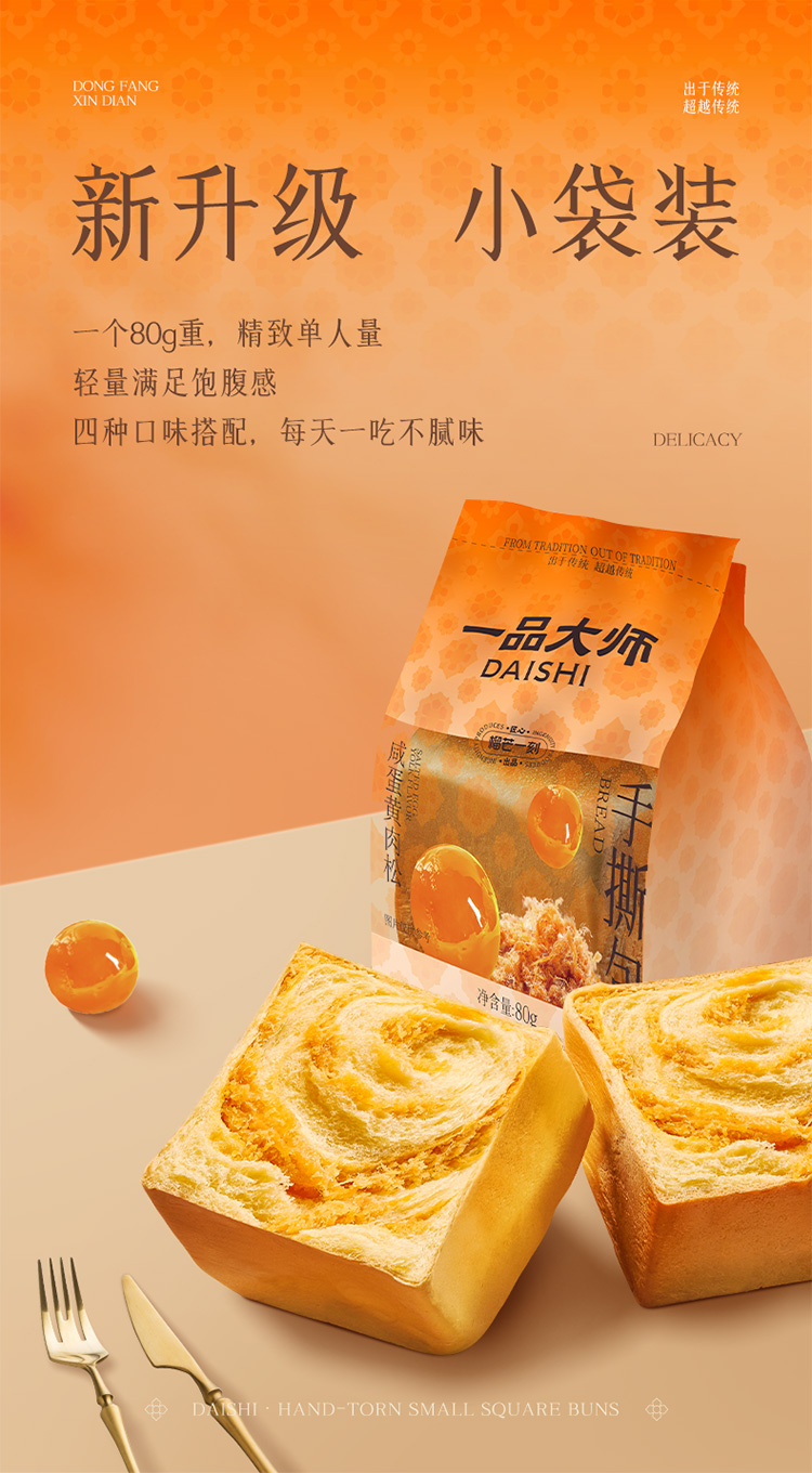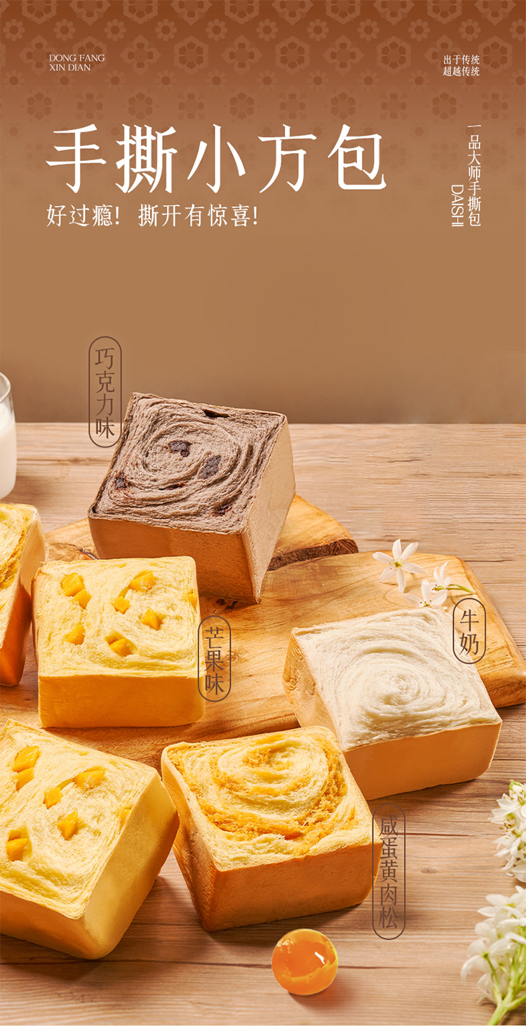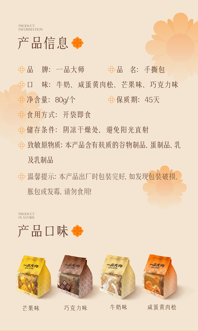 【4种口味任选尝鲜】榴芒一刻 手撕面包牛奶/芒果/巧克力/咸蛋黄80g*6袋早餐吐司蛋糕点心健康零食下午茶