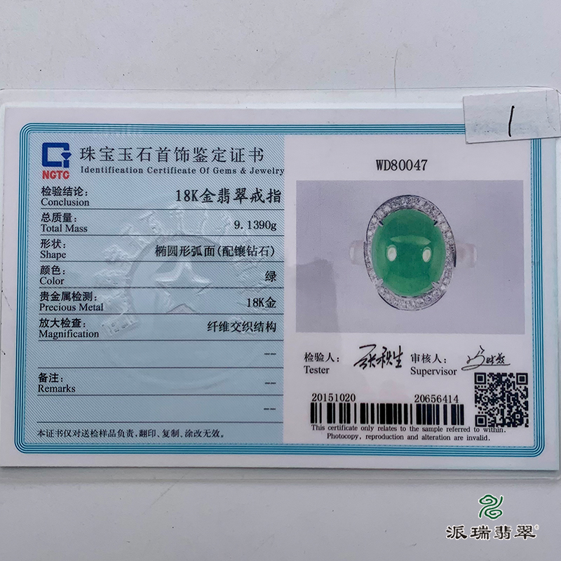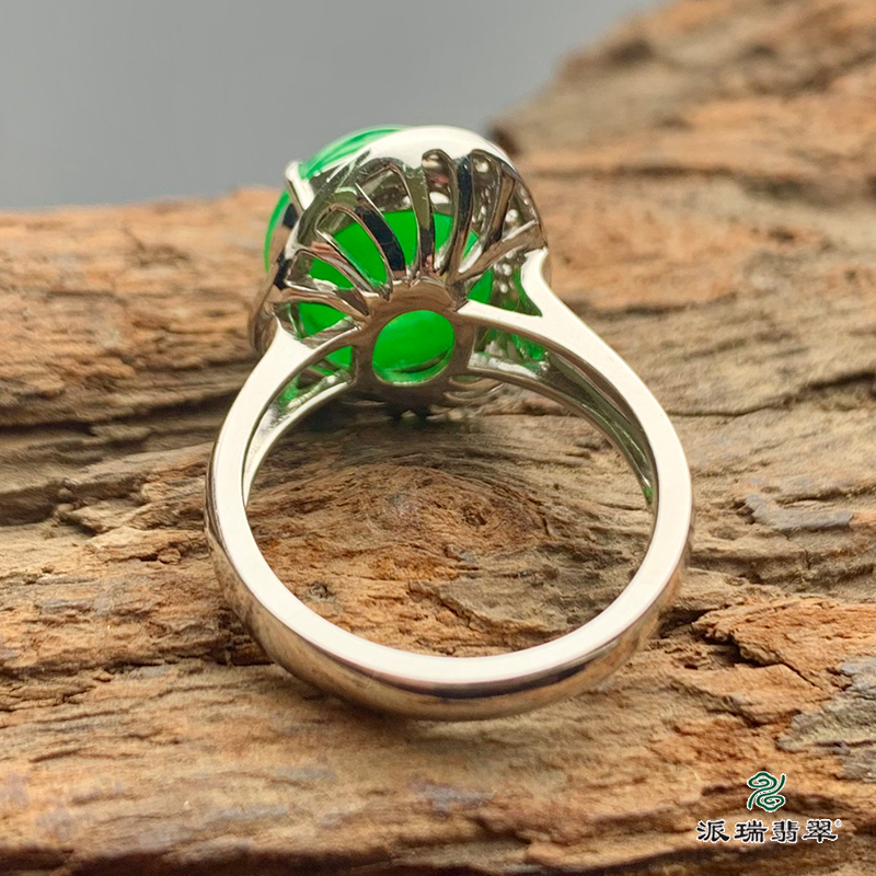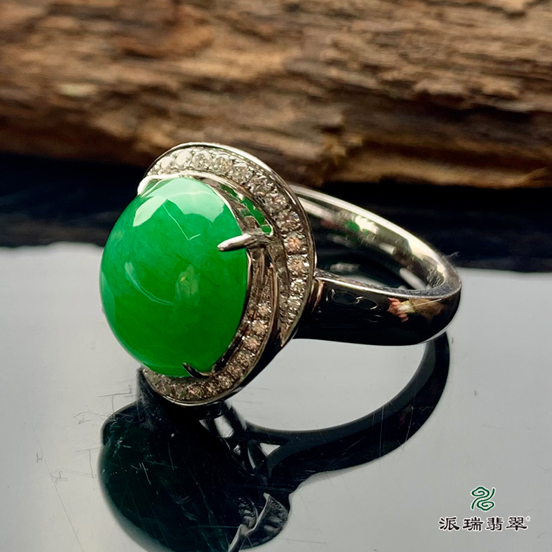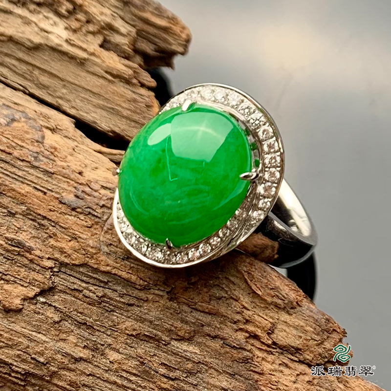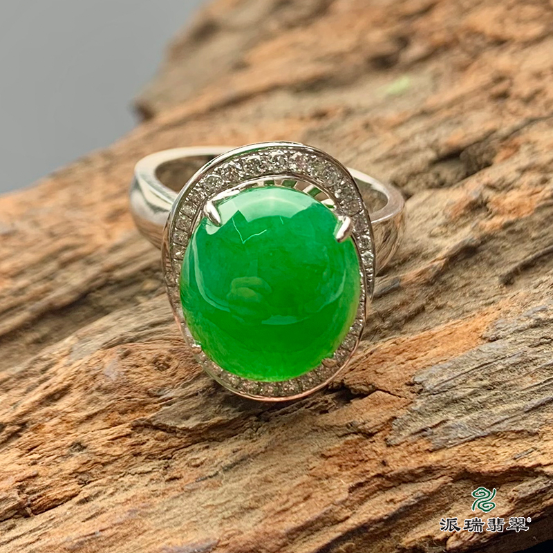 派瑞翡翠 18k金翡翠戒指 糯种 阳绿