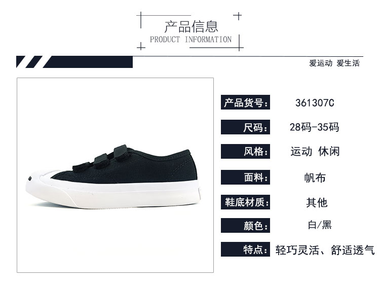 Converse匡威商场同款童鞋春男女儿童魔术贴休闲鞋开口笑低帮帆布鞋361307C