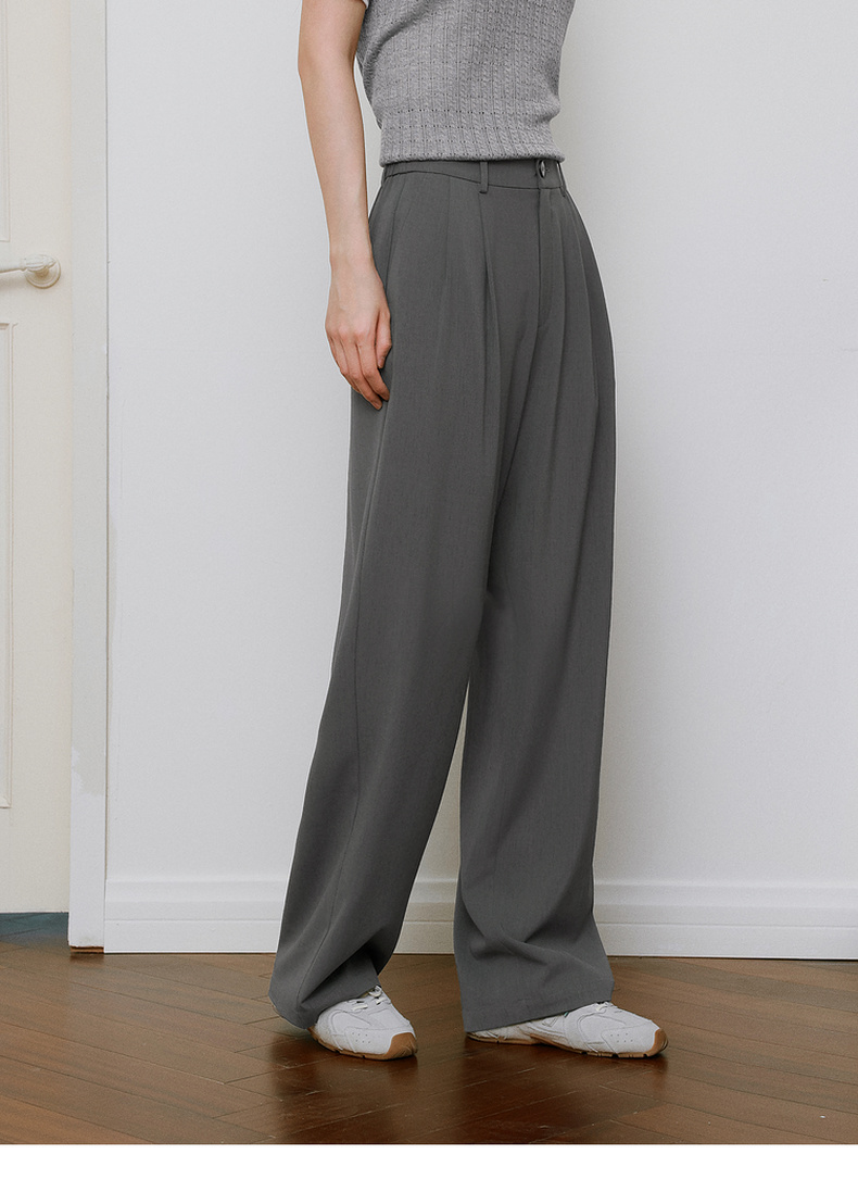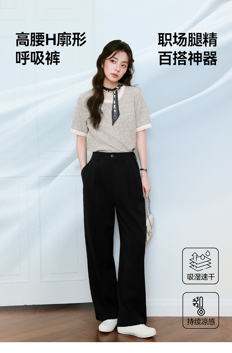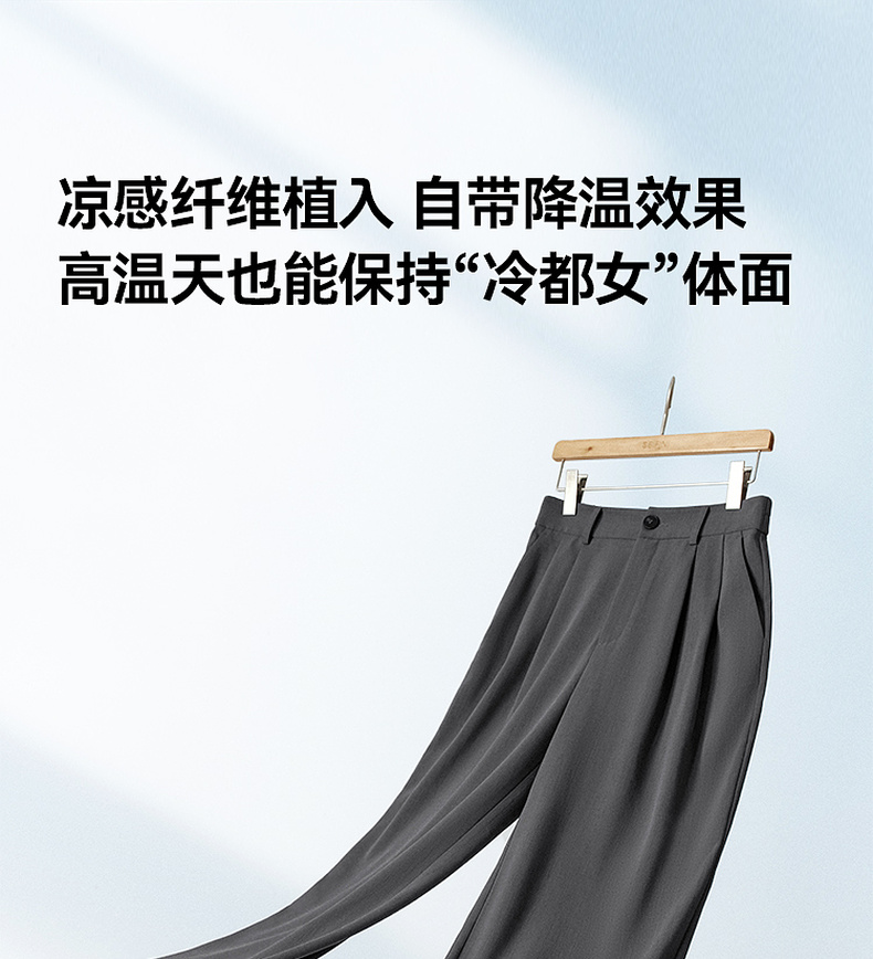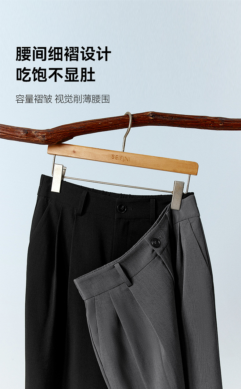 【严选】诗凡黎高级西装阔腿裤2025年春显瘦修身垂感气质时尚设计感休闲裤7G3150011