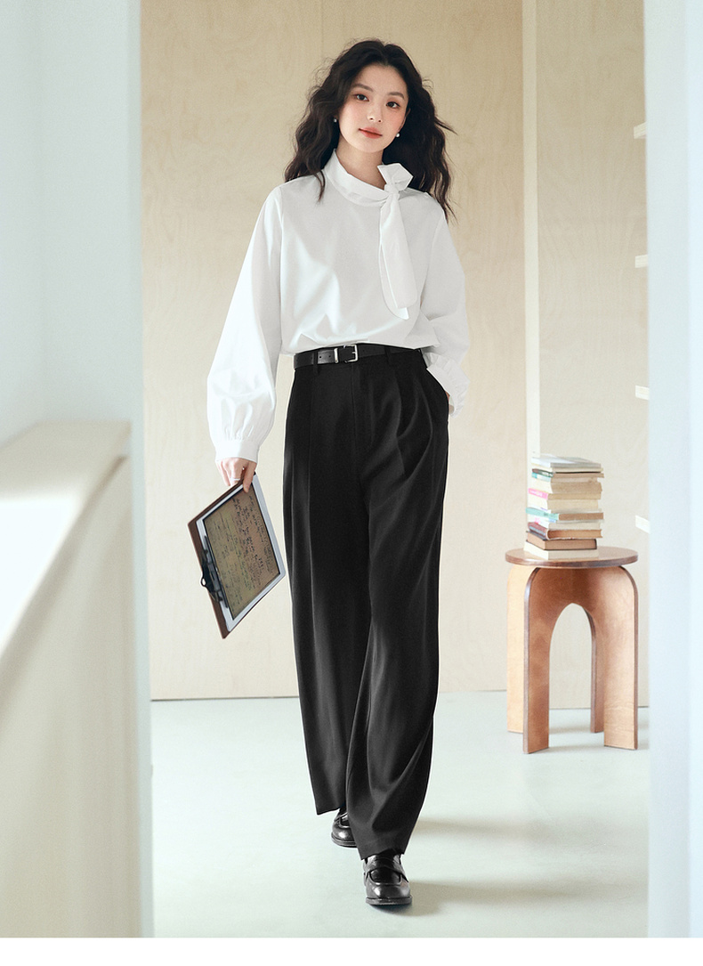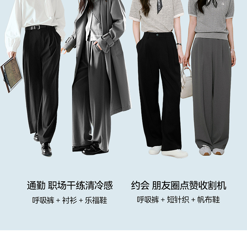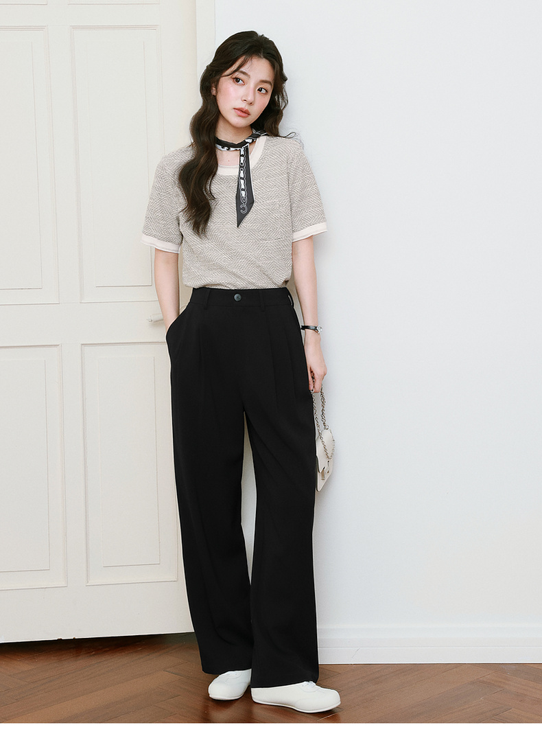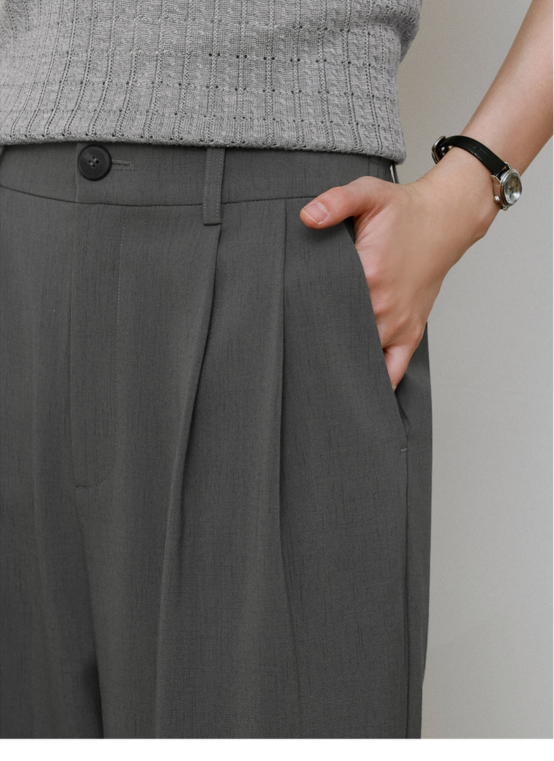 【严选】诗凡黎高级西装阔腿裤2025年春显瘦修身垂感气质时尚设计感休闲裤7G3150011