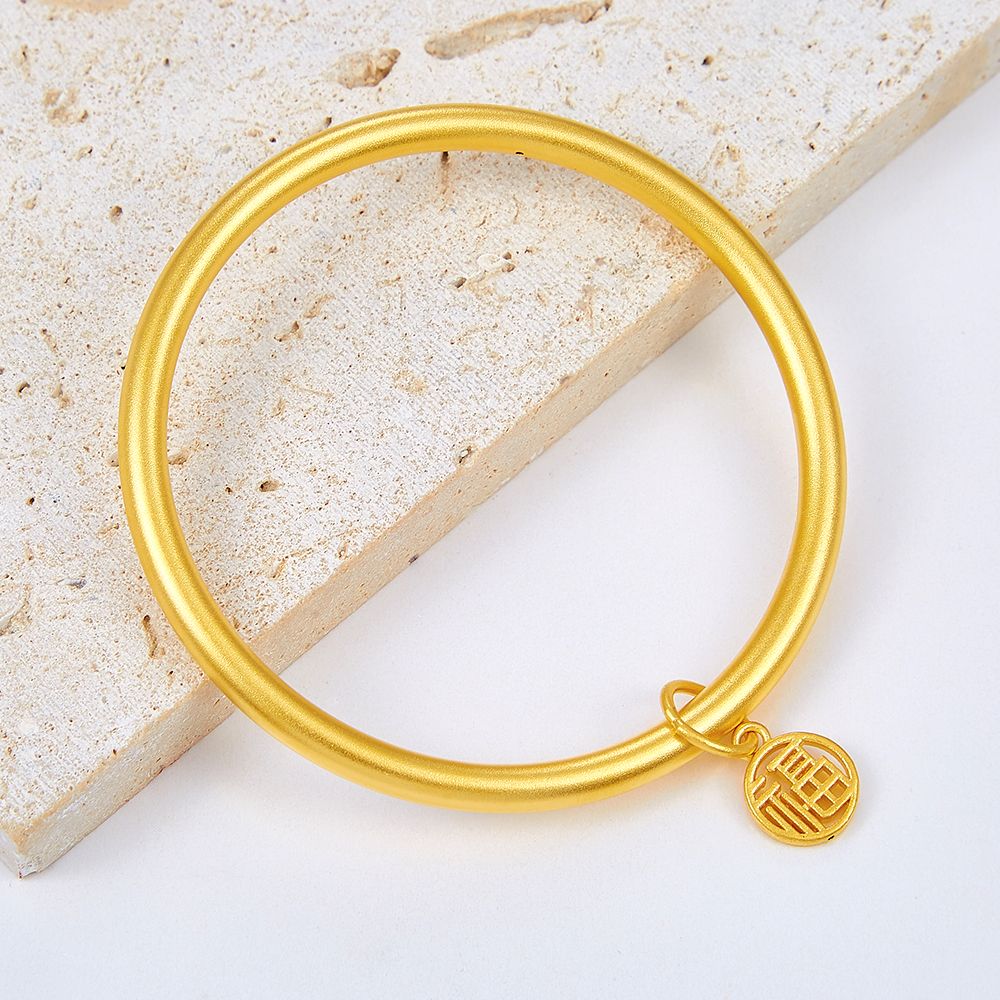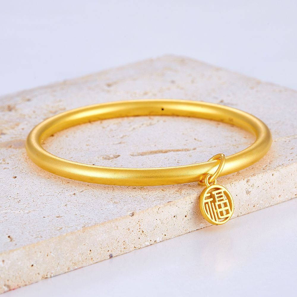 【限时克减150元】足金 【精品】3D硬金空心(面宽约4.1-4.5mm)仿古法镂空福字圆牌固口手镯(N3DSZ00054)(预售产品下单后不退款不退货不换货不补差价)