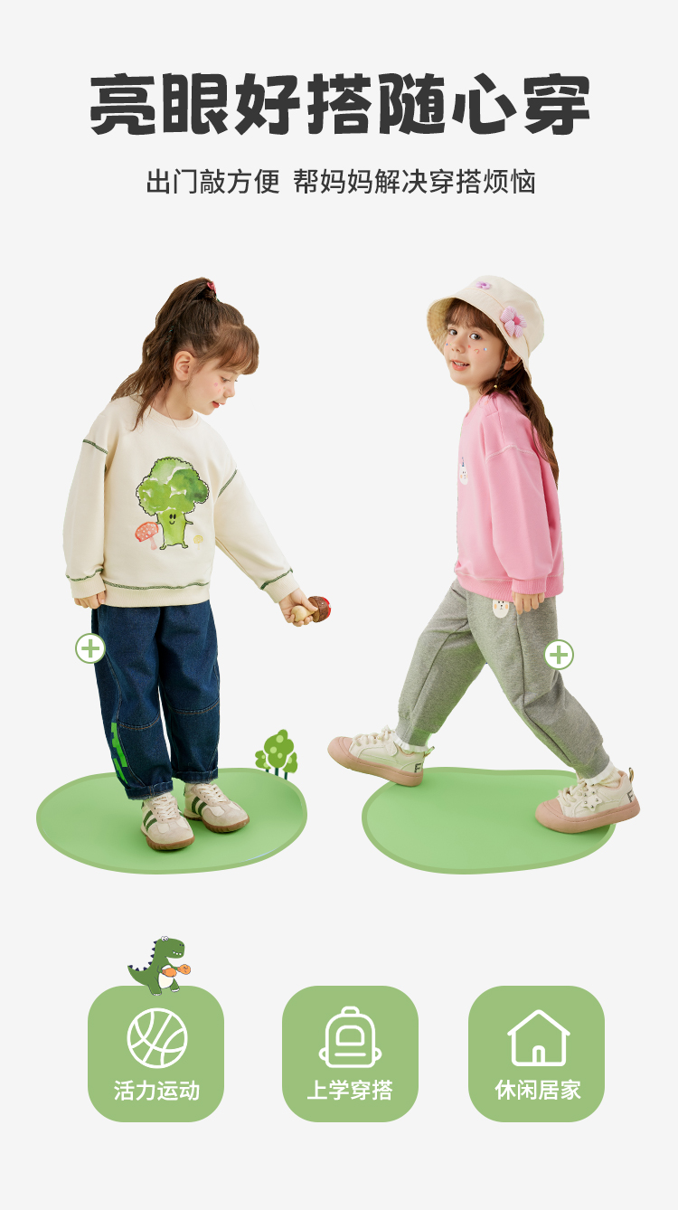 【80-140】【MQDmini】女童春秋圆领百搭运动卫衣