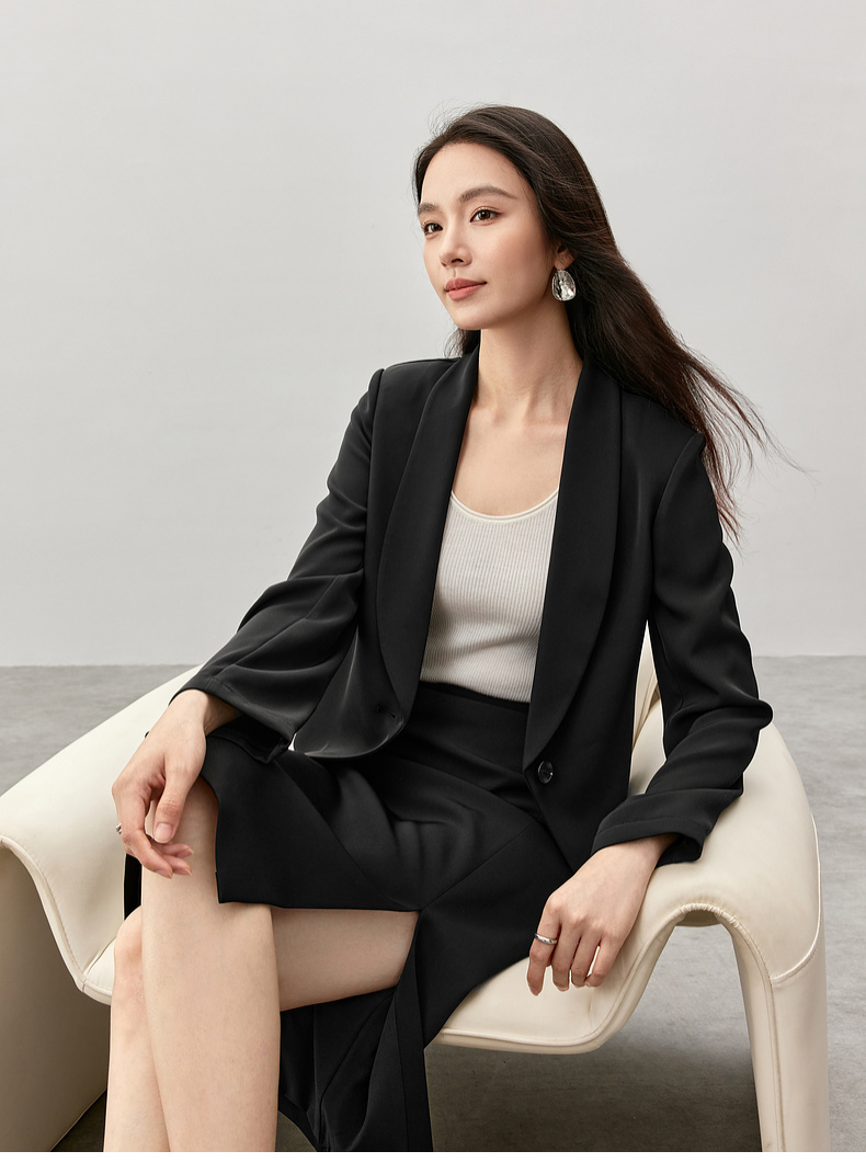 【尚都比拉】小个子系列职场通勤/气质青果领西装套装开衩半裙高级感套装-151Z56886