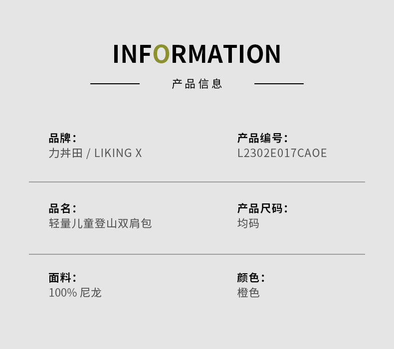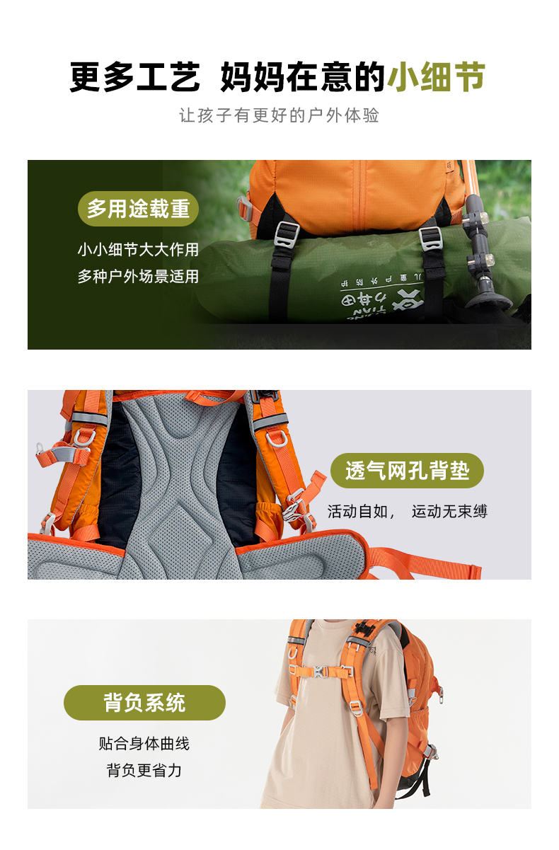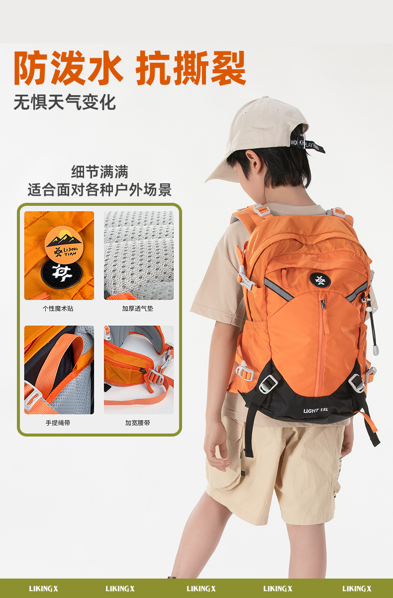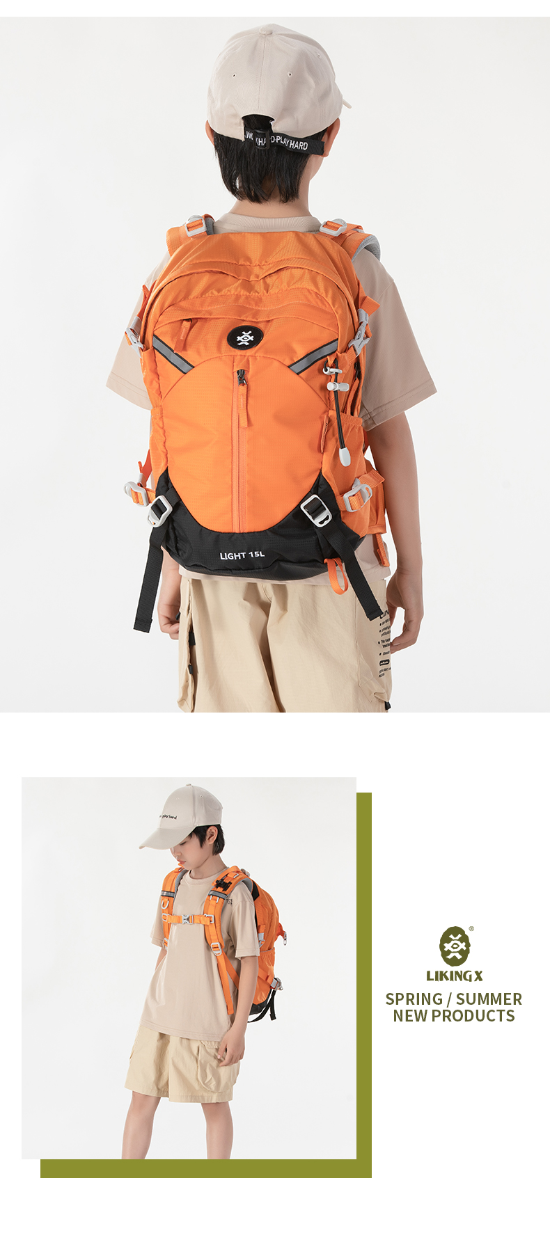 力丼田儿童户外背负系统 登山旅行尼龙双肩背包 减负轻量防泼水15L L2302E017CAOE