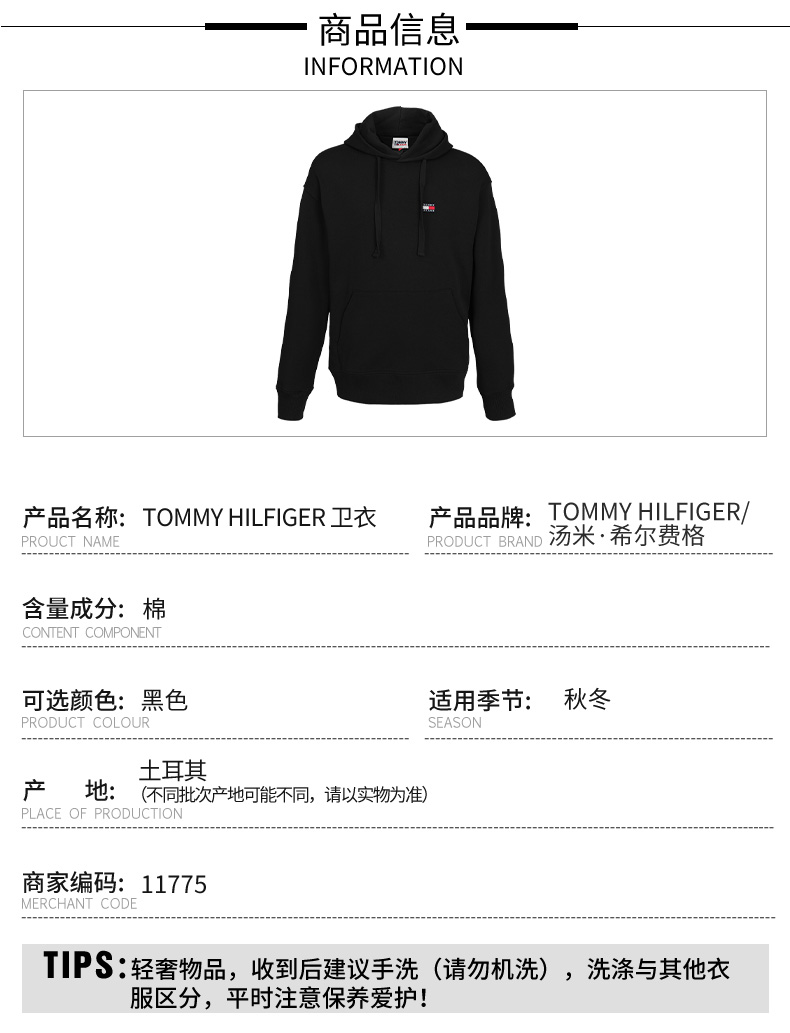 Tommy Hilfiger 男士简约休闲连帽全棉卫衣外套 11775
