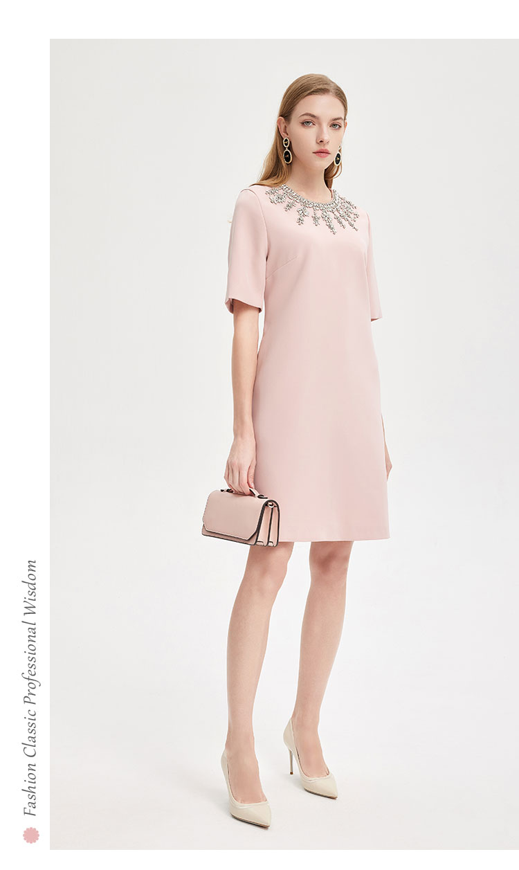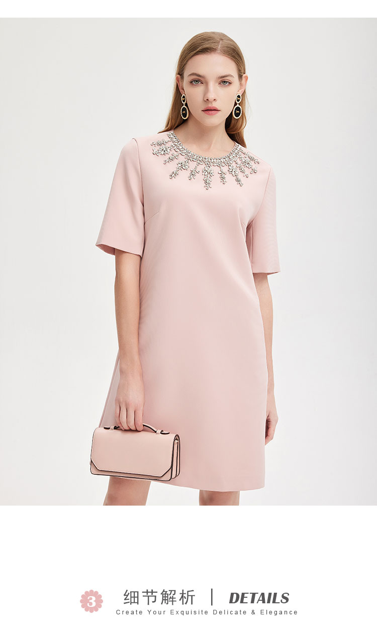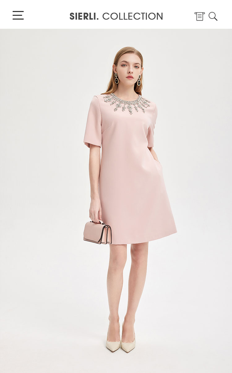 PE803斯尔丽2024新款华丽钉珠H身型高级质感礼服连衣裙