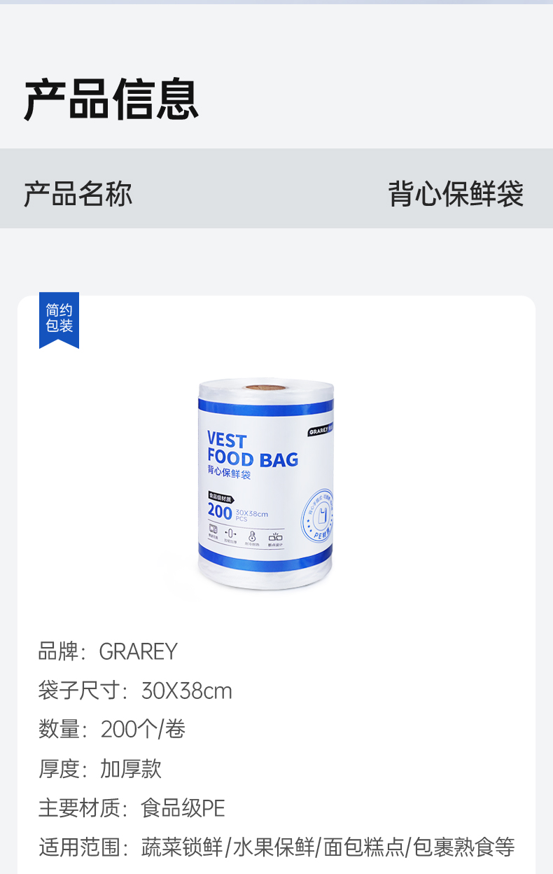 GRAREY背心保鲜袋/1卷(200PCS)