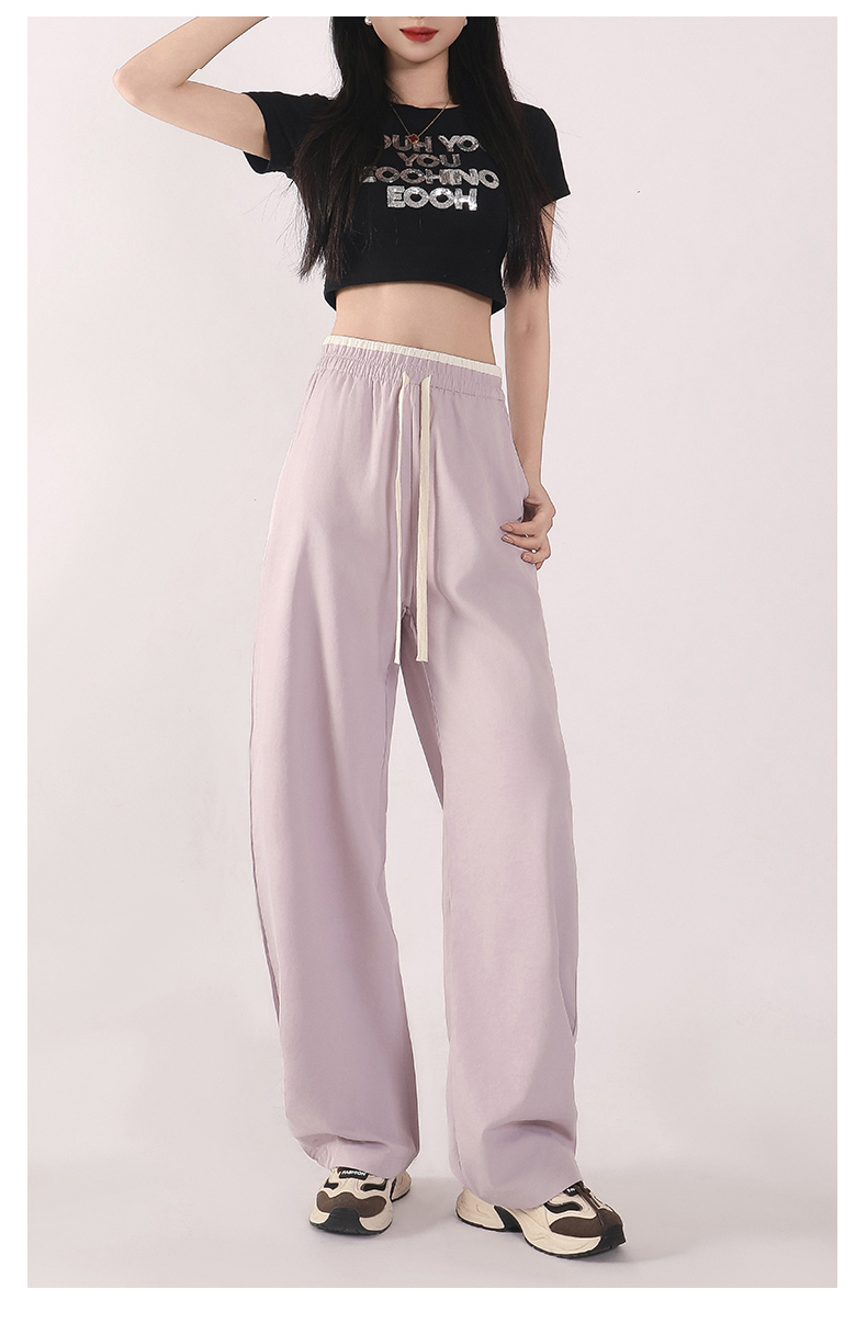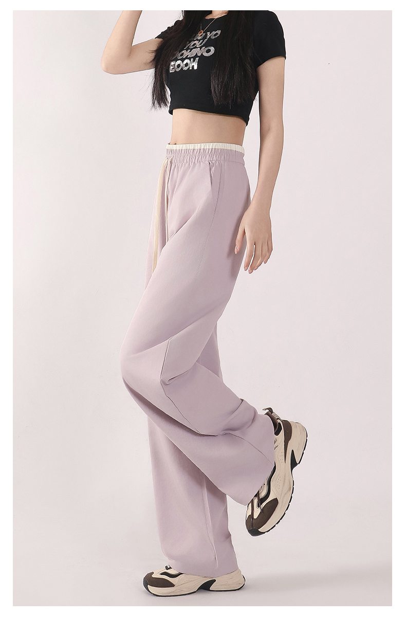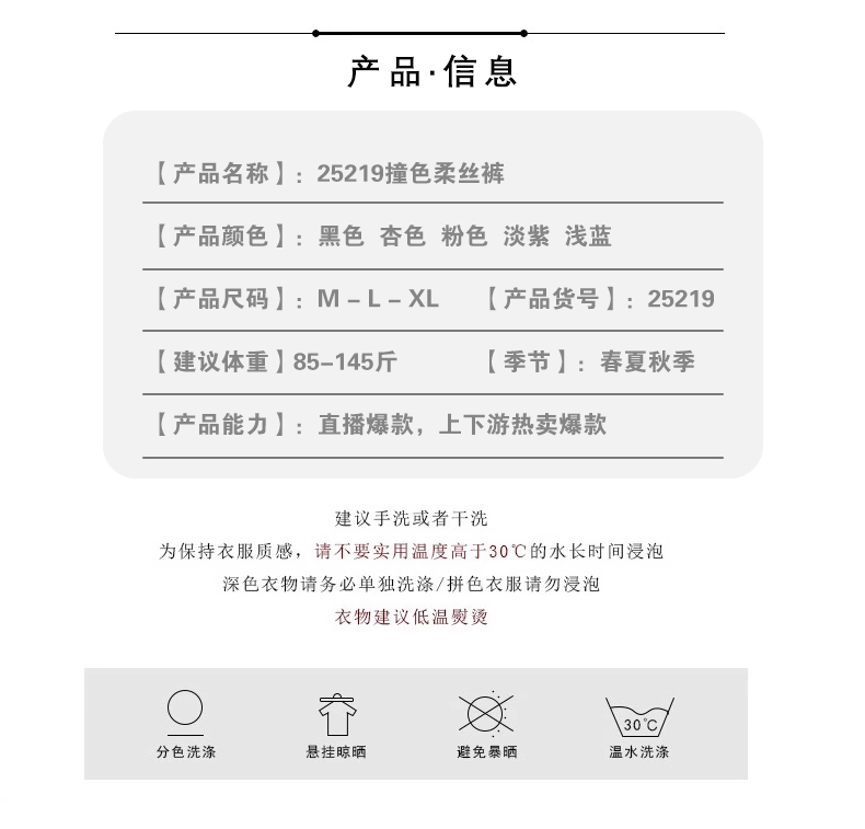 雪梵莱 【春夏撞色柔丝裤】甄选优质面料,小个子高个子都能驾驶 不挑身材,遮肉显瘦,无拘无束,透气舒适,不缩水 不起球 不变形 高腰阔腿裤的版型#L
