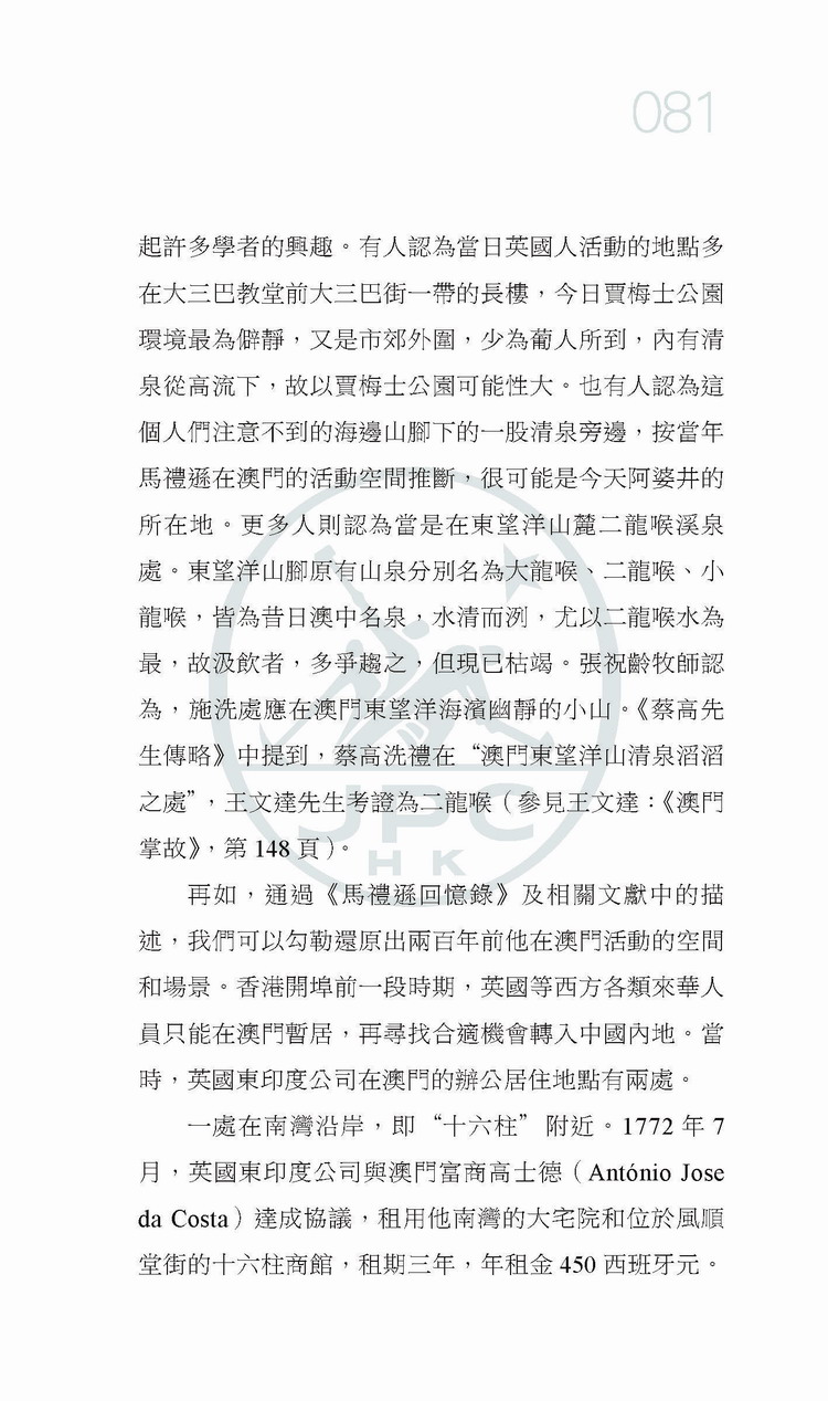 (1)本書系統梳理了19世紀初期英國傳教士羅伯特.馬禮遜在澳門的生活與傳教經歷。