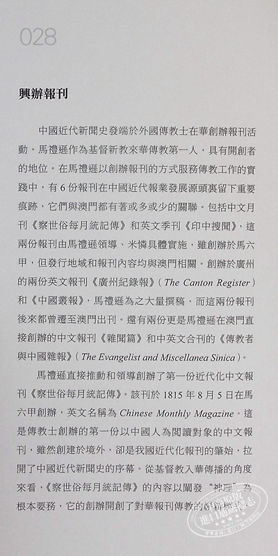 (2)作為首位來華的新教傳教士,馬禮遜是中國近代印刷出版、新聞事業與教育開創者之一。