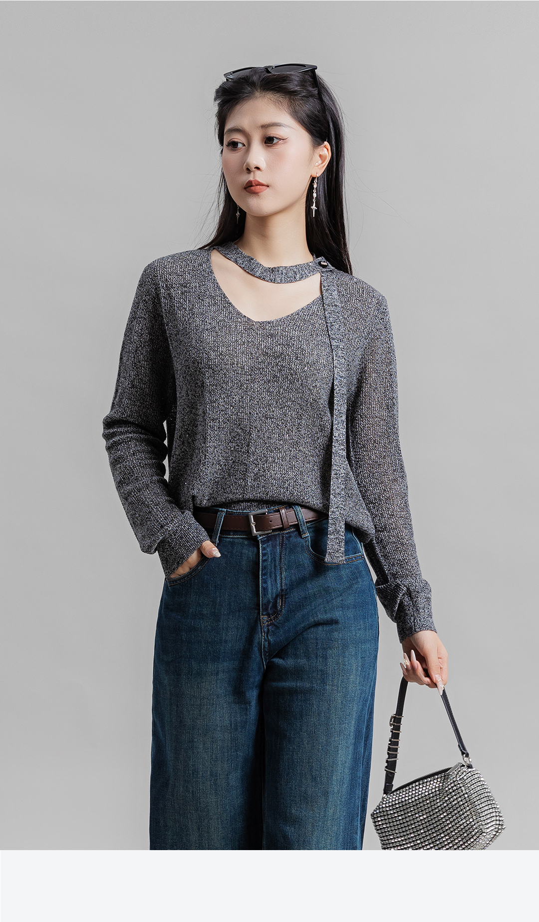 冬上新镂空挂脖设计感显瘦长袖毛衣1254030
