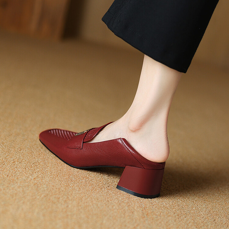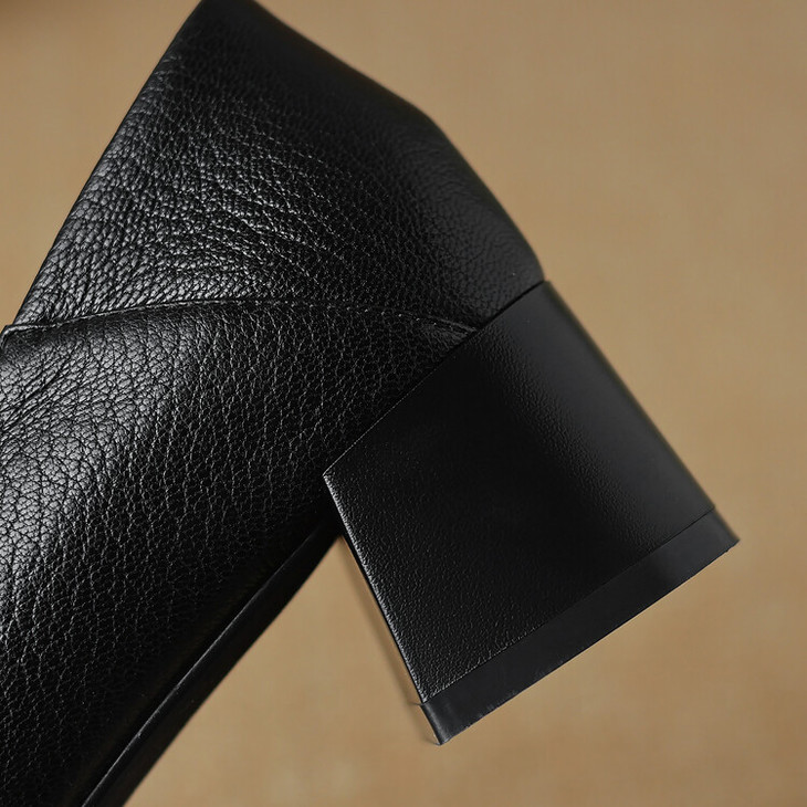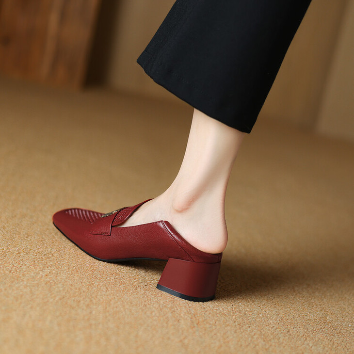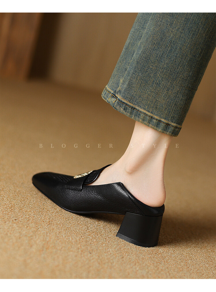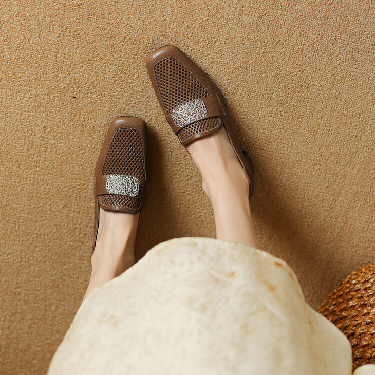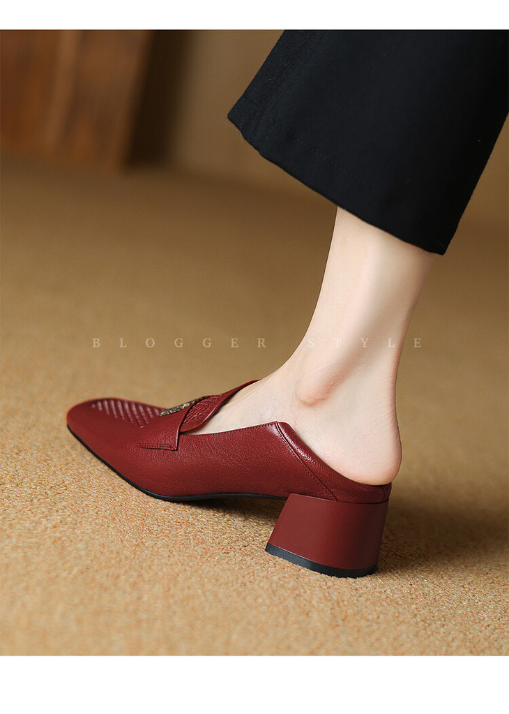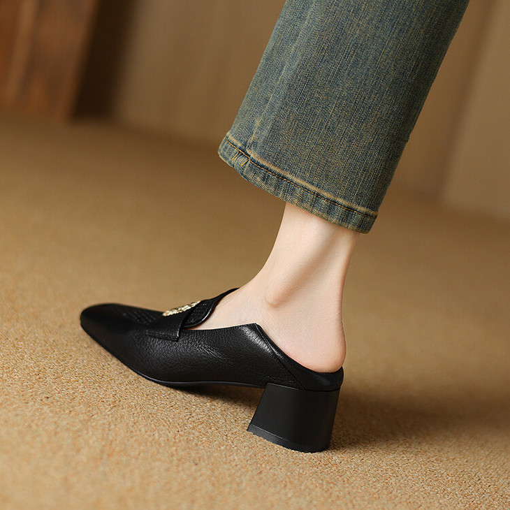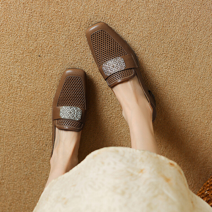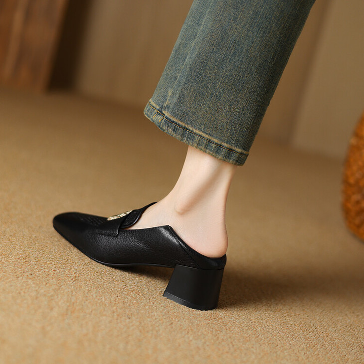 【预售5天】复古真皮方扣粗跟中口单鞋女春秋新款方头高跟镂空洞洞款乐福鞋DPJ&2911