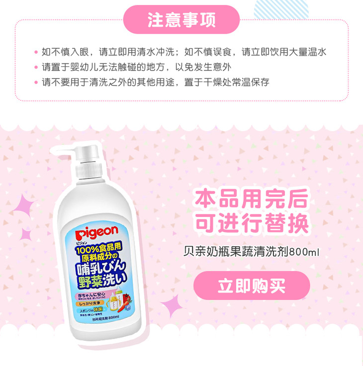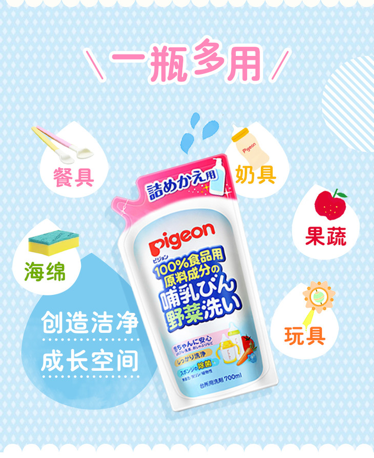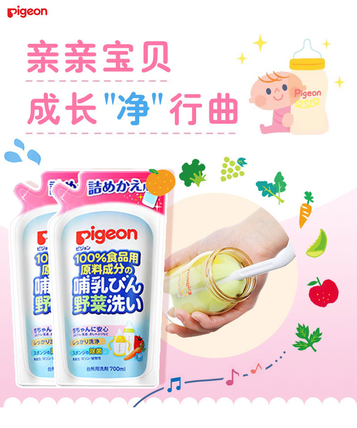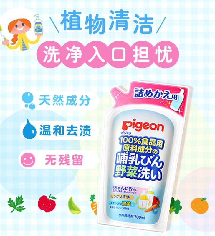 【一般贸易】日本贝亲Pigeon奶瓶果蔬清洗液瓶 替换装 700ml