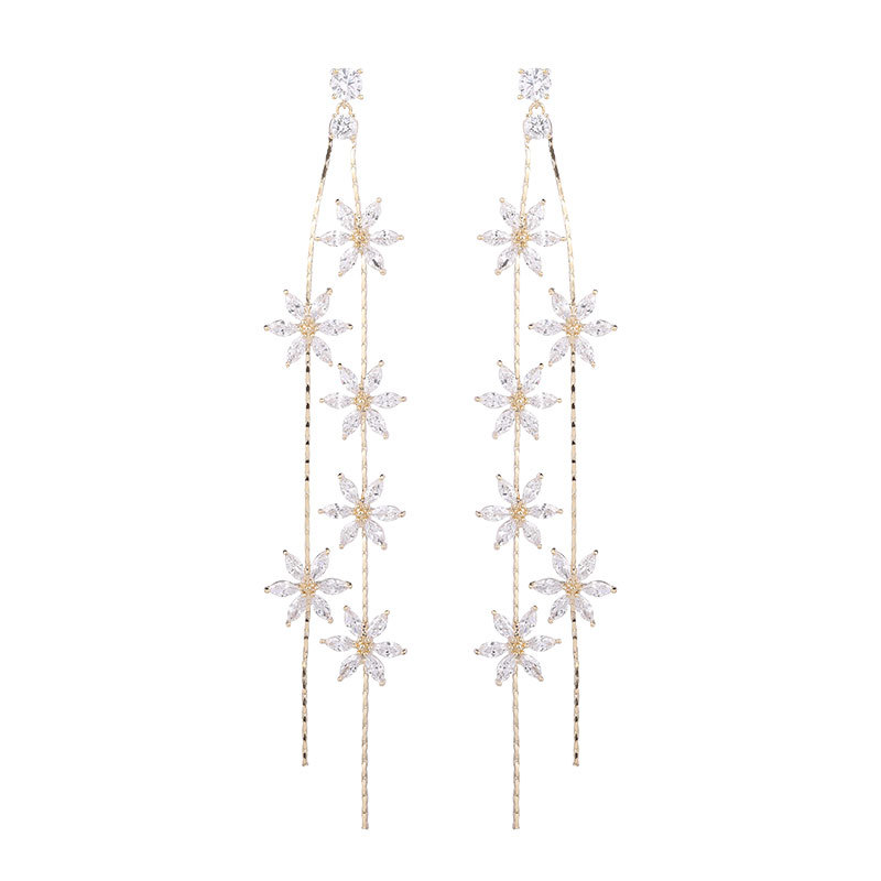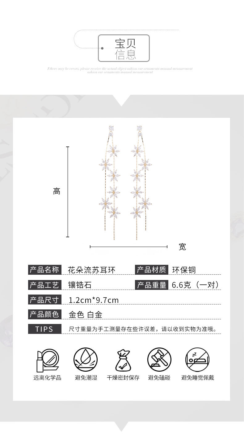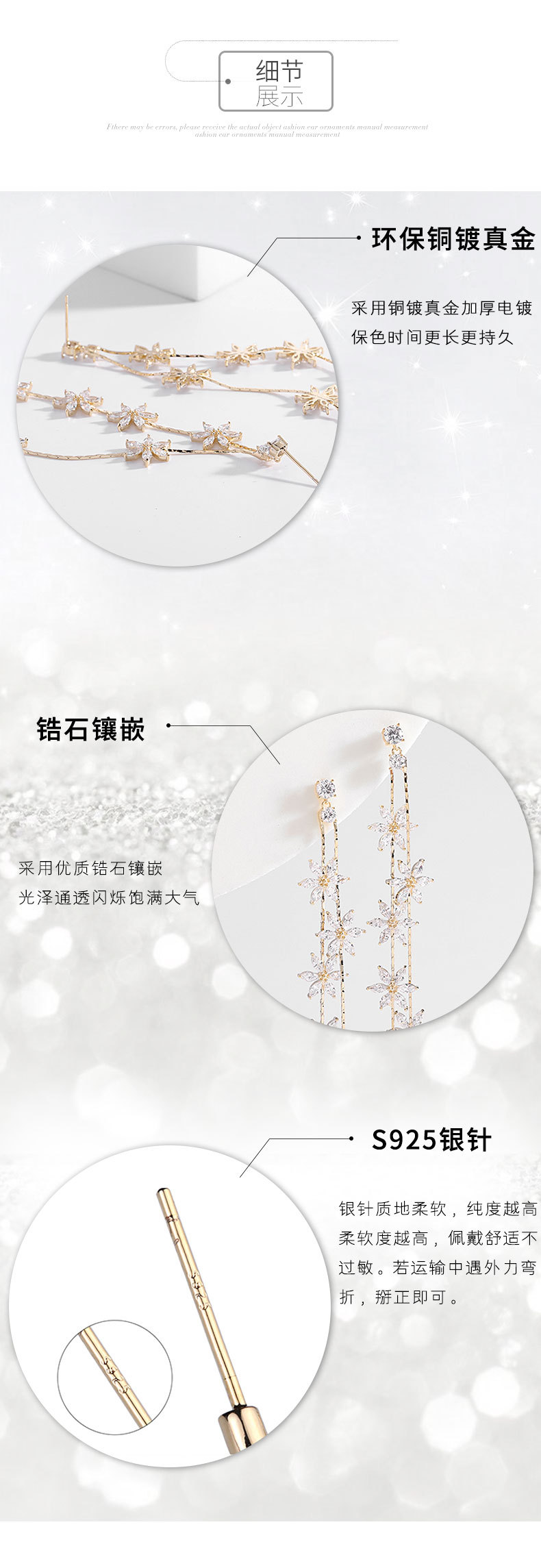 镀真金气质百搭,修饰脸型耳饰锆石花朵流苏耳环LY-E-080