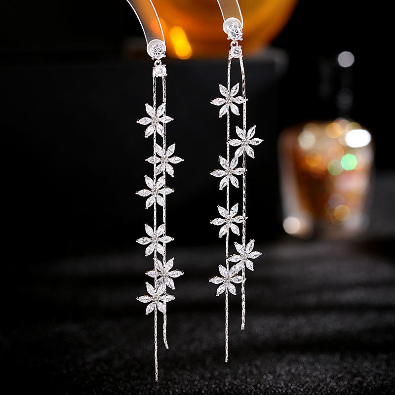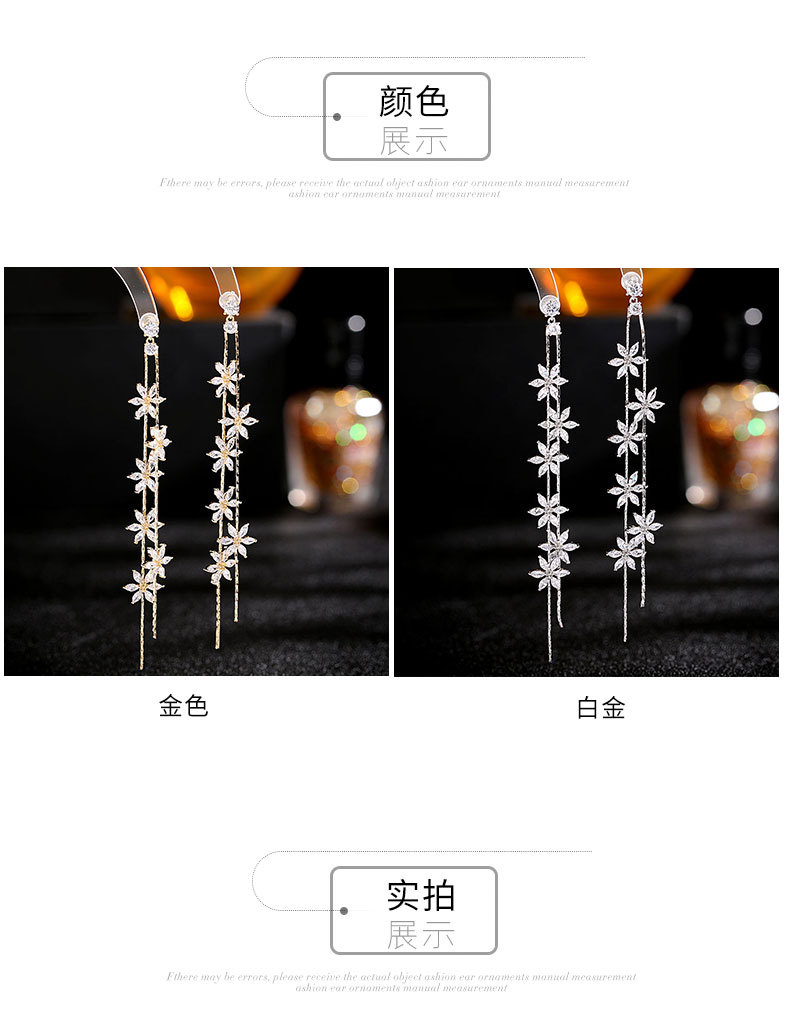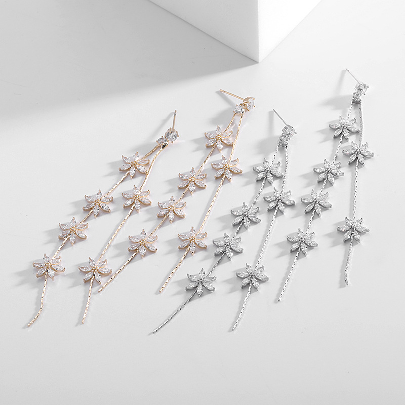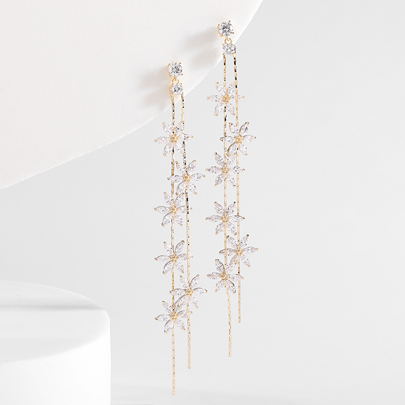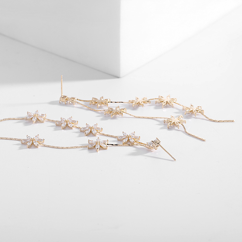 镀真金气质百搭,修饰脸型耳饰锆石花朵流苏耳环LY-E-080