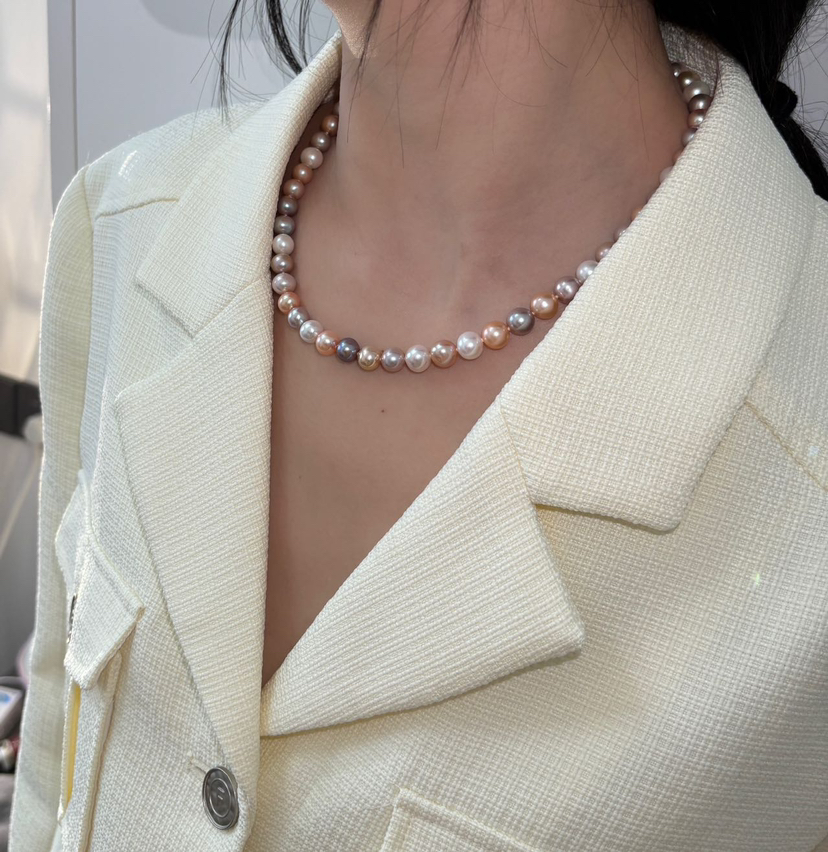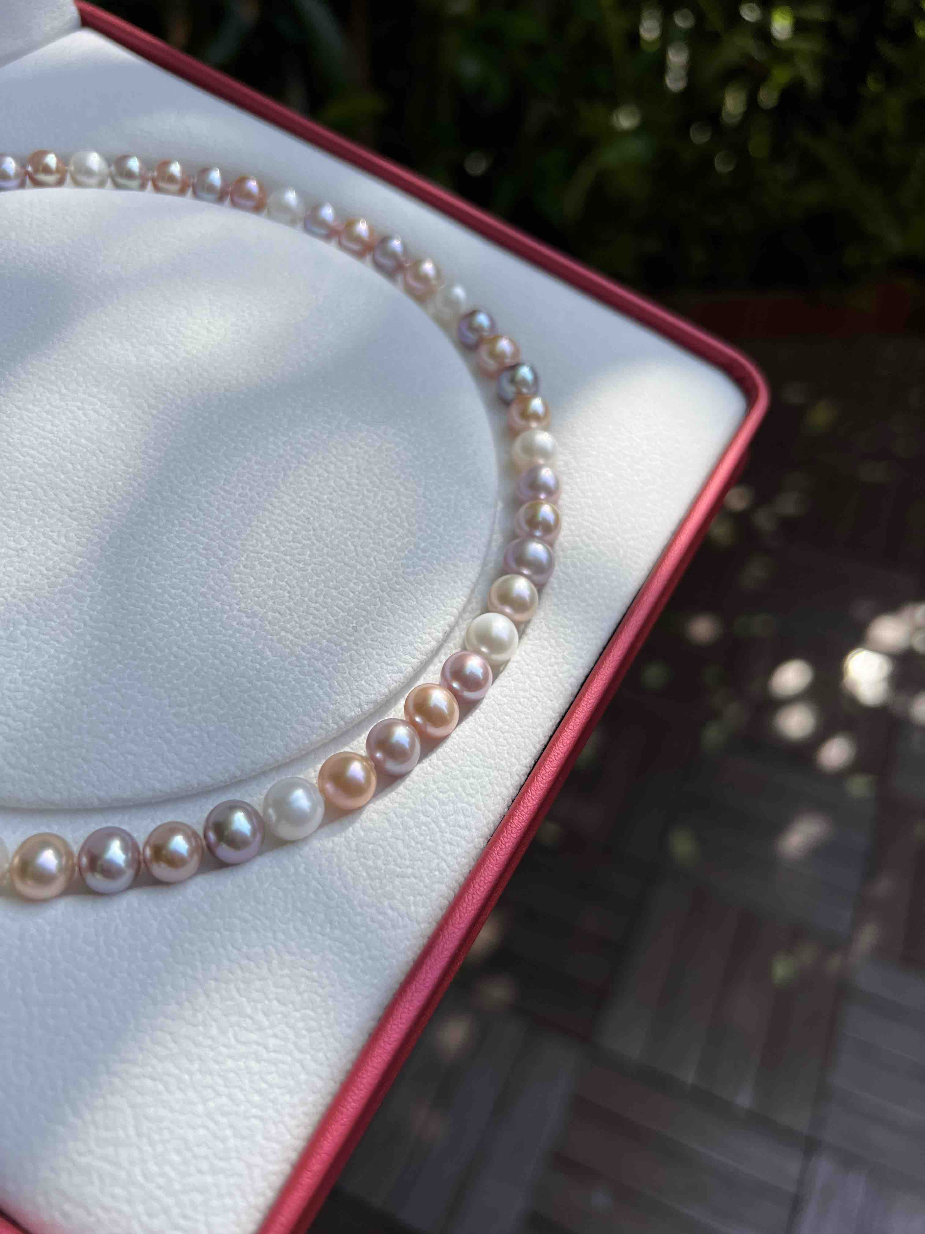珍珠没有天花板,你想怎么选就怎么选,但是我想说,8-9mm黄金点位,5A三色 无核淡水珍珠,追求品质好性价比max就这档没别的了