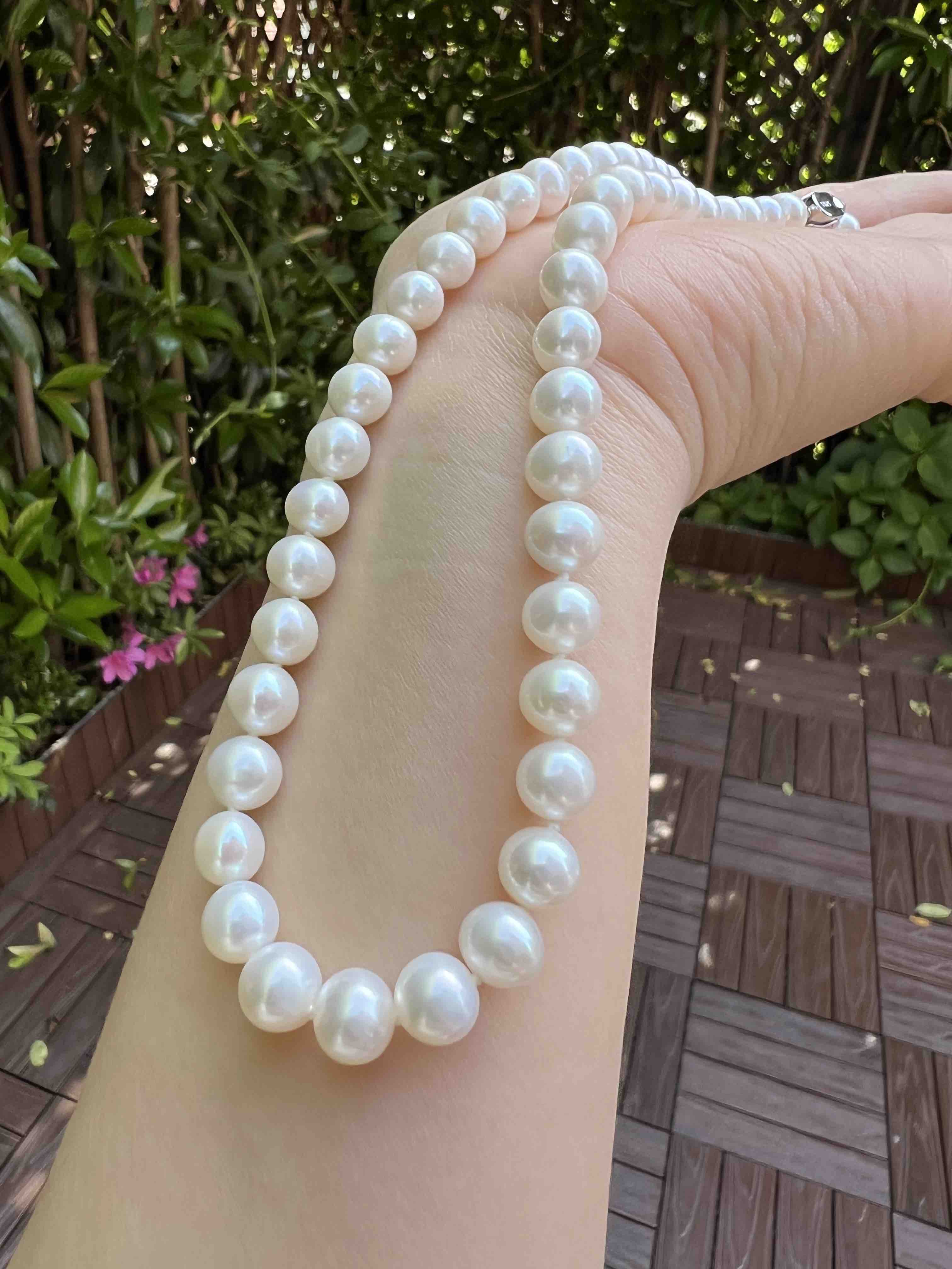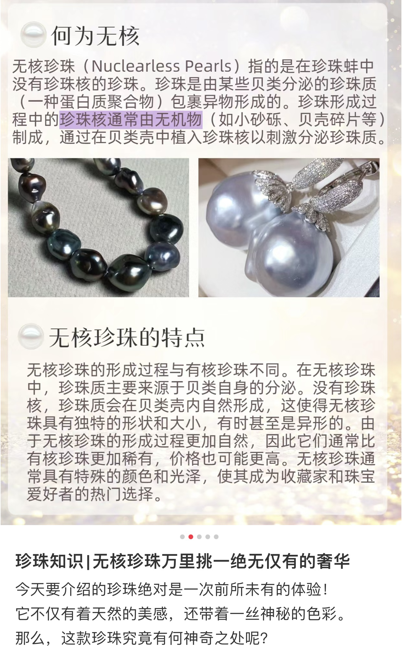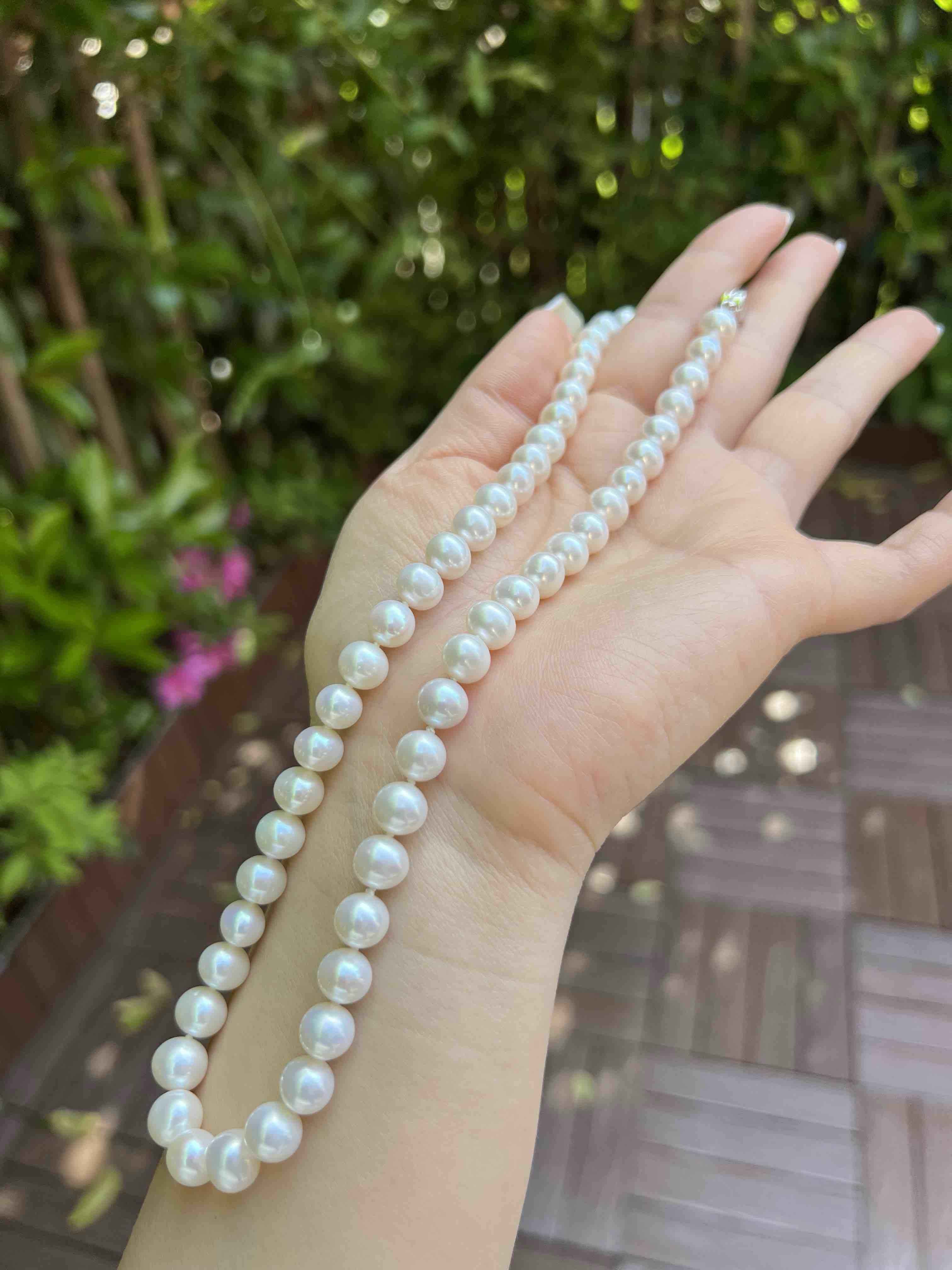 对标一下,淡水无核高品质珍珠,外头价格不便宜的。相对有核珍珠,声音清脆,整条都是珍珠质,特别温润光滑。属于看老天爷吃饭的意思。