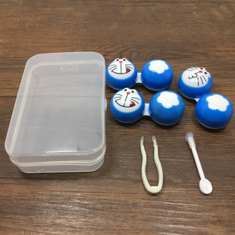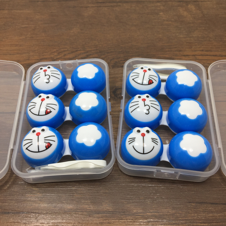 新款隐形眼镜盒卡通美瞳盒护理盒伴侣盒双联盒579叮当三连盒