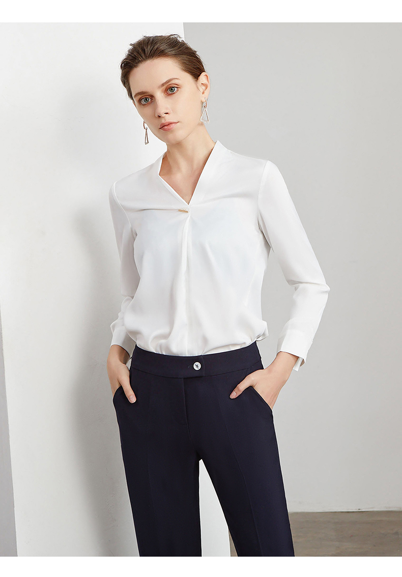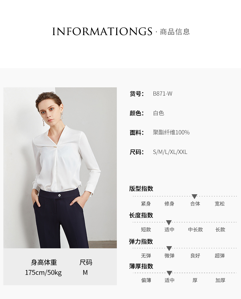 IWY/职业气质衬衫女修身白色打底装百搭英伦风售楼部工作服Ol正装B871-W